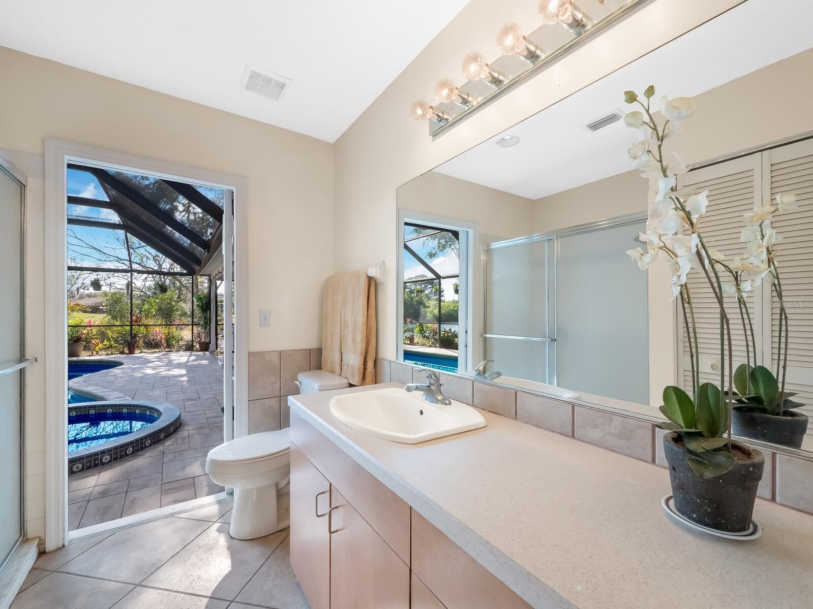 Lakefront 4 bedroom home with split plan for privacy inside and out in the serene community of Hamlets Grove. Open floor plan with views across the private pool to the lake with little visual intrusion of neighboring homes. Master bedroom features luxurious space and an ensuite bath hosting a soaking tub and separate shower. Loads of closet space. The separate guest wing features three bedrooms with access to the second bath, which is also open to the pool. The pool deck offers covered space as well as lounging in the sun areas. The open concept kitchen features a wrap around breakfast bar with easy access to the formal dining room, family room and separate living room. The vaulted ceilings add to the spaciousness. Hamlets Grove is located between University and Fruitville, just off Lockwood Ridge, for easy access to downtown Sarasota and the beaches to the West and the University Town Center and golf to the East. This is where you want to be....in the heart of the Sarasota Community!