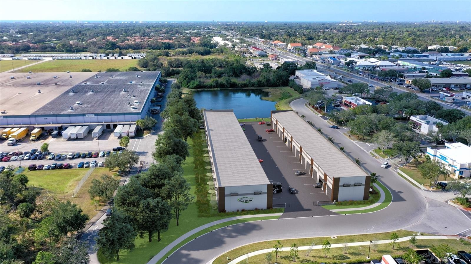 Pre-Construction. To be built. Welcome to Car Bank 2.0, Sarasota’s premier, private garage condominium community in the heart of Palmer Ranch. This exclusive enclave offers 26 individually owned garage condos, perfect for *CAR COLLECTORS, 45' RV OWNERS, HOBBYISTS, ARTIST STUDIO, WINE STORAGE, WORKSPACE* seeking secure, high-end storage with exceptional convenience and customization. Each unit features solid concrete tilt-wall construction, designed to withstand 150 mph hurricane-force winds, with two sizes, units 1-13 are approx. 1,008 sq. ft. (42’D x 24’W) and 21.5' interior ceilings—ideal for mezzanines or car lifts. Units 14-26 are approximately 1,375 sq. ft. (55'D x 24'W) and ideal for larger collections and/or 45' motorcoaches. ***UNIT 11 is 24'W X 42'D. *** Interiors are fully insulated and climate controlled with a quiet, efficient HVAC split system, 14' x 14' insulated motorized overhead door, and separate walk-in door. Additional features include a half bathroom, utility sink, fire sprinkler system, LED lighting package, high-speed internet wiring, multiple GFCI outlets, RV hookups (including optional 50-amp service), and high-quality concrete floors ready for customization. The gated community provides 24-hour computerized access, monitored surveillance cameras, and 60'-wide driveway for easy maneuvering and privacy. The owner's clubhouse will be a space where neighbors can gather to share their passion, host private celebrations and car shows or watch parties. The space will include a bar and serving area, indoor and outdoor seating, television, and patio overlooking the serene pond. At 28' above sea level and located just minutes from I-75, Sarasota’s dealership row, the Legacy Trail, and 3.8 miles from Siesta Key, this is the ultimate combination of location, security, and functionality. Optional upgrades include individual backup generators, mezzanines, hydraulic lifts, cabinetry, epoxy or polished concrete floors, specialty lighting, sound systems, and additional security packages. With low monthly HOA fees, top-tier construction, and a prime Sarasota location, Car Bank 2.0 offers more than storage — it’s a lifestyle. Model available for viewing at Car Bank SRQ!