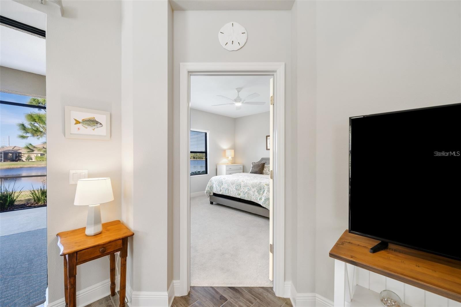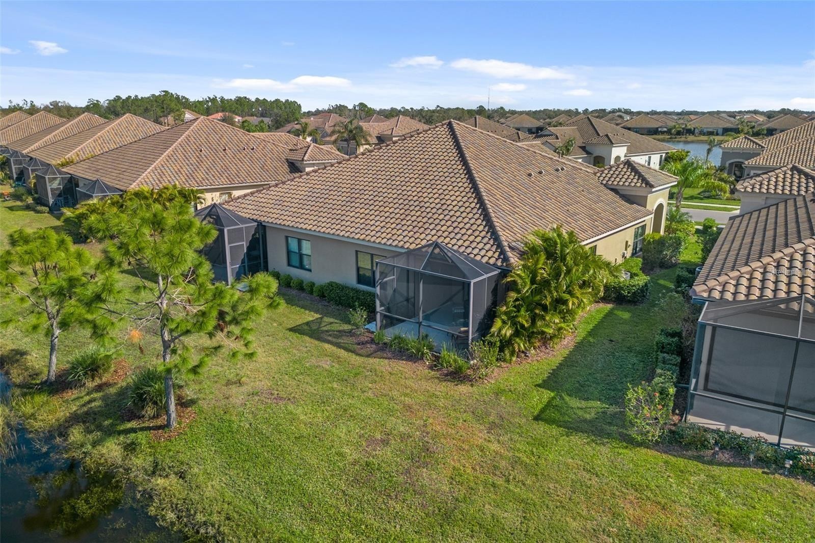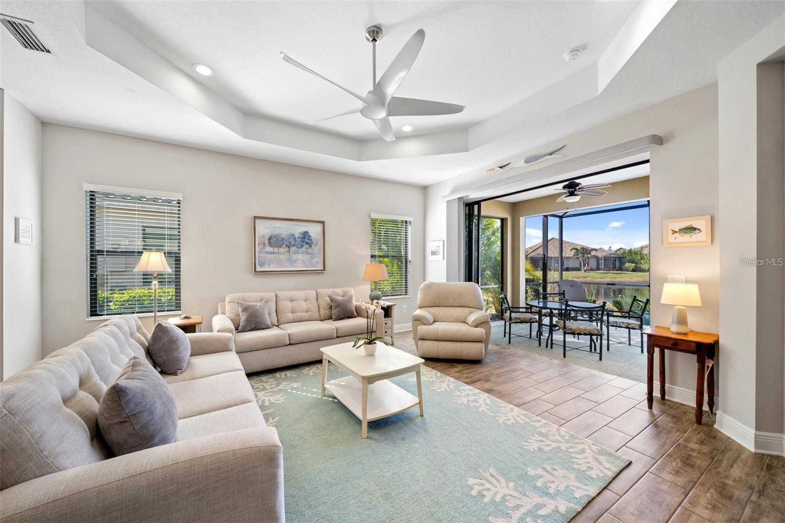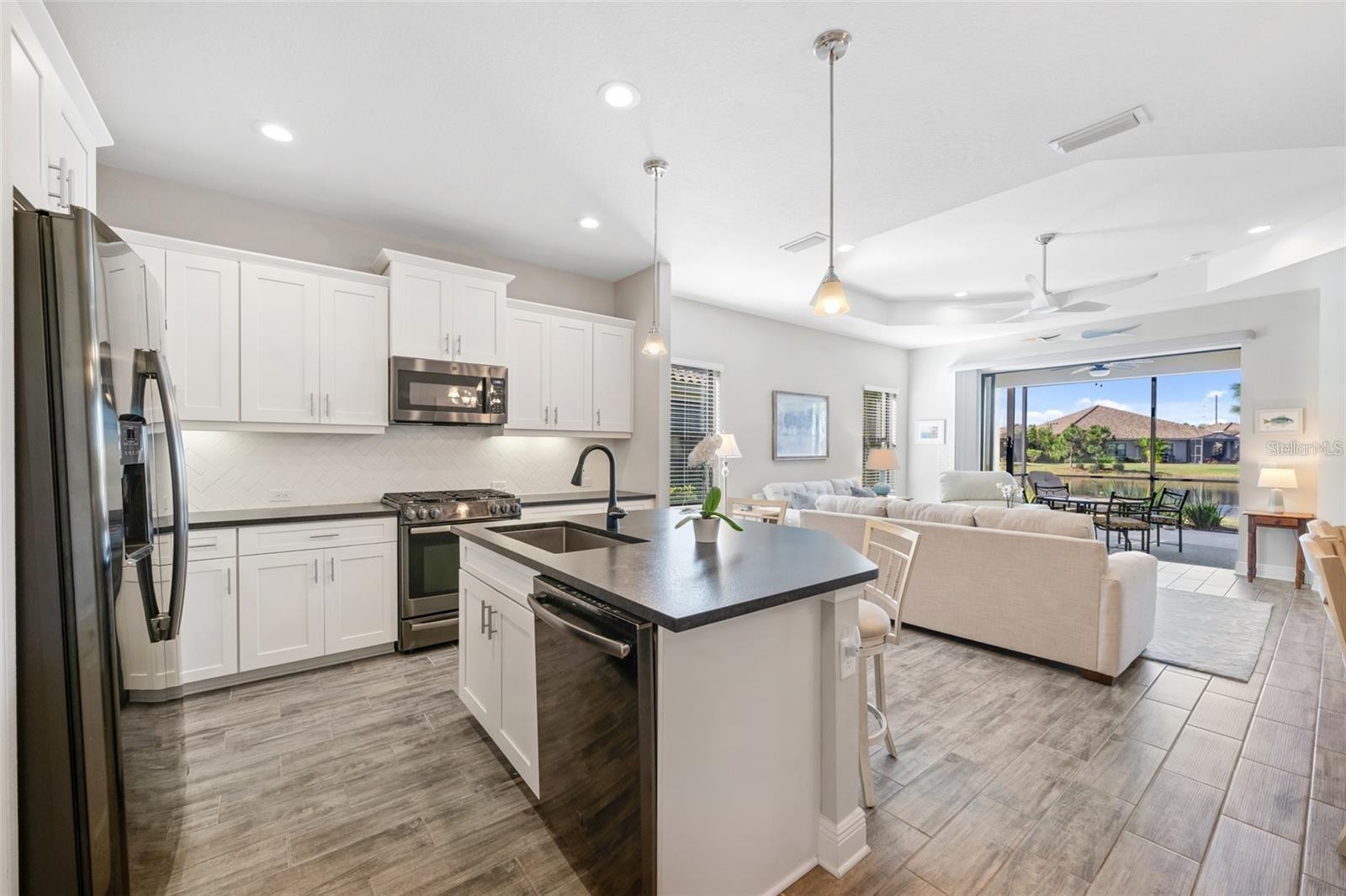 Waterfront two-bedroom villa with den available for rent in Grand Palm from April 1, 2025, through December 31, 2025, with a minimum lease period of six months within those dates. This home offers an open great room with a spacious kitchen, dining, and living area, ideal for entertaining. The kitchen features a counter-height breakfast bar, solid wood cabinetry, granite countertops, stainless steel appliances, and a gas stove. The primary suite includes a large walk-in closet and an en-suite bathroom with dual vanities and a Roman shower. Additional rooms provide space for guests or a home office. The extended lanai, with western exposure, offers a beautiful water view and sunset views and is stubbed for natural gas. Located steps from the private neighborhood pool and on a quiet cul-de-sac street, this villa provides easy access to Grand Palm's resort-style amenities, including 28 miles of trails, tennis, bocce, eight pickleball courts, and a vibrant social club. Lawn care, HOA amenities fees, and streaming TV services (YouTube TV, Hulu, and more) are included in the rent. Tenant is responsible for internet, gas, electric, and water utilities.