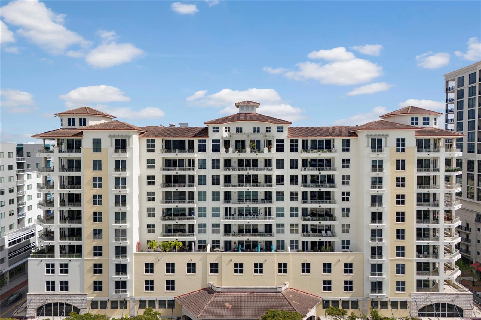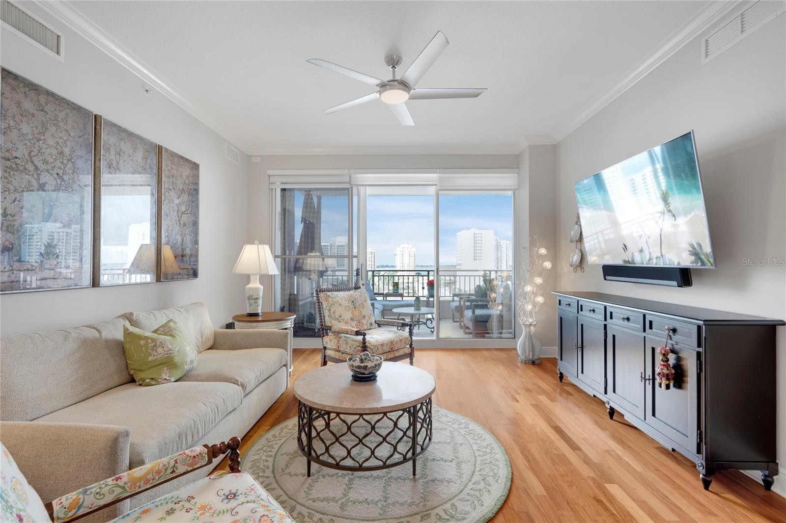 Perched on the 9th floor of One Hundred Central in the heart of downtown Sarasota, this exquisite residence offers a harmonious blend of sophistication and serenity. Bathed in natural light, the home showcases breathtaking water views and a stunning skyline that transforms with the rhythm of the day. A beautifully reimagined kitchen serves as the heart of the home, featuring an extended Quartzie countertop, a refined backsplash, enhanced under-cabinet lighting, and premium appliances, including a Fisher & Paykel double-drawer dishwasher, a sleek black induction range, and a Jenn-Air combination microwave. The spacious primary suite is a private retreat, adorned with a custom-designed closet and elegantly appointed electric blinds for effortless comfort. Every detail has been thoughtfully curated, from the fresh, contemporary palette to the seamless indoor-outdoor flow onto a private balcony that invites moments of quiet reflection amid tranquil water vistas. The office offers a Murphy Bed with closets. Residents of One Hundred Central enjoy an unparalleled lifestyle with resort-style amenities, including a heated pool with sweeping views, a state-of-the-art fitness center, a private theatre, a resident lounge, and an inviting community room. With secured entry, 24-hour concierge service, and two gated parking spaces, luxury and convenience are effortlessly intertwined. Steps from Sarasota’s finest shopping, dining, and cultural landmarks such as the Sarasota Opera House, The Rosemary District, and Florida Studio Theatre, this residence is a sanctuary of refinement in the heart of the city.