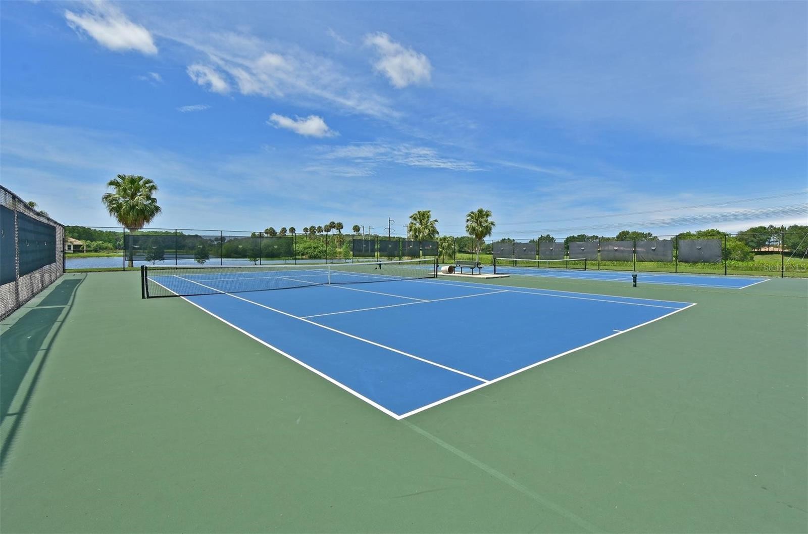 Enjoy breathtaking views the moment you walk through the door with sweeping lake and golf views visible throughout the home. This two-bedroom, two-bath condominium is perfect for full-time living or a seasonal retreat, offering comfort, convenience, and effortless Florida living. This desirable ground-floor location is just steps from your covered parking space, making everyday living easy and accessible. The fully equipped kitchen features Corian countertops, SS appliances, Cabinets with crown moulding, a breakfast bar, 2 closet pantry's, and a charming eat-in nook. A formal dining area flows seamlessly into the great room, creating an open and inviting floor plan ideal for both relaxing and entertaining. Sliding glass doors from the great room lead to a screened, covered lanai where you can unwind and take in the peaceful views. The primary suite offers an oversized layout with a small sitting area by the window, architectural niches, large vanity in the en-suite bath, and a generous walk-in closet. Tile flooring runs throughout the main living areas, and the laundry closet includes a washer and dryer that convey with the unit. 2nd bedroom and 2nd bath complete this desirable split floorplan. Stoneybrook at Heritage Harbour offers an impressive array of included amenities. Enjoy a community pool conveniently across the street, pickleball & tennis courts, fitness center, sand volleyball, basketball, scenic bike paths, dog park, and a Jr. Olympic-size pool and spa at the community Rec center. Residents also enjoy a calendar of social events and activities. Public golf course so no mandatory fees. Many options for the casual golfer or just enjoy the restaurant and grill at the clubhouse. Ideally located near Costco, medical facilities, restaurants, and UTC mall. Stoneybrook is also just a short drive to downtown Sarasota and the gorgeous beaches of Anna Maria Island, Siesta Key, and St. Pete. HOA fees include exterior maintenance, exterior insurance, Roofs, pest control, basic cable, water, sewer, and trash, offering exceptional value and making this an excellent low-maintenance, lock-and-leave home for seasonal residents or an easy full-time lifestyle for year-round buyers.