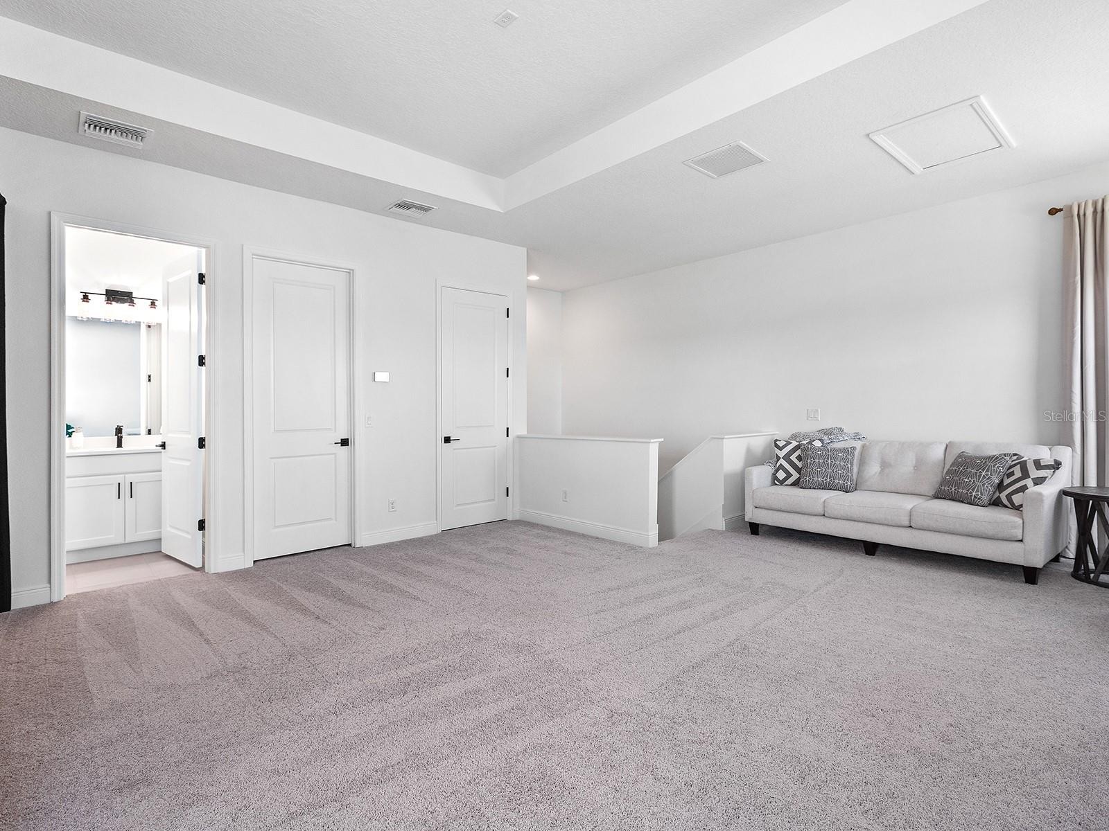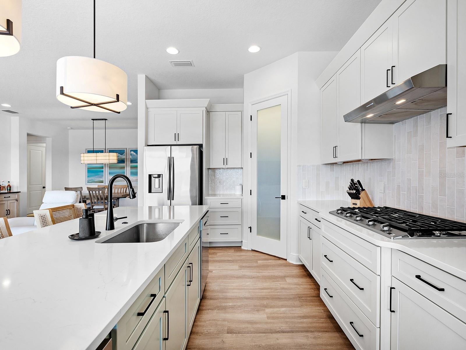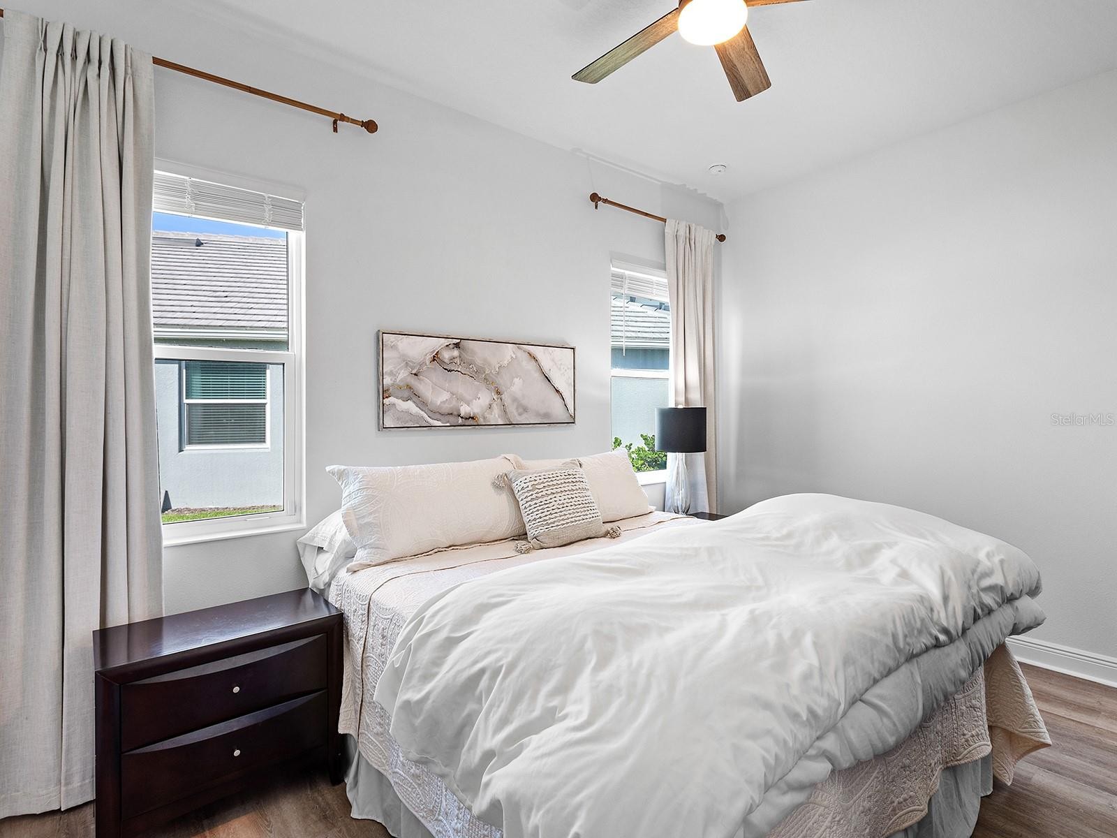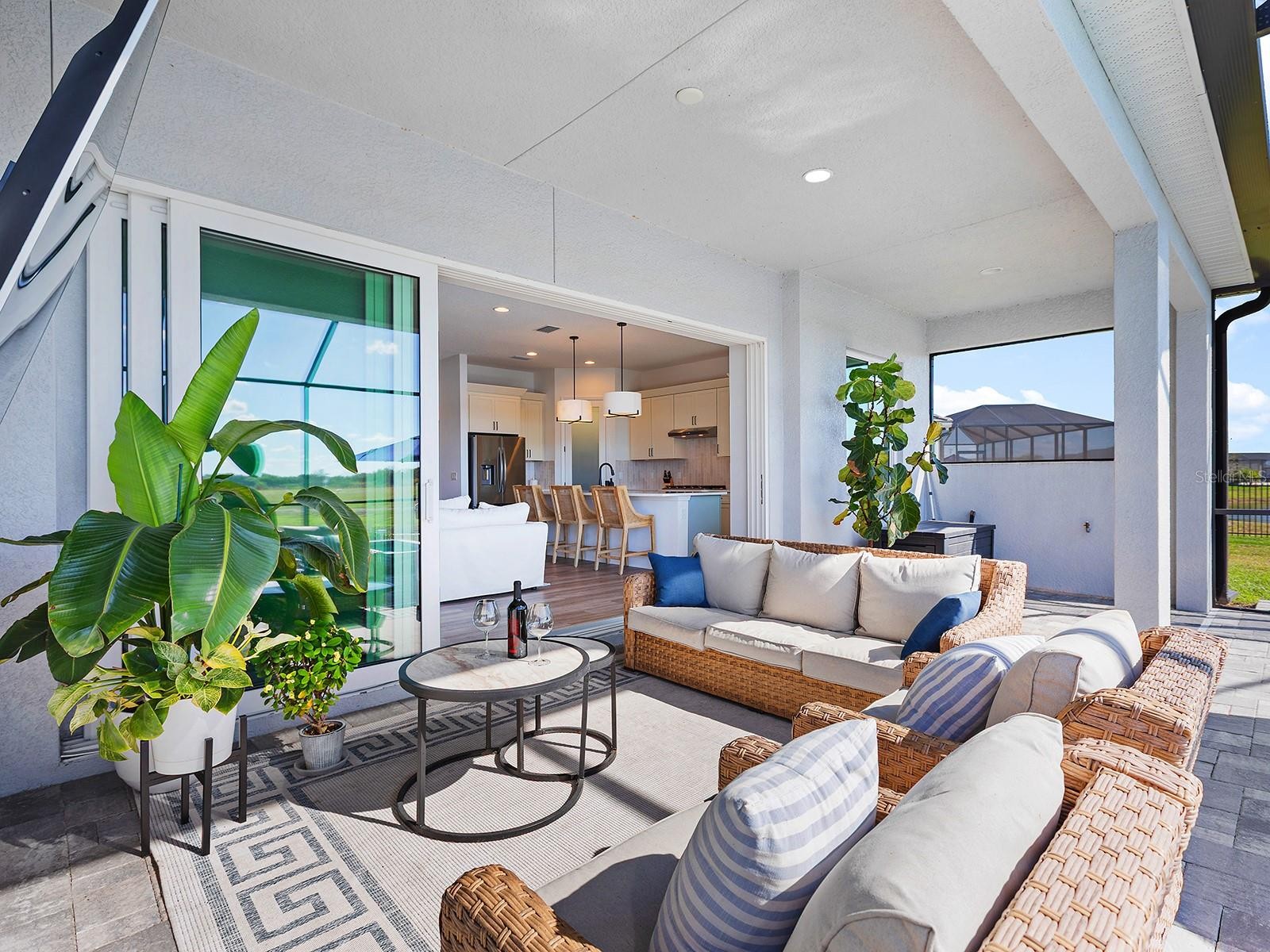 Welcome to Watercolor Place, a recently developed gated community in Bradenton, Florida, known for its low HOA fees and NO CDD fees. Positioned on a premium cul-de-sac and lakefront lot, this two-story residence built in 2024 offers a total of 3,041 square feet of interior living space, thoughtfully designed for comfort, function, and elegance. With four bedrooms and four full baths, the layout includes a versatile upstairs bonus room featuring its own full bath, walk-in closet, and independent HVAC unit, making it an ideal space for a media lounge, game room, or guest suite. Upon entering, you are greeted by an open-concept design highlighted by 10-foot ceilings, eight-foot doors, and large windows that welcome an abundance of natural light. The chef’s kitchen serves as the heart of the home, appointed with a 10-foot island, double ovens, an oversized cooktop, pantry, and a custom pass-through window to the lanai. The adjacent great room and dining area flow seamlessly, creating a central hub for daily living and entertaining. The main-level primary suite is a thoughtfully designed retreat, featuring a spa-inspired bath with dual rain head showers and handheld fixtures. A spacious walk-in closet is enhanced by added rows of built-in hanging shelves for optimized storage. Three additional bedrooms are conveniently located on the main floor, offering flexibility for families or guests. Upstairs, the expansive bonus room offers limitless possibilities, complete with a full bath, large closet, and separate HVAC system. It can function as a bonus room, fifth bedroom, studio, office, or secondary living space. Throughout the residence, upgraded features include custom flooring, pocket doors, tray ceilings, and insulated interior walls for added comfort and efficiency. Outdoor living is elevated by the extended lanai, which features a smartphone-controlled heated saltwater pool and spa, sundeck, and covered lounge space—all overlooking tranquil lake views and beautiful sunset views. A fenced-in side yard adds functional outdoor space, ideal for pets or play. Additional exterior appointments include impact-rated windows and doors, a three-car garage with outside keypad, a paver driveway and walkway, exterior coach lighting, tankless gas water heater, rain gutters, and a fully integrated irrigation system. Window treatments are installed throughout, enhancing privacy and light control. Watercolor Place residents enjoy maintenance-free living with HOA services that include lawn care, landscaping, and Wi-Fi and cable. The newly completed amenity center offers a resort-style zero-entry pool, state-of-the-art fitness center, social gathering spaces, and a built-in grill station. Ideally situated just minutes from the new Target and Costco shopping plaza, Publix, dining options, and minutes away to the vibrant offerings of downtown Lakewood Ranch, this home represents the ideal balance of privacy, luxury, and accessibility. Come see what this home has to offer!!