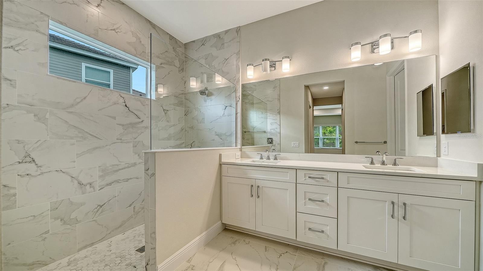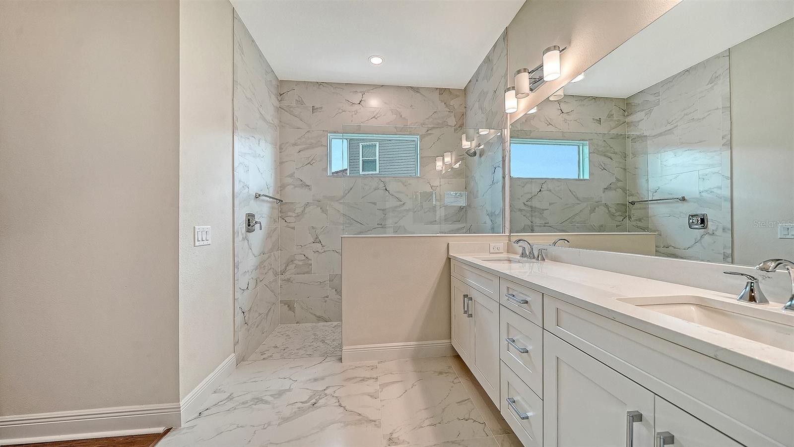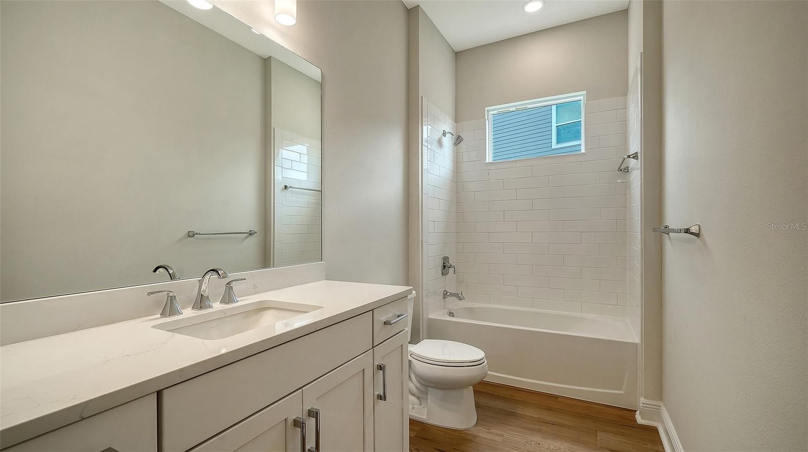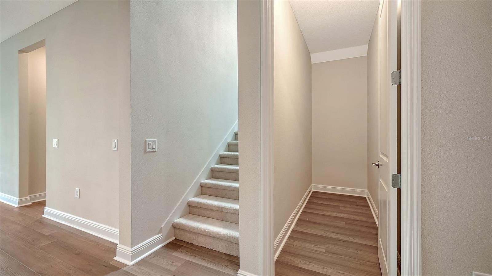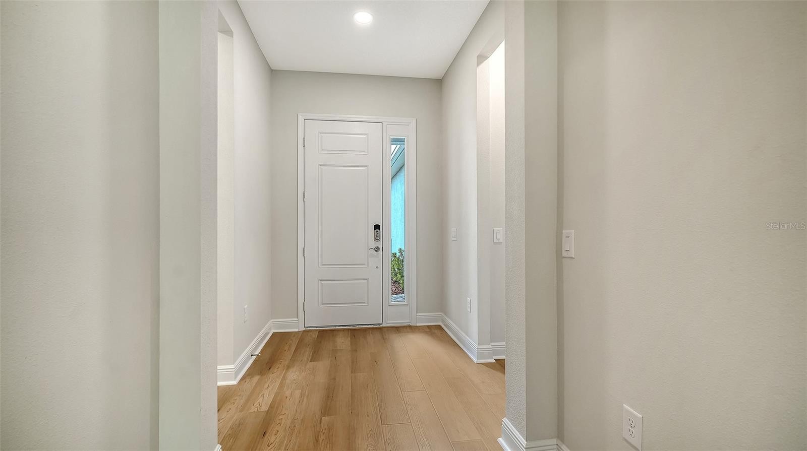 This spacious 5-bedroom, 4-bathroom home offers a northern-exposure backyard overlooking a lush preserve for added privacy. The interior features warm luxury vinyl flooring, gold hardware, and an open-concept kitchen with bright white cabinets, complementary veining in the quartz countertops, and an elegant modern design. With 10-foot ceilings, recessed lighting, and an oversized stair landing window, the home is filled with natural light. Additional upgrades include 8-foot doors, impact-resistant windows, ceiling-height kitchen cabinetry, pre-plumbing for an outdoor kitchen, and extra electrical provisions for a future pool.