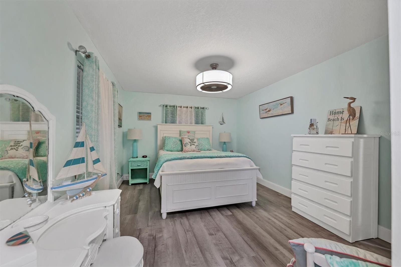 Welcome to Tidevue Estates, a land-owned 55+ community offering the perfect Florida lifestyle! Rarely available one car garage home that is turn-key furnished and move in ready. This light and bright home features an inviting open floor plan designed for easy living and entertaining. The spacious living area flows seamlessly into the kitchen and dining space, creating a comfortable gathering spot for family and friends. The Florida room has French doors that opens to the living room and could be an extra space for guests when they come to visit. Enjoy a generously sized primary bedroom with ample closet space and a well-appointed bath. The guest bedroom provides flexibility for visitors, a home office, or hobby space. New metal roof in 2024. Many improvements were made in 2020 which include updated plumbing, hot water heater, sheet rock walls and ceilings, epoxy driveway, completly updated second bathroom and subfloring with laminate flooring throughout entire home.Outdoor living is a true highlight, with plenty of room to relax, entertain, or simply enjoy Florida’s beautiful weather. Whether you're looking for a seasonal retreat or full-time residence, this home offers comfort, convenience, and value in a friendly, active community. Tidevue Estates offers community amenities and is conveniently located near shopping, dining, and Gulf beaches. Don’t miss this opportunity to own your piece of paradise! Low HOA of only $600 annually. Pets are not permitted. Plenty of activities to keep you busy in this community. Take a water aerobics class in the solar-heated community pool or work on your tan. The community library has free WI-FI connection. Updated fitness center. Meet friends and make new ones for a game of indoor pickleball, bocce ball, or shuffleboard. Join the Golf League. Take a bike or golf cart ride to Veteran's Park to watch the wildlife and sunset. Ellenton Premium Outlet Mall, restaurants, and medical facilities are just minutes away. Easy access to I-75. Come visit this property today!