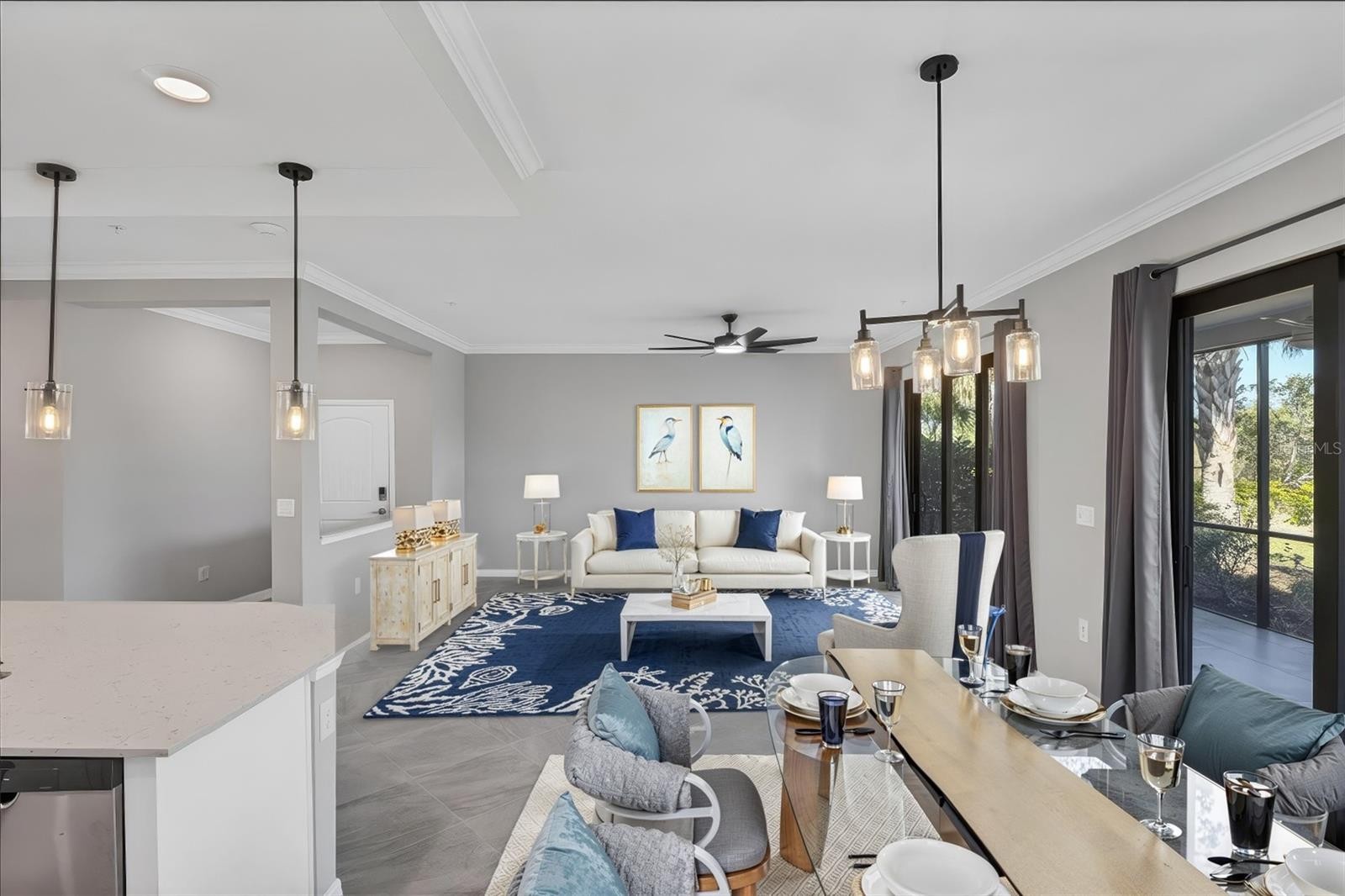 RARELY AVAILABLE!! 1ST FLOOR END UNIT! NO GOLF MEMBERSHIP REQUIRED and NO GOLF ASSESSMENTS. Don't miss out on this absolutely gorgeous MAINTENANCE FREE condo offering 3BD/2BA/1CG. In addition to the garage this end unit has space for 4-5 additional cars on the pavered driveway. Open floor plan with PORCELAIN tile flooring throughout. NO CARPET. High end kitchen choices of QUARTZ counters, STAINLESS STEEL appliances, extra recessed lighting, PENDANT LIGHTS, SUBWAY TILE BACKSPLASH, extra outlets, tons of cabinet space, and upgraded pantry shelves done after purchase. Popular neutral grey and white color scheme through out. Spacious lanai updated with tile floor. PRIVATE preserve views great for watching the Florida wildlife without the gators. Large master bedroom with en suite bath with dual sinks, QUARTZ counter tops, WALK IN SHOWER, and CUSTOM CLOSET DESIGN. Guest bedrooms and bath at other end of condo for privacy with same high end finishes. One Guest bedroom with windows overlooking lake view and no condos in front. Perfect for an office if you need one. HURRICANE WINDOWS for peace of mind. Generous laundry room with extra storage cabinets. Condo is very close to side entrance for ease of comings and goings, especially when wanting to go left because of light. Sarasota National is a Vibrant community with over 1300 acres designated for preservation, conservation, lakes, and open space with amazing views, Proclaimed as an Audubon International Certified Sanctuary, making it the most gorgeous and enjoyable golf course to play at in the area. Offering resort style amenities with huge resort style pool and spa,Tiki Bar to serve refreshing drinks and a bite of lunch, tennis courts, pickle ball, Bocce courts, coffee lounge/library/card room/meeting place, 7000 sq ft fitness facilities offering classes and day spa, and a 30,000 sq ft Clubhouse with dining and spectacular views. 18 Hole championship golf course surrounded by native wetlands and preserves provides an exhilarating and dramatic back drop for your golfing adventure or just your drive through the community. TONS OF ACTIVITIES FOR NON GOLFERS. Minutes away from the new Wellen Park shopping area and Atlanta Braves stadium. Venice Beach and Venice Downtown are just a short drive. Your choice of restaurants and outdoor activities await. Come find YOUR Florida lifestyle TODAY and Live everyday like your on vacation!