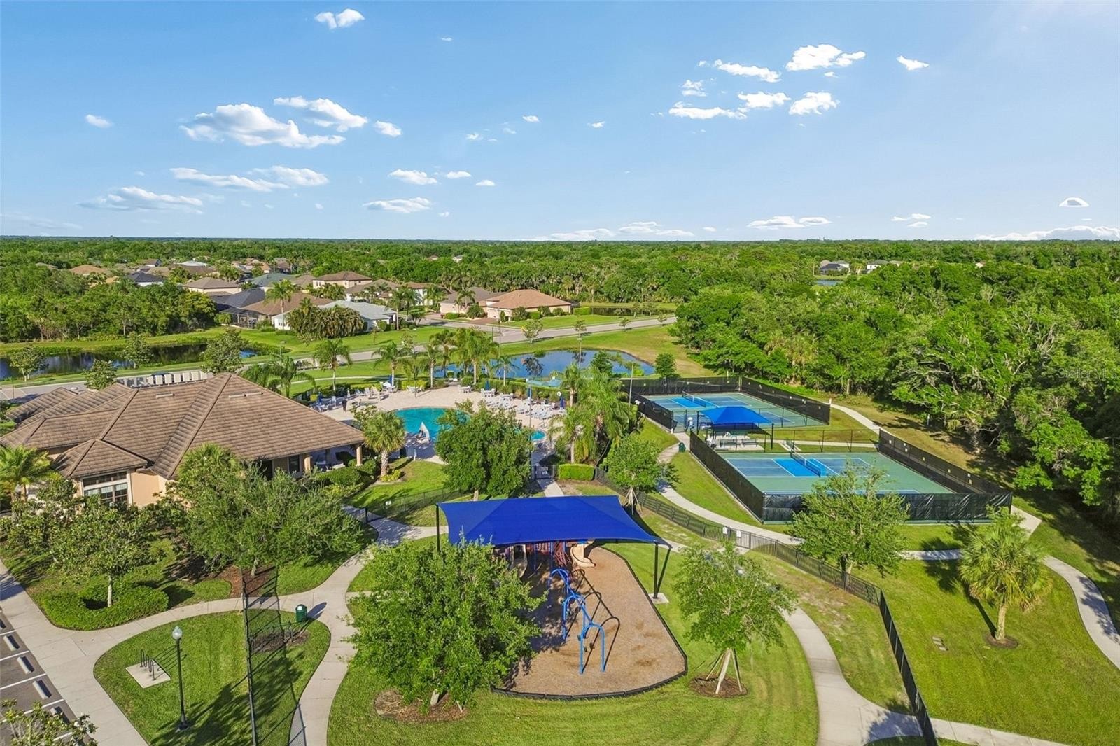 Welcome to this Sam Rodgers charming West Indies style exterior, Captiva floor plan designed for both entertaining and retreat. A beautifully stylish home, 3 Bedrooms, Den/office, 2.5 Bathrooms, and a 3-car garage, offering effortless and seamless connectivity to the screen enclosed outdoor living space with sparkling heated pool and summer kitchen for entertainment and relaxation. Inside, a light filled gallery opens to an interior defined by soaring ceilings, while warm finishes and a fireplace create an inviting atmosphere throughout. A well-appointed chef’s kitchen with central island, quartz counters, SS appliances, gas cooktop w/hood vent, built-in convection oven & microwave, walk-in pantry, glass tile backsplash, loads of dovetail wood cabinetry, and cafe area. The luxurious primary suite with spa-inspired bath delivers a true private, comfortable retreat with dual vanities, walk-in shower, and large custom walk-in closet you don’t want to walk out of. Just off the gallery, 2 sizable guest bedrooms share a full bath; while on the opposite side of home there’s a 1/2 bath just off the great room, a den/office and full size laundry room. Notable features include ALL hurricane impact windows and sliders, 50 amp charging outlet for electric vehicles, neutral color palette throughout, tile in main living areas, carpeted bedrooms, custom wallpaper, custom wall tile, tray ceilings, crown molding, beautiful lighting and fan fixtures. Located in Greyhawk Landing West, a community filled with amenities … tennis courts, pickleball courts, biking/walking trails, lighted basketball courts, soccer field, baseball field, fishing pier, clubhouse, 2 community pools, fitness center, and low HOA fees! Convenient access to I-75, Lakewood Ranch, The Market Place at Heritage Harbor, dining, shopping and Gulf beaches.
