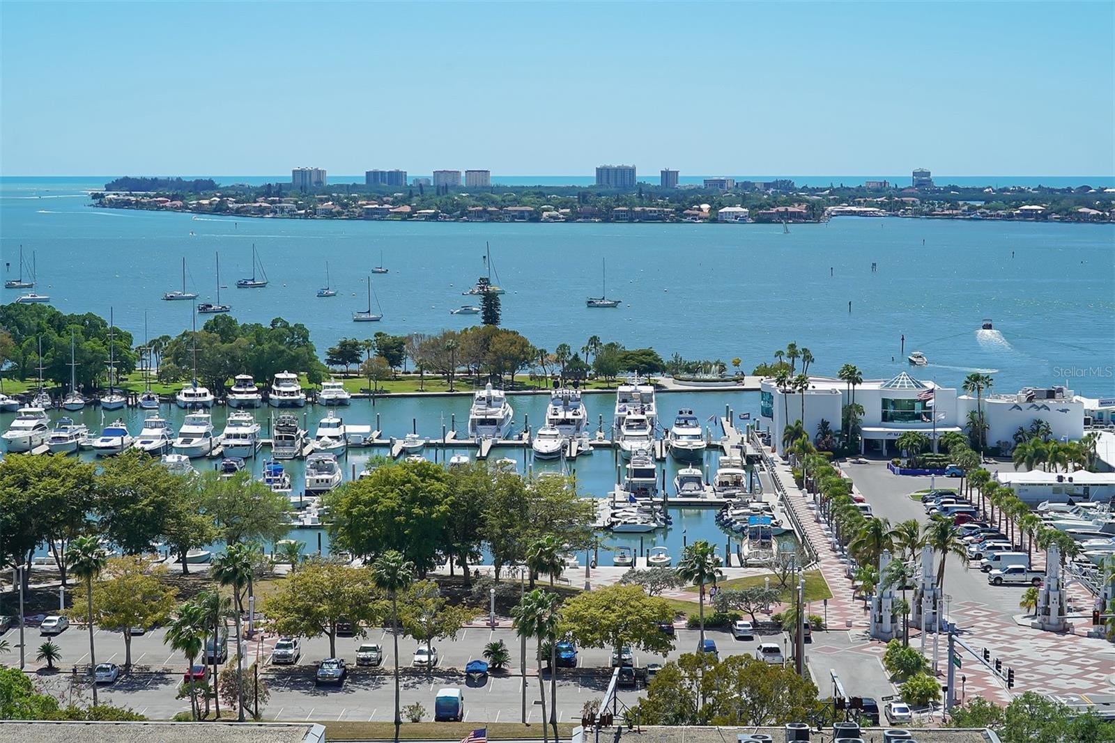 THE BEST CONDOMINIUM VALUE IN THE HEART OF DOWNTOWN SARASOTA, THIS FULL BAY AND SUNSET VIEW UNIT IS PRICED TO SELL! Soak in the sweeping views of the Sarasota Bayfront from this beautifully situated 5th floor, 1-bedroom, 2-full bath residence at The 101 Condominium featuring a great floor plan and spacious bayfront terrace perfect for savoring balmy breezes, breathtaking sunsets, and the lively cityscape. Just a stones throw away from Marina Jack, residents enjoy immediate access to deep-water docking, waterfront dining, and the ultimate boating lifestyle. This light-filled unit has just been completely repainted and is ready for to you enjoy the eat-in kitchen with pass-through to the dining area, a gracious living room, a restful primary suite with ensuite bath and walk-in closet, and a convenient 2nd bath. Enjoy peaceful water views from nearly every room, easy-care ceramic tile flooring throughout, and a brand-new A/C unit for year-round comfort. The 101 Condominium is a premier downtown residence that recently completed an impressive $8 million modernization, including hurricane-rated sliding doors and windows in all units, a newly designed lobby, and extensive structural upgrades. Residents enjoy a rich array of resort-style amenities: heated swimming pool with grill area, state-of-the-art gym and yoga room, library and movie theater, social room, and attentive concierge and on-site maintenance staff. Directly out the back entrance of the property is historic Palm Avenue, lined with art galleries, charming boutiques, and inviting restaurants. And a block away is Main Street for even more dining and nightlife options. Ideally located just minutes from the world-renowned beaches of Lido Key, Longboat Key, and Siesta Key, this residence offers effortless access to Sarasota's most celebrated coastal destinations. This is downtown Sarasota living at it's best!
