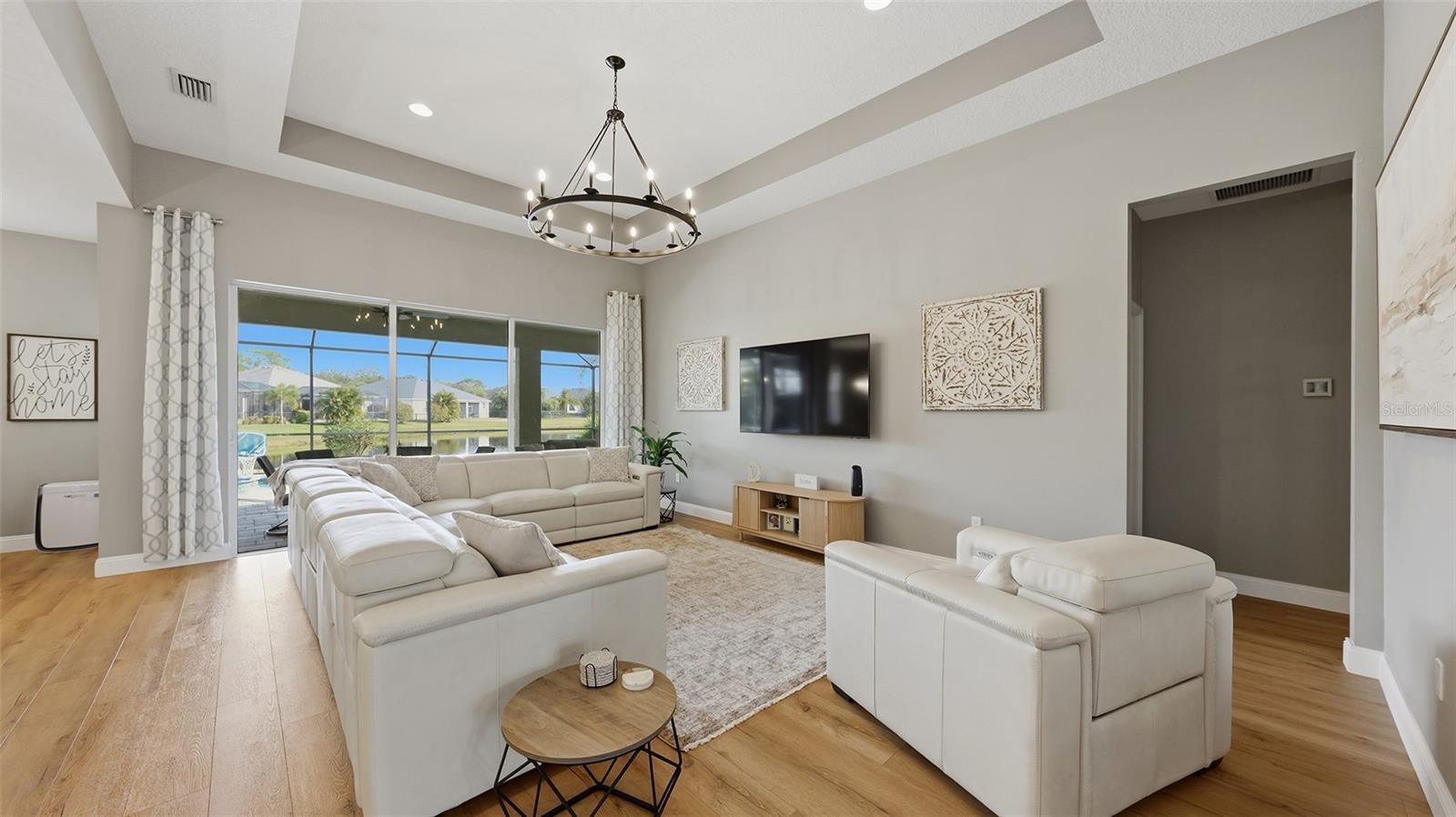 Enjoy the ultimate Florida lifestyle and captivating resort style living. Located in this well sought-after community of Greyhawk Landing with 24- hour gated security. This impeccably kept Allura model, built in 2017 by Homes by Towne, boasts many quality upgrades and offers 3 bedrooms, 2 bathrooms, 1,827 square feet with a 2-car garage on a premium lot with a pond view on a cul-de-sac. Beginning with the lush and mature landscaping, you are led into the impressive entrance which features veneer stone on the front of the home with a paver driveway & walkway. As you enter this pristine and tastefully appointed home, your first view is of the open-floor plan overlooking the gorgeous, covered lanai featuring brick pavers and exceptionally comforting views of the electric heated pool and a spectacular pond view. Features are an open floor plan, high ceilings, gas water heater, low HOA Fees of $70.00/year, prewired for security system, Rough-in for outdoor summer kitchen for gas or electric, newer electric pool heater 2019, new LVP Flooring and baseboards throughout the entire home, tray ceiling in the great room and the foyer, kitchen features upgraded kitchen cabinets with 42” uppers, Moen plumbing fixtures throughout, above and below cabinet lighting with light valance in the kitchen, upgraded 3cm granite counters in the kitchen, tile backsplash and large center island with a walk-in pantry, stainless steel appliances, newer microwave 2023, newer dishwasher 2023, gas range, gas dryer, washer, laundry room is roughed-in for a sink, newer plantation shutters on all windows, upgraded Hurricane Impact main entry door, rain gutters have been placed around entire home, in-wall pest tube system, 16 Seer high efficiency heat pump with variable speed air handler, new landscaping in the back of the home, new shiplap in the entryway of the home as well as the primary bathroom, metal hurricane shutters, pull-down ladder in the garage, upgraded dual lighting for the pool and reclaimed water for the irrigation. The owner’s suite is separated from the guest bedrooms; the primary bathroom has dual sinks and a walk-in shower. The guest bedrooms are all generously sized which share a hall-way bathroom with Verona marble counters. This picturesque community features everything a family is looking for. Spend time at the heated community lagoon style resort pool, spa, fitness center, tennis, pickle ball courts, lighted basketball court, playground, soccer field, baseball field, fishing pier extensive walking and biking trails. There is also a second beautiful community pool and spa with a clubhouse for gatherings, fitness classes and water aerobics to partake in. In addition to these fantastic qualities, this home is also convenient for top rated schools, shopping, dining, medical facilities, two international airports, golf courses, boating facilities, and is located near Lakewood Ranch, Sarasota and Tampa. Take advantage of the gorgeous and pristine Florida beaches, as you have your pick of many! Enjoy additional family fun at major attractions that are approximately an hour to two hours away including Disney World, Sea World, Busch Gardens and Universal Studios! Schedule an appointment now to see what your new home and lifestyle can be! Please also view the attached flyers indicating all the home’s features and finishes.