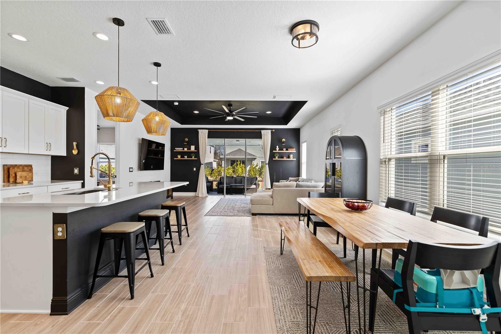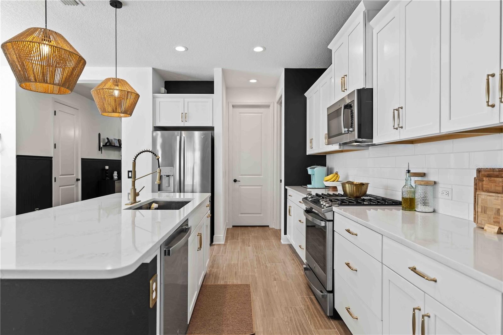 Welcome to 10116 Cross River Trail—an almost-new, 2025-built home that’s still under the builder’s warranty and truly move-in ready. Located in Wildleaf at North River Ranch, this 4-bedroom, 2.5-bath home is filled with thoughtful upgrades and offers the fresh, modern feel today’s buyers are looking for. From the moment you step inside, you’ll notice the light and bright interior, custom accent walls, stylish board-and-batten detailing, and upgraded light fixtures and ceiling fans that deliver a designer look—without the designer price tag. Loved the model home but didn’t have the time or energy to recreate it? Say less—this one is already done for you. The spacious layout features two separate living areas, perfect for movie nights, a playroom, home office, or entertaining without everyone on top of each other. Bonus: no carpet on the first floor. The kitchen is a standout with soft-close cabinetry, ample storage, and gas cooking with gas appliances, all flowing seamlessly into the main living space for everyday living and entertaining. The primary suite is conveniently located on the first floor, offering generous space, a large walk-in closet, and comfortable separation from the secondary bedrooms—making busy mornings a breeze. Step outside to the screened lanai, already pre-plumbed for an outdoor kitchen, ready to elevate your Florida lifestyle with minimal effort. Add the epoxied garage floor, and this home checks both the style and functionality boxes. As part of North River Ranch, residents enjoy access to three amenity centers, including the brand-new Camp Creek. Zoned for Barbara Harvey Elementary School and the future middle school, and featuring an incredibly low HOA of just $108 per year, this home offers exceptional value. If you want “like new” without the wait, this is it.
