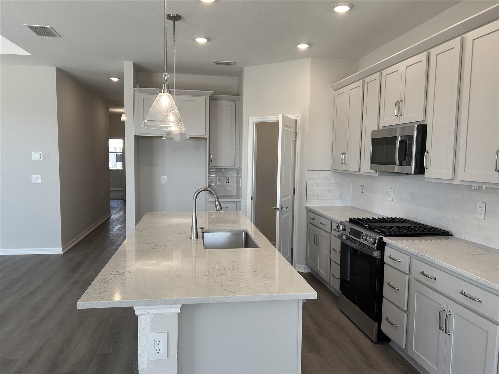 Under Construction. Discover the Monroe home plan—a modern, thoughtfully designed four-bedroom, two bathroom layout that blends comfort and functionality. The open living and dining areas flow effortlessly, while the spacious primary suite features a tray ceiling, walk-in closet, and on-suite bath. A perfect work-from-home setup, and a large, covered lanai with sliding glass doors creates a peaceful outdoor retreat. Home will be ready to close in Feb/March. Featuring our AW Milan Collection, this home is a cozy, light-filled sanctuary with warm floors, polished quartz countertops, and chrome/brush nickel finishes—perfect for lively evenings or quiet, restful weekends.