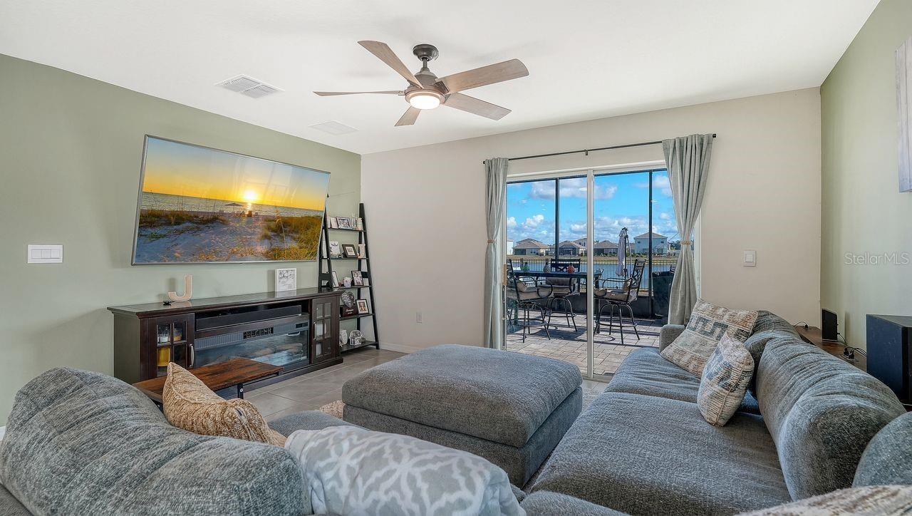 Located in the desirable Bella Lago community, this beautifully updated 5-bedroom, 3-bath home offers the perfect blend of comfort, space, and scenic living. Residents enjoy resort-style amenities including two pools, a fitness center, and a playground, all in a family-friendly setting. Inside, the home features a bright, open floor plan ideal for both everyday living and entertaining. The spacious kitchen boasts granite countertops, a large center island, and generous pantry storage. The flexible layout includes a bonus loft/flex space, perfect for homeschooling, a playroom, home office, or cozy reading nook. The primary suite is a relaxing retreat with a walk-in closet and a private en-suite bath with dual vanities and a walk-in shower. A second-floor laundry room adds everyday convenience for a busy household. Step outside to an extended screened lanai overlooking a peaceful water view with fountain, creating the perfect backdrop for morning coffee or evening relaxation. The fenced backyard offers privacy while preserving the view. This move-in-ready Bella Lago home delivers space, style, and scenic water views right now.