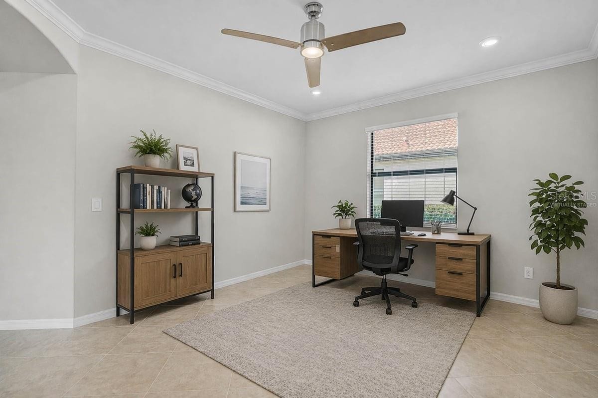 One or more photo(s) has been virtually staged. Best value in Sarasota National don’t miss your opportunity to own a beautifully maintained, TURNKEY pool home in one of Venice’s most desirable resort-style communities. Offering nearly 1,900 square feet of spacious living, this home features an open floor plan, high ceilings, tile flooring throughout the main living areas, and large sliding glass doors that lead to a screened lanai with a private heated pool and peaceful preserve views. The kitchen is the centerpiece of the home, complete with granite countertops, white cabinetry, stainless steel appliances, and a large center island with bar seating perfect for entertaining or everyday living. The open layout flows seamlessly into the dining area and living room, creating a bright, inviting space. Versatile office or flex space just off the kitchen, featuring French Doors for natural light and privacy. The primary suite offers a private retreat with serene preserve views, a large walk-in closet, and an ensuite bath featuring dual vanities, granite countertops, and a walk-in tiled shower. A comfortable guest bedroom and bath provide excellent space for visitors. The current dining room offers incredible flexibility and can easily be transformed to fit your lifestyle. Coming soon professionally designed renderings showcasing a potential office or den conversion, giving buyers a clear vision of added functionality and value. Step outside to enjoy the screened lanai with a private heated pool and covered seating area perfect for relaxing while taking in the peaceful natural setting. Lush tropical landscaping surrounds the home, creating a private oasis. Situated on a corner lot, the property offers additional space and privacy, enhancing the outdoor living experience. Storm protection baffles have also been installed for added hurricane protection and peace of mind. Just minutes away, Wellen Park continues to be one of the fastest-growing and most exciting areas in Southwest Florida, featuring CoolToday Park, along with great restaurants, shops, entertainment, and outdoor events all at your fingertips. Between the resort-style amenities of Sarasota National and the convenience of Wellen Park nearby, this home delivers the ultimate Florida lifestyle.