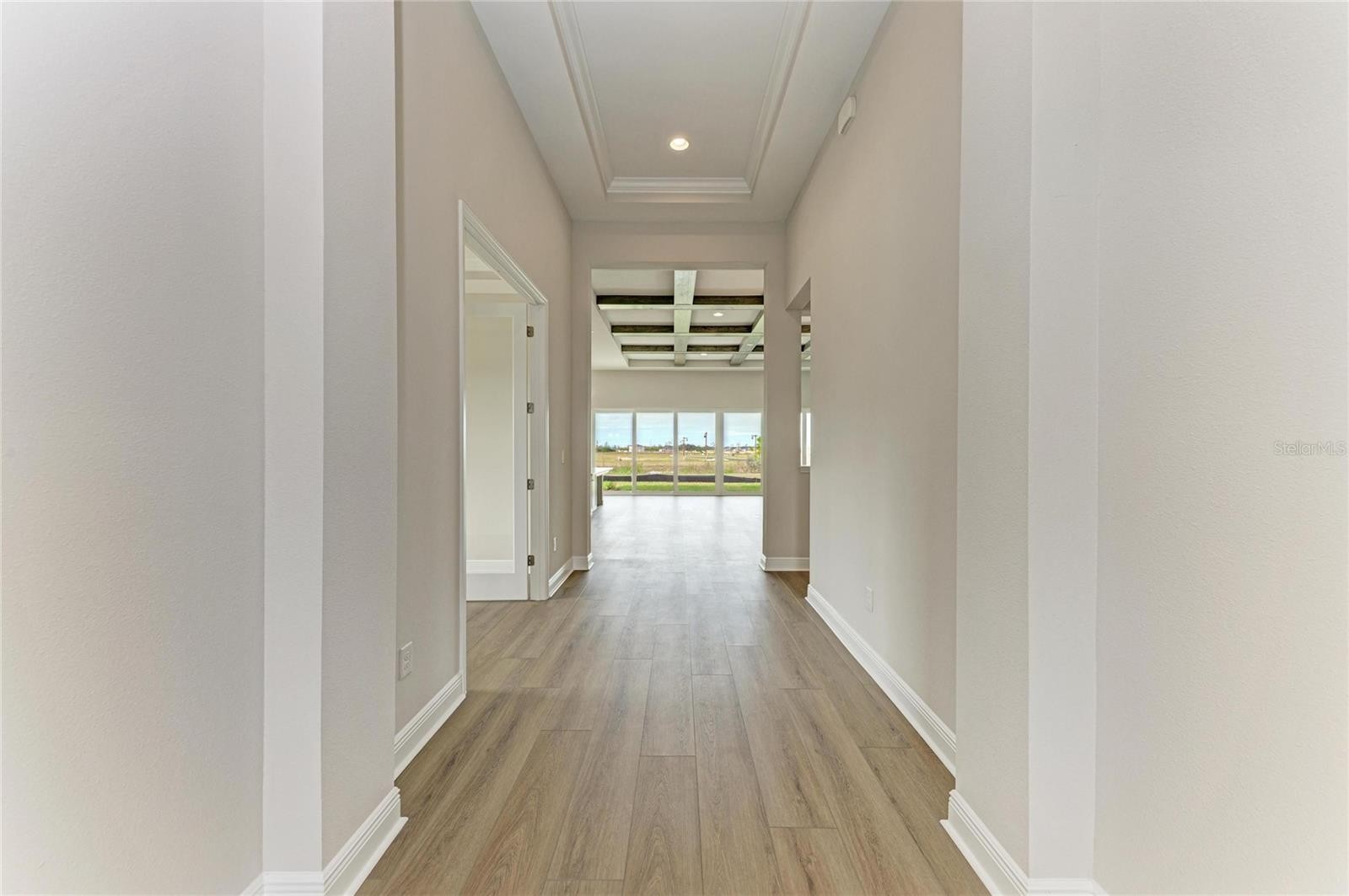 One or more photo(s) has been virtually staged. This Biscayne II is Ready Now! Custom interior selections elevate every room, featuring Wood Finish Maddox Painted Harbor cabinets and Calacatta Laza MSI 3CM Quartz countertops. The home is grounded by Nutmeg LVP flooring, which adds a rich, natural texture to the expansive living areas. With 3,134 square feet of intentional design, this residence offers a flexible floorplan including 4 bedrooms, 4 bathrooms, and a 3 car garage. The open concept architecture allows for a seamless transition between the kitchen and great room, maximizing the sense of space and light. The living experience extends outdoors to an oversized covered lanai where you can relax while overlooking a stunning water view. On the first floor, the private Owner’s Retreat serves as a quiet escape with its own walk in closet and deluxe shower, while a separate den provides the perfect setting for a professional home office. Upstairs, a secondary bedroom and bathroom accompany a large bonus room, offering a versatile area for a theater or hobby space. Don't miss the chance to make this home yours! Listing Price amount for this Pending Sale includes Design and Structural Options.