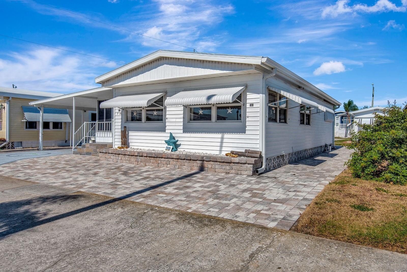 Paradise Bay Estates offers waterfront living without the waterfront price tag, and this furnished 2-bedroom, 2-bath home is truly a gem. Situated on an oversized lot with beautiful pavers and plenty of extra outdoor space to customize, this home captures the breezes and charm of being just one block off the bay. Sunshine, good weather, and the coastal lifestyle are waiting for your pleasure! Step through the bright, welcoming enclosed porch and into a kitchen that flows easily into the dining and spacious living areas, creating an inviting layout perfect for everyday comfort. The primary bedroom features a generous en-suite bath, and the home has been thoughtfully maintained with a newer A/C (2023), a newer membrane roof (2021), and—best of all—a history of no water intrusion or wind damage to the main home during recent hurricanes. The name “Paradise” truly fits this community. Paradise Bay Estates is known for its active, friendly lifestyle and top-tier amenities, including a clubhouse, heated pool, pickleball courts, fitness center, bocce, shuffleboard, and a full social calendar. Boat slips are available for just $600/ year, and the community is golf-cart friendly with scenic waterfront areas featuring gazebos and seating to enjoy nightly sunsets. With an incredibly low HOA fee of $180/ month, which covers your amenities, water, sewer, trash, cable, and internet, you will not find another community offering this value. All of this is located just minutes from the Bradenton beaches and Anna Maria Island, making it an unbeatable Florida lifestyle opportunity.