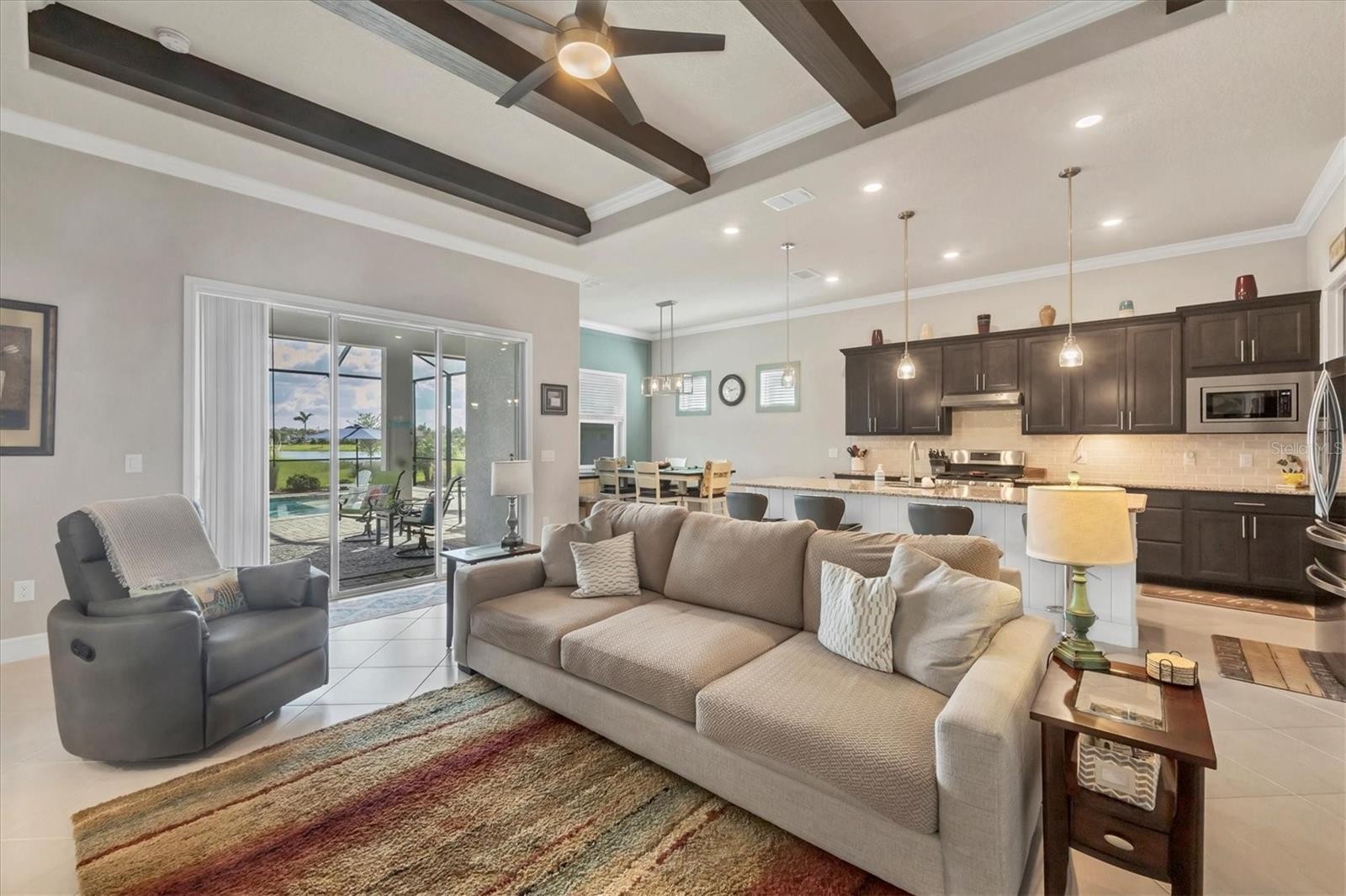 The most adorable grandchild is pulling sellers out of state! The sellers take every advantage of the lifestyle in this community and will miss the many friendships made via Pickleball! Discover the ultimate retirement dream at Del Webb Bay View, where an exceptional 2-bedroom plus den home awaits you. Del Webb Bay View is your gateway to a fulfilling, age-in-place lifestyle, where each day brings new opportunities for leisure and community engagement. Step into this modern home that's sure to impress featuring a spacious granite topped island. Storage abounds in this well-designed space; the pantry is elegantly fitted as are the TWO closets in the primary suite. The oversized primary bedroom boasts a luxurious bath with dual sinks, a walk-in “super” shower with a bench, a linen closet, and a water closet. The guest bedroom has a private bath. Truly, the heart of this home is the Gathering room with its tasteful lighted floating shelves, electric fireplace and beamed coffered ceiling. Sellers switched out the boring pantry and den doors adding a wow to the home. Outside, the heated saltwater pool fulfills all your Florida living desires. There is a whole house generator and hurricane shades around the lanai for your peace of mind and privacy. This energy-efficient Prestige home is equipped with a tankless hot water heater, the garage has extra storage racks built in, the floor has been epoxied, there is a custom drop zone just inside from the garage. Del Webb Bay View is a registered 55+ Gated community, with the HOA payment covering Spectrum high-speed internet, live-stream television, lawn and tree maintenance, and mulching. The community takes care of irrigation, but a small non-potable water fee from Manatee County applies. Location? You're in close proximity to world-class dining, shopping, arts and cultural events, fishing, boating, and just a short drive to St. Pete and Anna Maria Island Beaches. Plus, with Tampa, Clearwater, and Sarasota airports all less than 45 minutes away, travel is a breeze.