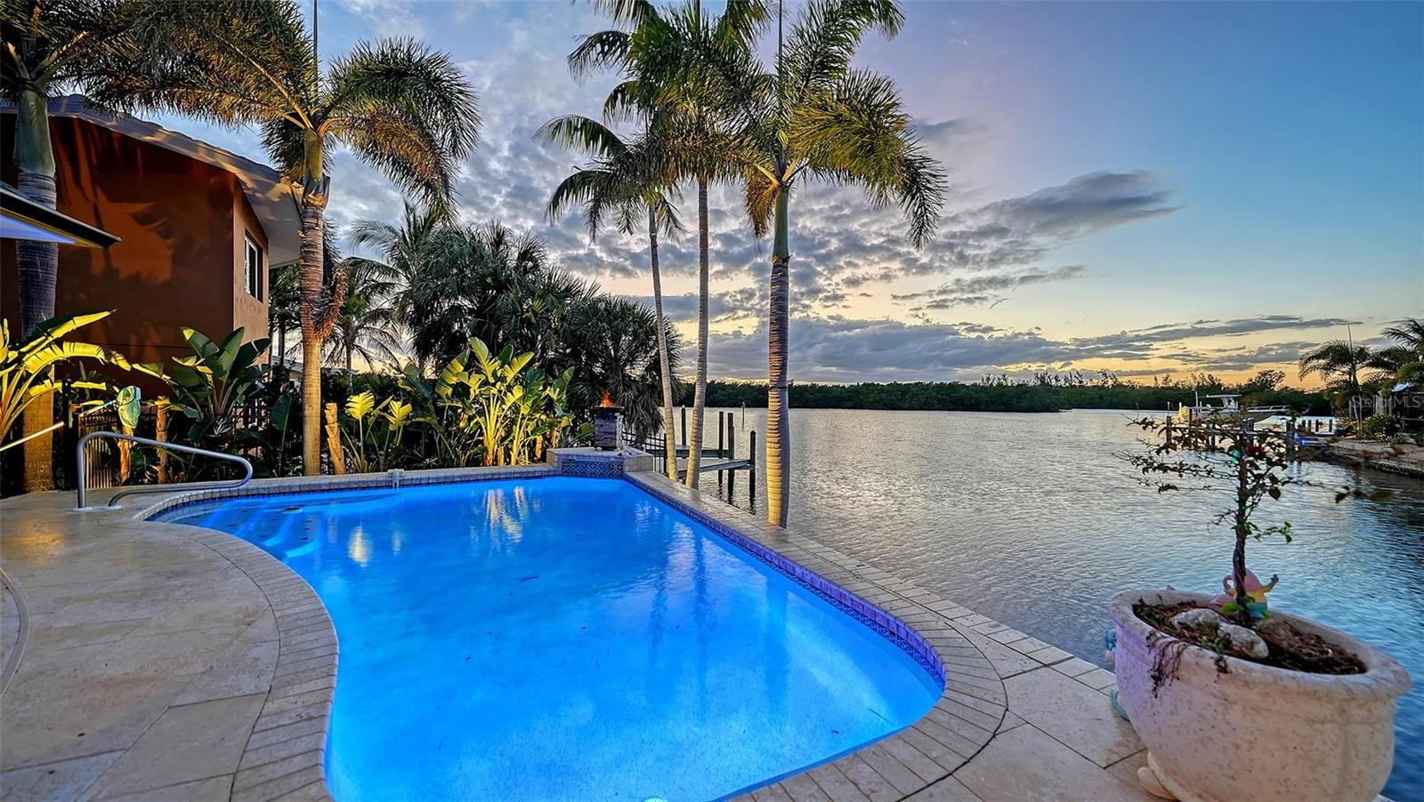 The Jewel of Flamingo Cay. Experience over 3,000 square feet of refined waterfront living, perfectly positioned to capture breathtaking sunset views. This exceptional residence offers 4 bedrooms, 2 bathrooms, a private den/office, and a versatile bonus room, providing flexible space for both everyday living and entertaining. Designed for the boating enthusiast, this saltwater canal property offers direct access to open water with no fixed bridges, a 140-foot private seawall, and a 10,000-lb boat lift—allowing you to be on plane just moments after leaving your dock. The home has been tastefully updated with high-end finishes, including Italian Lube cabinetry, Miele appliances, Hunter Douglas window treatments, and premium countertops and flooring, creating a sophisticated yet comfortable coastal atmosphere. Multiple outdoor living spaces, including open and covered decks and a private balcony off the primary suite, overlook the heated pool and tranquil bayou, offering the perfect setting for relaxation or entertaining. The outdoor experience is enhanced with a fireplace, travertine patios, and lush tropical landscaping, all fully fenced for privacy. Nature lovers will appreciate the ability to kayak or paddleboard directly to the 600+ acre Robinson Preserve in minutes, while dolphins and manatees frequently visit the waters just beyond your backyard. Ideally located, Flamingo Cay offers quick access by boat or car to waterfront dining, marinas, and the world-renowned beaches of Anna Maria Island. Additional highlights include a 2021 roof and both AC systems, along with the rare benefit of over 3,000 square feet within one of the area’s most sought-after canal communities. Flamingo Cay features a voluntary HOA. This is a rare opportunity to own a spacious waterfront retreat in one of West Bradenton’s most desirable boating communities. Come experience the lifestyle that makes Flamingo Cay such a special place to call home.
