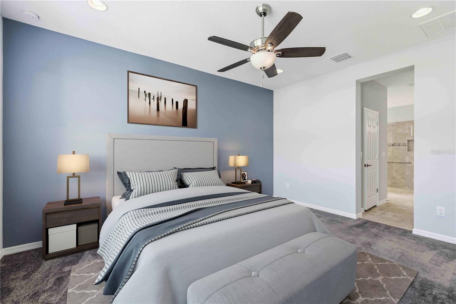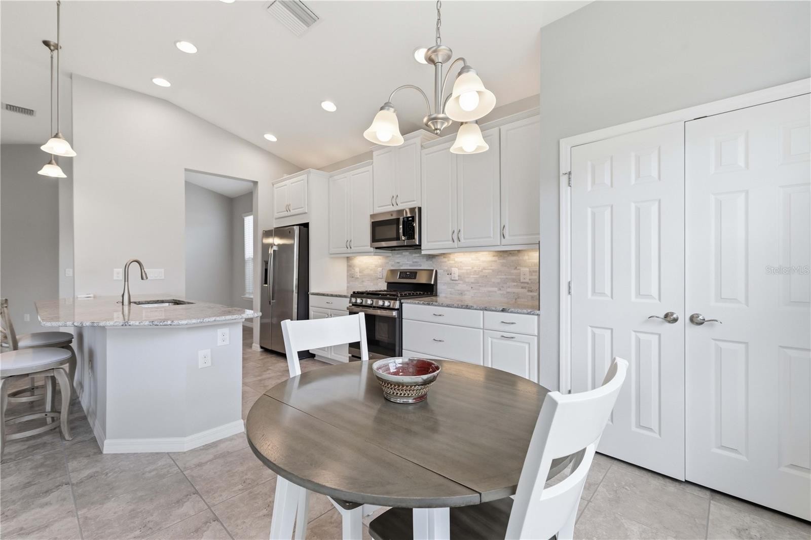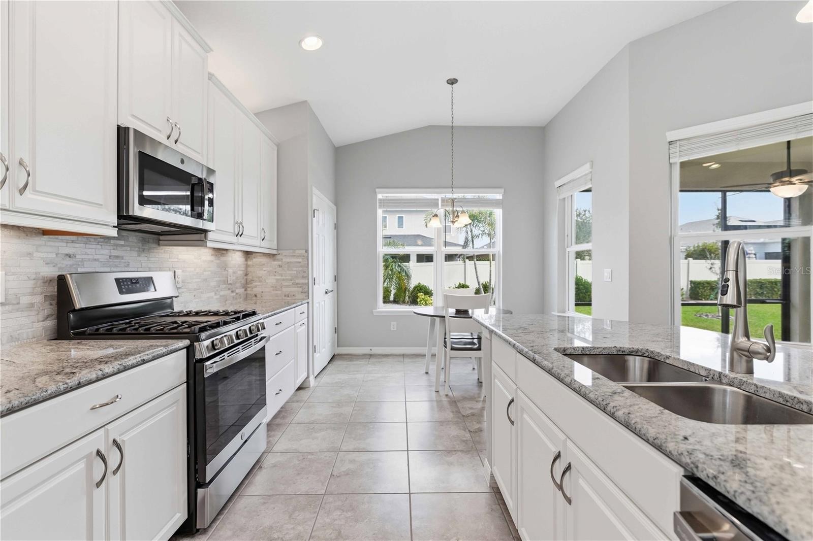 Welcome to comfort, convenience, and peace of mind in Artisan Lakes — where this beautifully maintained home features a whole house generator, charming front porch, and a layout designed for gathering and everyday living. A tropical palm tree welcomes you home, and the charming front porch is the perfect spot for rocking chairs, morning coffee, or relaxing evenings enjoying the Florida breeze. Step inside to discover a warm and inviting layout featuring tile flooring throughout the main living areas and a spacious living room that flows seamlessly into the kitchen and out to the screened lanai, creating an open and connected space ideal for everyday living and entertaining. The kitchen is truly a standout, offering abundant counter space, beautiful granite countertops, generous cabinetry for storage, stainless steel appliances including a gas stove, under-cabinet lighting, and a snack bar with barstool seating for casual meals or gathering with friends. Just off the kitchen, a sunny breakfast nook provides a bright spot to start your day, while the formal dining room offers the perfect setting for hosting holiday dinners and making memories around the table. The split-bedroom layout provides privacy and comfort for everyone. The spacious primary suite features a large bedroom, and TWO walk-in closets with built-in closet system, and a well-appointed bath with dual sinks and a large walk-in shower, creating a relaxing retreat at the end of the day. Additional thoughtful features throughout the home include hurricane shutters, a whole house generator, irrigation system, on-demand water heater, custom blinds, and a garage storage system to help keep everything organized. The laundry room comes complete with a washer and dryer, adding everyday convenience. Step outside to the screened lanai, an inviting extension of the home where you can enjoy Florida’s beautiful weather year-round while overlooking the upgraded landscaping in the back yard. Living in Artisan Lakes means enjoying a vibrant community lifestyle with scenic walking trails, a resort-style community pool, fitness center, basketball courts, sports fields, and playgrounds, offering something for everyone to enjoy. Conveniently located near shopping, dining, and major roadways, this Palmetto location also provides easy access to Bradenton, Sarasota, and the beautiful Gulf Coast beaches.