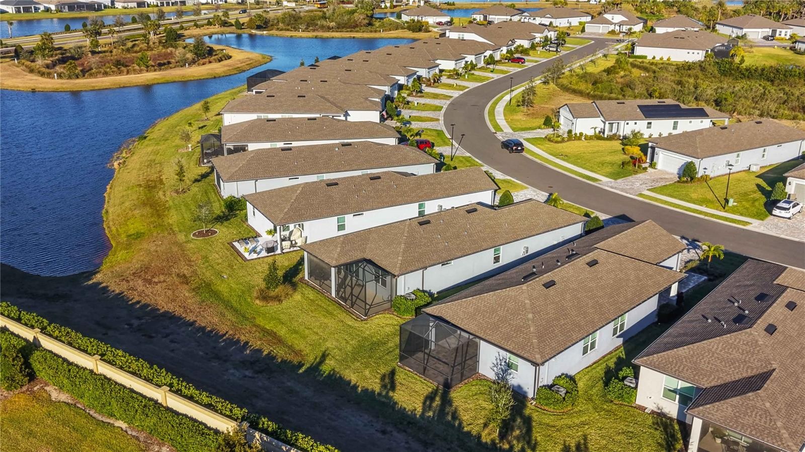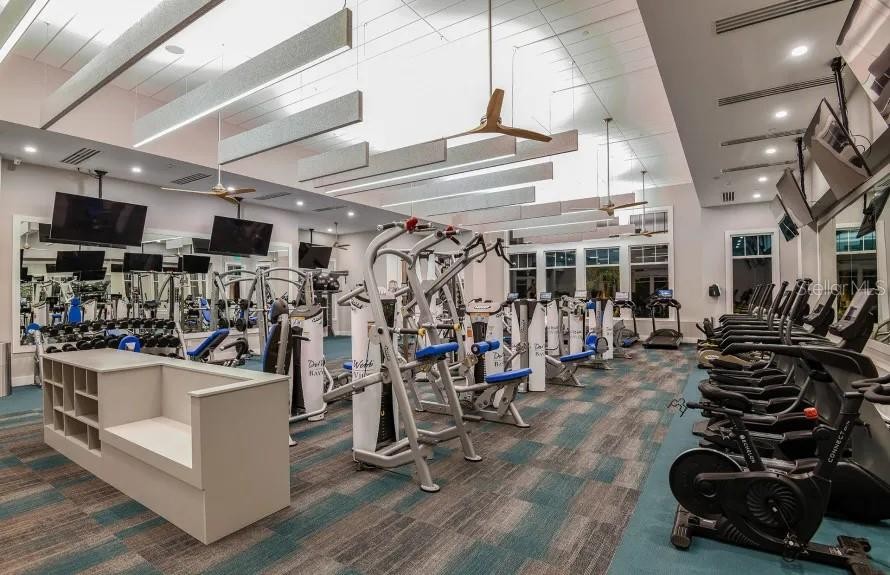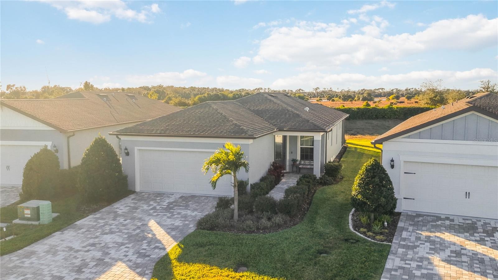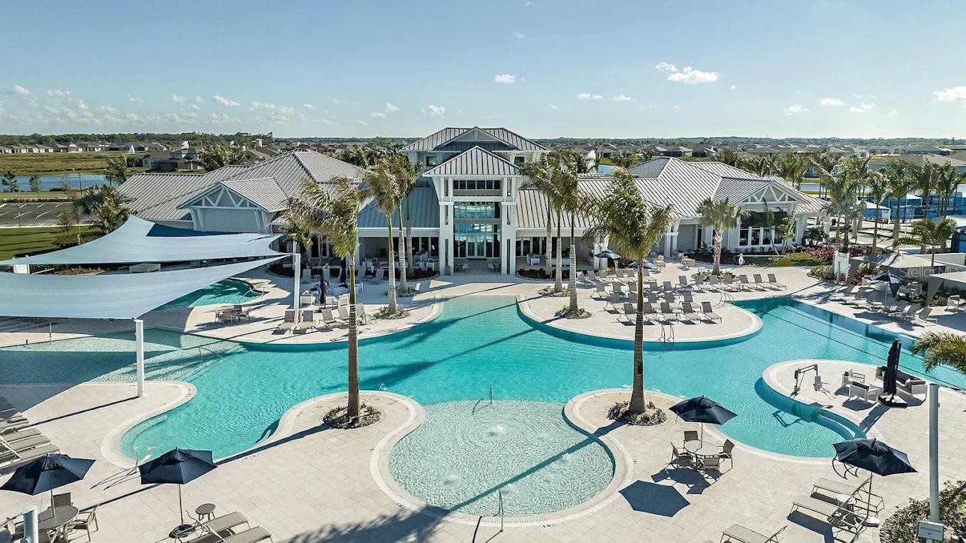 Welcome to Bayview, an exceptional 55+ gated & golf cart community where you can live everyday like you're on vacation Discover new friends, become involved in many social activities, enjoy state of the art amenities including a nearly 25,000 sqft amenity center, resort style pool with cabanas and resistance pool, our own restaurant the "Sailfish Grill" with full bar inside & out, flat screen tv's, billiard tables, bandshell area for live entertainment, dock on water with kayak launch, corn toss, bocce ball/pickleball/tennis/shuffleboard courts, hot tub, fire pit sitting area, walking trails, dog park, fitness center, garden center, garden club and much more. Step into this beautiful, light-filled home featuring 2 bedrooms, 2 bathrooms, and a versatile flex/office room with elegant double French doors. The open-concept floor plan is enhanced by an abundance of windows, creating a bright and inviting atmosphere throughout. The modern kitchen showcases stylish gray cabinetry, quartz countertops, brushed nickel hardware, natural gas, a closet pantry, Whirlpool stainless steel appliances, a mosaic tile backsplash, and pendant lighting over a large center island—perfect for cooking and entertaining. Additional features include 8-foot interior doors throughout and ceiling fans for added comfort. The spacious primary suite offers a spa-like bathroom with dual sinks, a large walk-in shower with seating, and convenient linen closet storage. The primary closet is thoughtfully designed with a built-in organizer for optimal functionality. Relax in the expansive gathering and living area that opens to an oversized screened lanai, where you’ll enjoy serene water views to the right. Unwind in the backyard and take in breathtaking sunset views—your perfect Florida retreat. HOA includes, shrubs, lawn, trimming, reclaimed water for irrigation, internet & cable, private roads, guard at gate, virtual gate after hours. The Sailfish Grill is 410.00 per year which you get to spend each year that amount free. With easy access to I-75, you're just a short drive from the Gulf of Mexico beaches, shopping, dining, and Tampa, St. Petersburg, Bradenton, and Sarasota. Experience the perfect blend of luxury and location in this pet-friendly oasis. Come see this beautiful home today.
