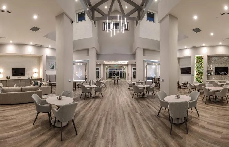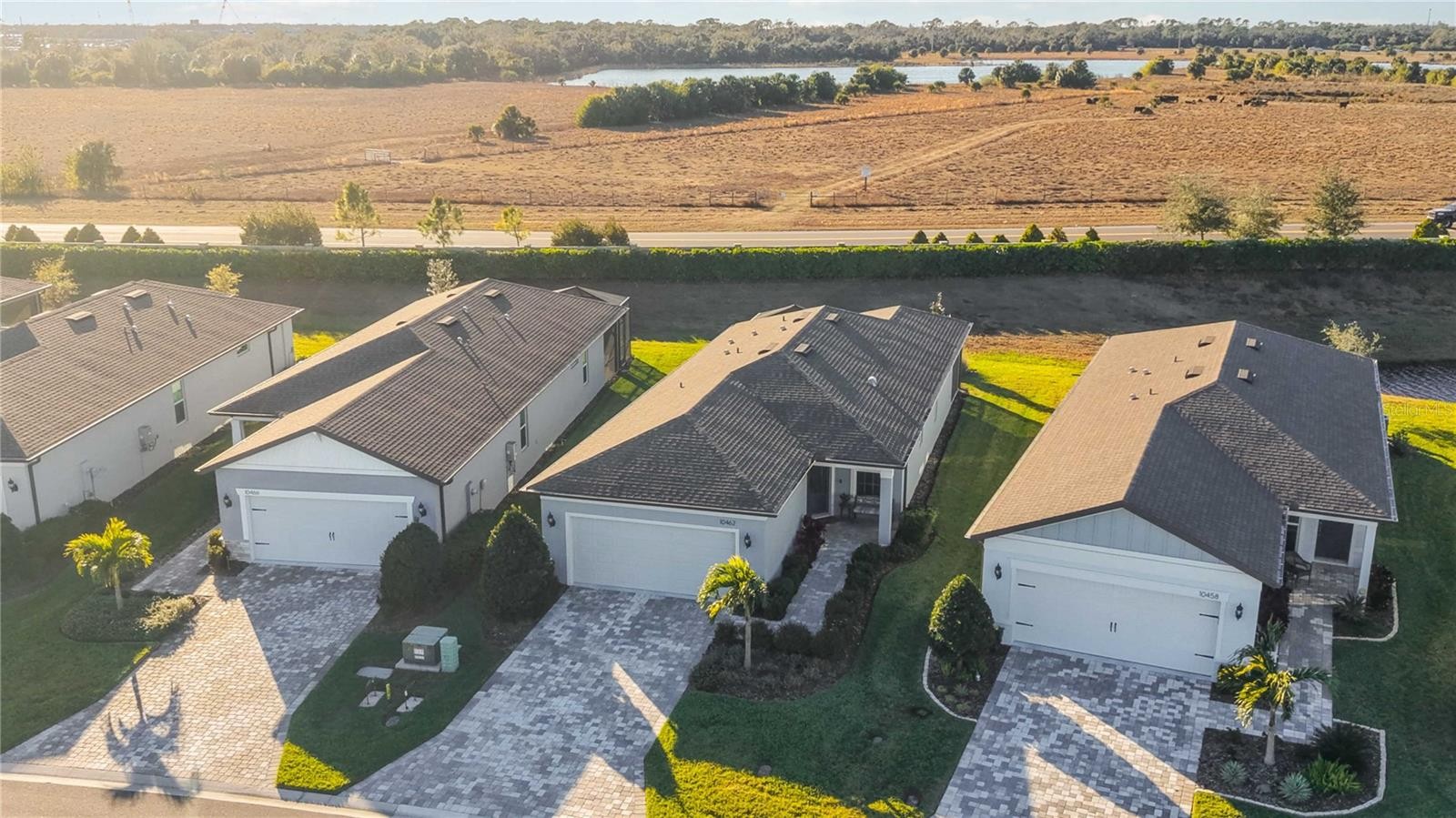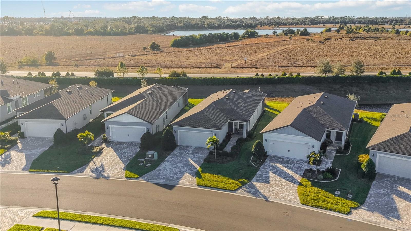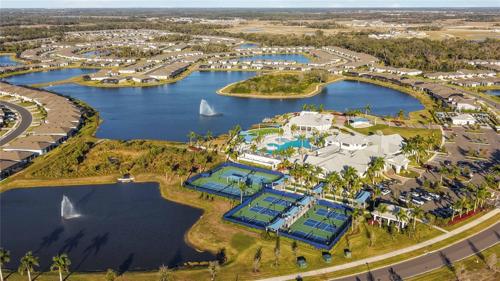 Welcome to Bayview, an exceptional 55+ gated & golf cart community where you can live everyday like you're on vacation Discover new friends, become involved in many social activities, enjoy state of the art amenities including a nearly 25,000 sqft amenity center, resort style pool with cabanas and resistance pool, our own restaurant the "Sailfish Grill" with full bar inside & out, flat screen tv's, billiard tables, bandshell area for live entertainment, dock on water with kayak launch, corn toss, bocce ball/pickleball/tennis/shuffleboard courts, hot tub, fire pit sitting area, walking trails, dog park, fitness center, garden center, garden club and much more. Step into this beautiful, light-filled home featuring 2 bedrooms, 2 bathrooms, and a versatile flex/office room with elegant double French doors. The open-concept floor plan is enhanced by an abundance of windows, creating a bright and inviting atmosphere throughout. The modern kitchen showcases stylish gray cabinetry, quartz countertops, brushed nickel hardware, natural gas, a closet pantry, Whirlpool stainless steel appliances, a mosaic tile backsplash, and pendant lighting over a large center island—perfect for cooking and entertaining. Additional features include 8-foot interior doors throughout and ceiling fans for added comfort. The spacious primary suite offers a spa-like bathroom with dual sinks, a large walk-in shower with seating, and convenient linen closet storage. The primary closet is thoughtfully designed with a built-in organizer for optimal functionality. Relax in the expansive gathering and living area that opens to an oversized screened lanai, where you’ll enjoy serene water views to the right. Unwind in the backyard and take in breathtaking sunset views—your perfect Florida retreat. HOA includes, shrubs, lawn, trimming, reclaimed water for irrigation, internet & cable, private roads, guard at gate, virtual gate after hours. The Sailfish Grill is 410.00 per year which you get to spend each year that amount free. With easy access to I-75, you're just a short drive from the Gulf of Mexico beaches, shopping, dining, and Tampa, St. Petersburg, Bradenton, and Sarasota. Experience the perfect blend of luxury and location in this pet-friendly oasis. Come see this beautiful home today.