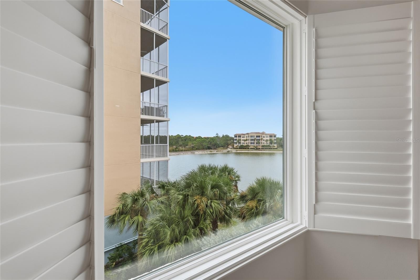 Experience relaxed waterfront living in the center of Lakewood Ranch, one of the nation’s most recognized master-planned communities, with the added benefit of being within walking distance to the famous Main Street at Lakewood Ranch for dining, movie theatre, shopping, farmers market. This well cared for 3-bedroom, 2-bath end-unit condo offers the sought after Cayman floor plan, designed with an open layout that connects the kitchen and dining area to the living space and extends outdoors to the spacious lanai, perfect for daily living and hosting guests. Interior features include coffered ceilings, solid wood cabinets, granite countertops, a custom-shelved pantry, and a custom built-in shelve for walk-in closet. Both the spacious living area and the primary bedroom open to a large lanai overlooking a serene 153-acre lake, where you can enjoy tranquil views and year round wildlife. All three bedrooms are finished with newer carpet for a fresh and comfortable feel. The gated community provides assigned garage parking along with a private storage locker conveniently located under the building. Residents have access to impressive resort style amenities, including a heated pool set along the lake, spa, fire pit, grilling areas, a fully equipped fitness center, and scenic walking paths along the water. The clubhouse offers a catering kitchen, generous outdoor gathering spaces, kayak storage, and direct access to the lake. Ideally situated just minutes from Legacy Golf Course and within walking distance to Lakewood Ranch Main Street, you will enjoy easy access to dining, shopping, movies, miniature golf, and year round events. Additional highlights include impact resistant windows and sliding doors, as well as a built-in ceiling sprinkler system for added fire safety. The central location offers quick access to UTC Mall, downtown Sarasota and Bradenton, I-75, and nearby beaches such as Lido Key and Anna Maria Island.