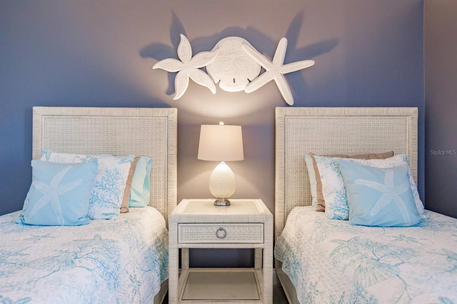 2 BR - 2 BA - 4 Person Max - High-rise - Pond View - Approximately 75 yards away from Crescent Beach This property is a 30 night minimum. This luxurious 2 bedroom, 2 full bathroom unit is only steps from Crescent Beach. Located on the 8th floor in a Gulf-side High-rise, you will experience the many beautiful views of Siesta Key. The kitchen has stainless steel appliances, updated floors, and a ceiling fan. The dining area has seating for 6 and flows seamlessly into the living area. Enjoy plenty of natural light and views through the lanai in this open concept space. The living area has comfortable couch seating, a 65" Smart TV for entertaining and a ceiling fan. Access the lanai from the living room, through large sliding glass doors. The enclosed lanai has wrap around views of Siesta Key, ceiling fans for comfortable indoor/outdoor living and is the perfect place to soak up the Florida views. This updated space has beautiful tile throughout, comfortable lounge furniture and an additional dining area. The master bedroom has a king bed, a 52" TV and a ceiling fan and access to the lanai through sliding glass doors. The master bathroom has a walk-in shower with updated tile, a grab bar, a built-in seat and new fixtures. There is a single sink vanity with granite counter tops and great lighting. The guest bedroom has 2 twin beds, a 40" TV and a ceiling fan and a window seating area. The guest bathroom has an updated tiled shower with a walk-in glass door shower, a grab bar and a built-in shower seat. The vanity has a single sink with a granite counter top and updated light fixtures. There is an assigned parking spot located in the parking garage under the building. There is an in-unit washer and dryer. This condo is accessible via elevators and stairs. Internet access, beach access, tennis court, fitness center, sauna and access to two heated swimming pools included. No pets are permitted on the property. Condo Summary: Bedding: Master Bedroom: 1 King - Guest Bedroom: 2 Twins - Sleeper Sofa: No Electronics: Living-room: 65' Smart' TV - Master Bedroom: 52'' TV - Guest Bedroom: 40" TV Bathrooms: Master: Walk-in Shower - with grab bars - with a shower seat Guest: Walk-in Shower - with grab bars - with a shower seat