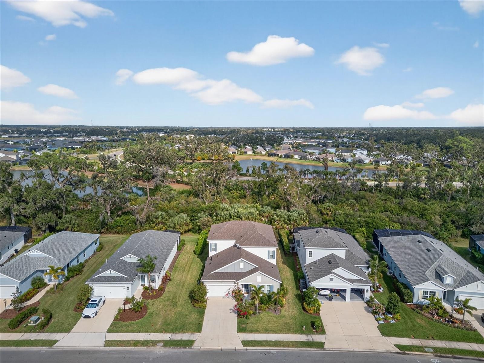 Explore this lightly lived-in, beautifully maintained home in Silverleaf’s exclusive gated community. Backing onto a serene private preserve, the home is filled with natural light and designed for effortless living. An open-concept layout seamlessly connects the dining area, family room, and kitchen. The kitchen features quartz countertops, stainless steel appliances, a gas range, and a designer backsplash. Just off the kitchen, a stylish wet bar with a wine fridge, shelving, and custom tile adds the perfect touch for entertaining. The laundry room impresses with Italian tile, a sink, ample storage, and a rattan chandelier. The living room opens to a screened lanai and a custom pool with a cascading waterfall and gas heater, your own private oasis. The huge first-floor primary suite includes an ensuite bathroom and a custom walk-in closet. A second bedroom and full bathroom are also conveniently located on the main level. Upstairs, a spacious loft provides an additional gathering area for family or guests, along with two generously sized bedrooms all with walk-in closets and two full bathrooms. This high-quality Neal home showcases numerous upgrades, including crown molding, 8' doors, double-pane windows, hurricane shutters, upgraded lighting, gutters, and more. Low HOA fess, community amenities include a resort-style pool, spa, fitness center, playground, walking trail, soccer field, dog park, and basketball court. Ideally situated near I-75, I-275, Fort Hamer Bridge, Ellenton Outlet Mall, restaurants, shopping and only a 30-minute drive to Anna Maria Island. This home also qualifies for USDA and Hometown hero's financing.