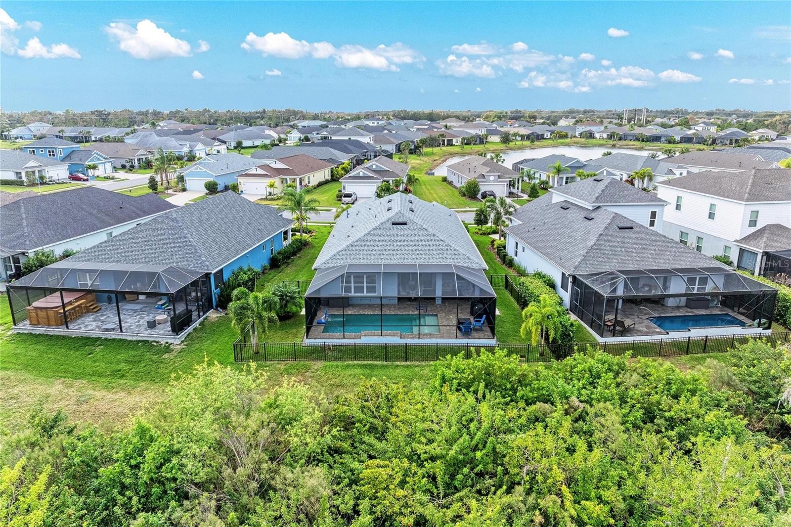 Pride of ownership is evident throughout this immaculate four-bedroom, three-bath home situated within the gated community of Silverleaf. The home boasts an open floor plan, with the main living area offering views of the private pool. Overlooking a preserve and featuring a fully fenced backyard, this property provides an ideal setting for families and pets to enjoy outdoor living. The current owners have invested over $100,000 in upgrades and enhancements, including a pool, pool cage, fencing, surge protection, security system with outdoor cameras, all ceiling fans, upgraded dining room and island fixtures, reverse osmosis system, whole house water softener and floor-to-ceiling tiles in all shower areas, among other improvements. Residents of Silverleaf enjoy a wide variety of amenities, such as a community pool and spa, soccer field, dog park, playground, basketball courts, and numerous walking trails. Silverleaf’s convenient location provides easy access to Tampa, St. Petersburg, Bradenton, and Sarasota. The area is close to restaurants, shopping, beaches, airports, sports venues, cultural activities, and more. This truly move-in ready home is prepared for you to begin living your ideal Florida lifestyle.
