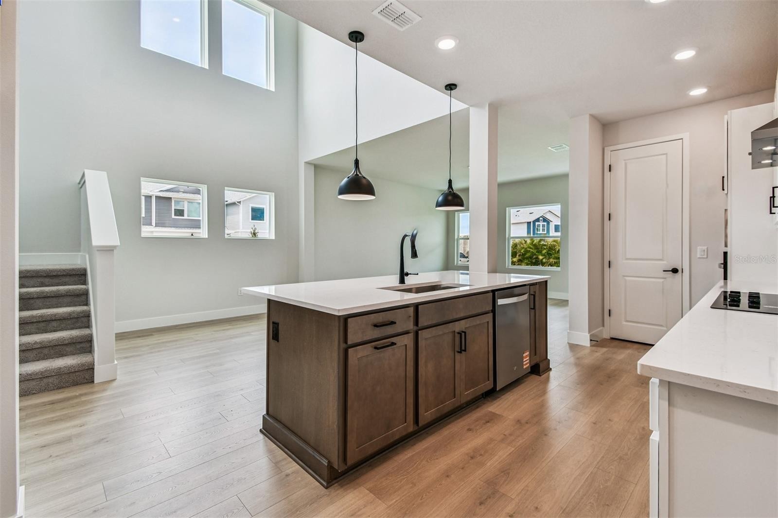 Welcome to The Zander, where comfort and innovative design come together in a striking open layout. Situated on a desirable corner lot with a rear fence and lush areca palms, this home offers added privacy and a touch of natural seclusion to enjoy Florida living at its best. This impressive two story residence features 4 bedrooms, 3.5 bathrooms, a generous upstairs retreat, and a 2 car garage, making it an ideal sanctuary for both family living and entertaining. From the moment you step inside, you are greeted by a stunning 19 foot grand ceiling, with natural light flooding through expansive windows that line the staircase. The open concept design fluidly connects the dining area and kitchen, with sunlight enhancing the home’s inviting atmosphere. At the heart of The Zander lies a chef inspired kitchen, complete with 42 inch upper cabinets, elegant quartz countertops, a cooktop, stainless steel hood, and an undermount sink, perfect for gatherings and culinary creativity. A spacious walk in pantry with custom wood shelving adds both charm and functionality, giving you an organized and beautiful space to store everything you need. The family room flows seamlessly onto the lanai and backyard, extending your living space outdoors. The owners suite, privately situated on the first floor, serves as your personal retreat. Its en suite bath rivals a luxury spa, featuring a super shower, double sink vanity with quartz countertops, and a spacious walk in closet designed for comfort and indulgence. Upstairs, you will discover three generously proportioned bedrooms, two full baths, and a roomy retreat, ideal for movie nights, playtime, or a home office. The overlook into the dining area below adds an element of architectural charm. Nestled in the highly desirable North River Ranch community of Parrish, FL, The Zander offers more than just a home, it delivers a lifestyle. Enjoy resort style amenities, community trails, pools, fitness, and a true neighborhood spirit that makes every day feel connected. Experience the bold beauty and thoughtful design of The Zander for yourself. Schedule your tour today and make this extraordinary home yours. **When you purchase a select David Weekley Quick Move-in Home in the Tampa, Manatee and Sarasota area from September 1 – December 31, 2025, qualified buyers may be eligible for a starting rate as low as 3.99% (4.271% APR) when the home purchase is financed with a conventional 7/6 adjustable rate mortgage home loan from our preferred lender.
