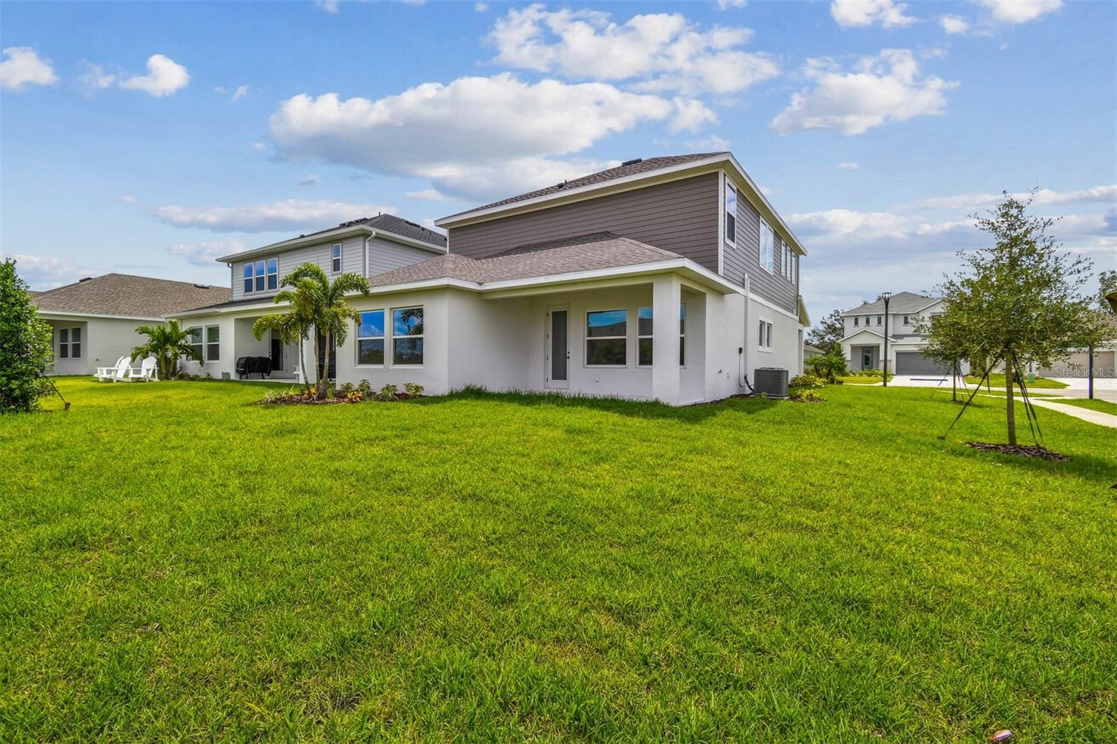 Welcome to The Zander, where comfort and innovative design come together in a striking open layout. Situated on a desirable corner lot with a rear fence and lush areca palms, this home offers added privacy and a touch of natural seclusion to enjoy Florida living at its best. This impressive two story residence features 4 bedrooms, 3.5 bathrooms, a generous upstairs retreat, and a 2 car garage, making it an ideal sanctuary for both family living and entertaining. From the moment you step inside, you are greeted by a stunning 19 foot grand ceiling, with natural light flooding through expansive windows that line the staircase. The open concept design fluidly connects the dining area and kitchen, with sunlight enhancing the home’s inviting atmosphere. At the heart of The Zander lies a chef inspired kitchen, complete with 42 inch upper cabinets, elegant quartz countertops, a cooktop, stainless steel hood, and an undermount sink, perfect for gatherings and culinary creativity. A spacious walk in pantry with custom wood shelving adds both charm and functionality, giving you an organized and beautiful space to store everything you need. The family room flows seamlessly onto the lanai and backyard, extending your living space outdoors. The owners suite, privately situated on the first floor, serves as your personal retreat. Its en suite bath rivals a luxury spa, featuring a super shower, double sink vanity with quartz countertops, and a spacious walk in closet designed for comfort and indulgence. Upstairs, you will discover three generously proportioned bedrooms, two full baths, and a roomy retreat, ideal for movie nights, playtime, or a home office. The overlook into the dining area below adds an element of architectural charm. Nestled in the highly desirable North River Ranch community of Parrish, FL, The Zander offers more than just a home, it delivers a lifestyle. Enjoy resort style amenities, community trails, pools, fitness, and a true neighborhood spirit that makes every day feel connected. Experience the bold beauty and thoughtful design of The Zander for yourself. Schedule your tour today and make this extraordinary home yours.