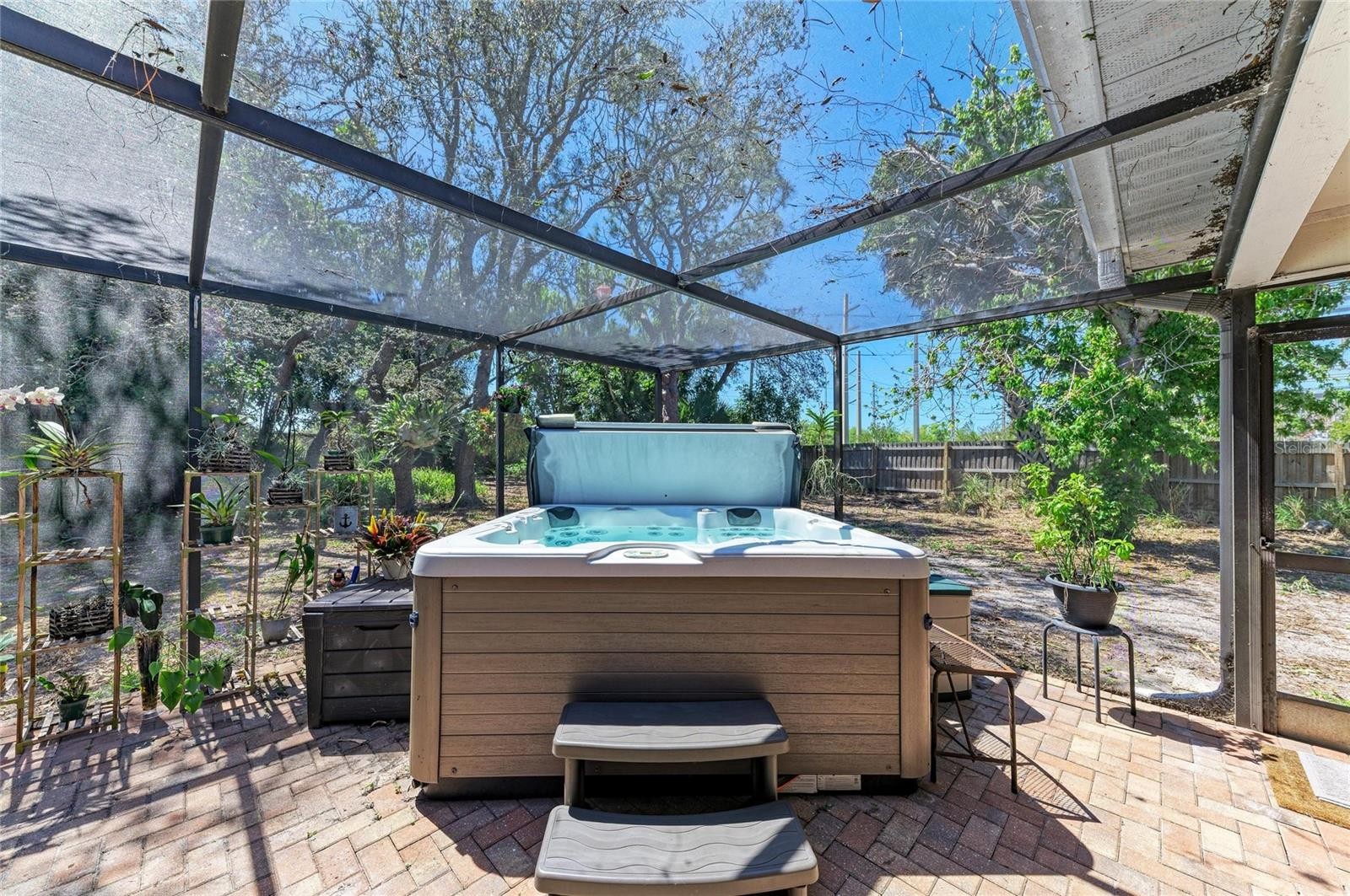 One or more photo(s) has been virtually staged. This charming, move-in-ready home in Palma Sola Village is just minutes from the pristine beaches of Anna Maria Island. Nestled on a spacious 1/3-acre corner lot, this three-bedroom, two-bath, two-car garage house with storage shelves features a split floor plan and vaulted ceilings with an abundance of living space. This home is brimming with potential to become your personal paradise with plenty of room to add a pool, outdoor kitchen or storage shed. The home provides with three separate pocket door sliders that open to the screened-in lanai with a luxurious hot tub. The large family room off the kitchen is outfitted with a wood-burning fireplace, offering a cozy and warm area for family gatherings. The primary bedroom provides a high vaulted ceiling, en-suite bath, walk-in closet and sliders to the lanai. The guest bedrooms provide privacy or are ideal for a home office. Outside, enjoy extra parking space with a wide driveway including a parking pad, providing plenty of room for multiple cars and vehicles. The friendly neighborhood often gathers for holiday celebrations with the best Halloween trick-or-treating in the area and Christmas eve luminaries, plus top-rated schools, Publix, Target and post office nearby, which adds to the convenience of this location. The HOA fee is only $150 annually, allows minimum one-year rentals and is pet-friendly. Spend your weekends exploring the stunning beaches, boutique shops and delectable dining options that Anna Maria Island has to offer. The vibrant arts and culture scene, as well as various outdoor activities, are all within easy reach. Don't miss the opportunity to make this home in Northwest Bradenton your private haven. Don’t miss out on this fantastic opportunity to make it your own. Homes rarely come available in this neighborhood, so schedule a showing today!