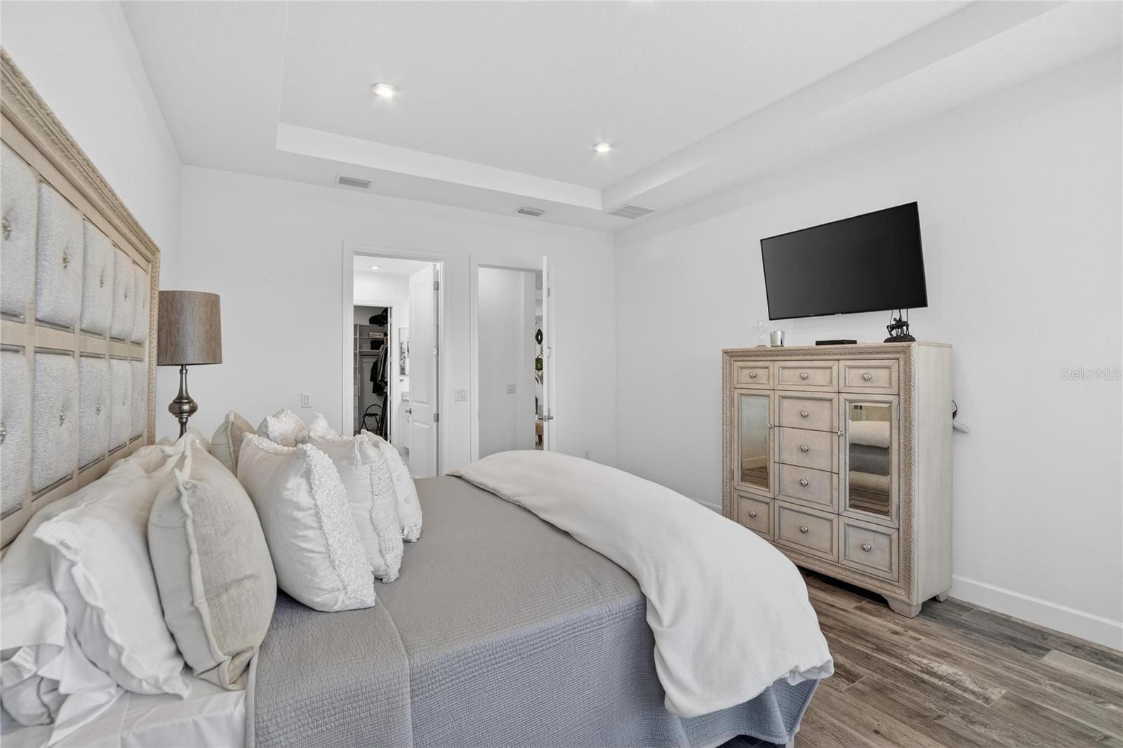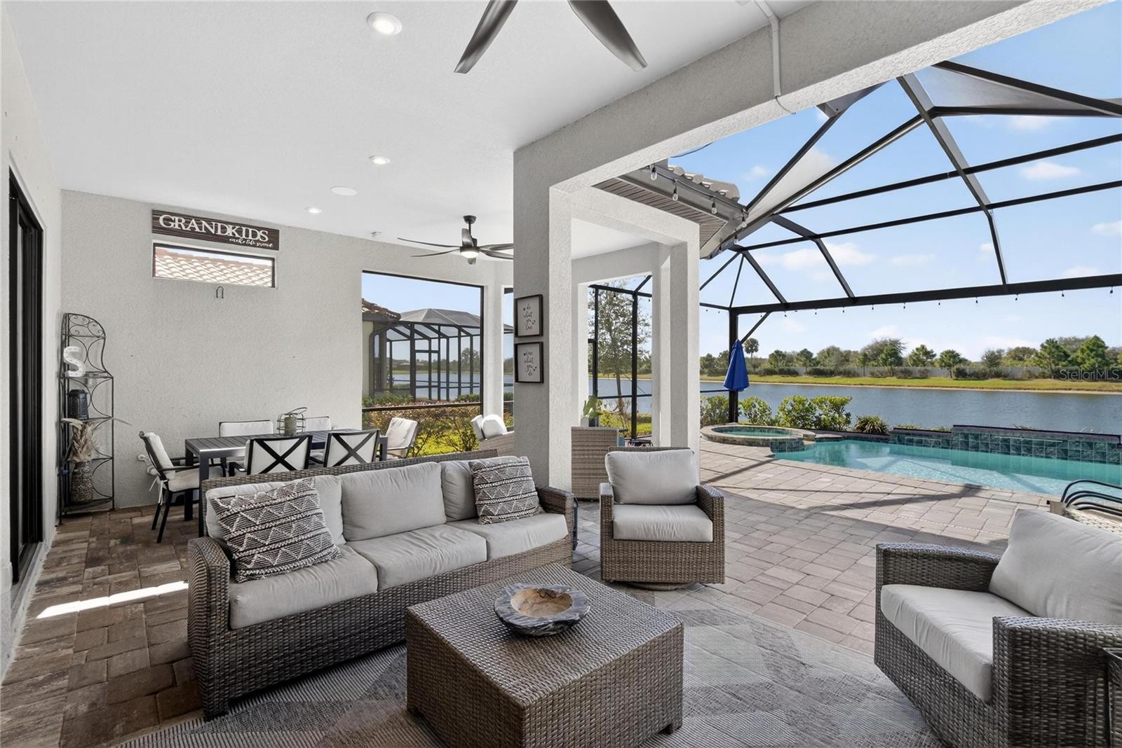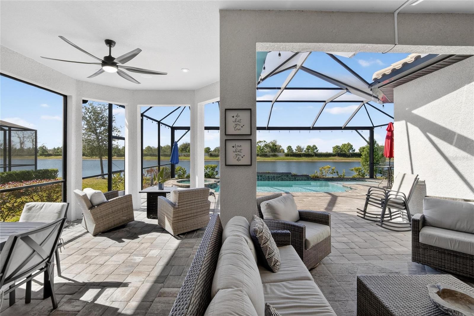 Tell your honey to stop the car NOW!!! This is "The One" and seeing is believing!! Welcome home to The Lazio floor plan by Taylor Morrison, located in the master planned community - Esplanade at Artisan Lakes in Palmetto. Situated lakeside, all within 2,400 sq ft, this home has everything to offer. Upon entering, the wide foyer greets you with a view of the open floor plan. Starring 4 bedrooms, 3 full bathrooms, a den/office, gourmet kitchen, spacious great room, separate dining room, and oversized 2-car garage, your new home has it all. The primary bedroom features a tray ceiling, plank tile floors, and bay windows with space for a seating area. The primary bathroom has a super-shower, gorgeous quartz countertops, and a customized closet. Next up, the 3 spacious secondary bedrooms with one having its own full bathroom that would be great as an in-law or guest suite. For the worker from home, the office/den offers an abundance of natural light and space. Co-starring is the gourmet kitchen designed with quartz countertops, 42" white cabinets with crown molding, elegant backsplash, 36" five burner gas cooktop, stacked microwave/oven, stainless steel appliances, and walk-in pantry. The walk-in laundry room has a counter for folding clothes, tons of cabinets to store laundry and cleaning supplies, and a sink for hand washing delicates. The finishing credits include crown molding in the main living spaces, 8-foot doors, 10-foot ceilings adding to the luxurious feel of this home. Last but not least and definitely the true star of this home - the relaxing backyard space. Take in the sunrise or the sunset while soaking in your sparkling pool/spa while overlooking the lake without any rear neighbors in sight. Family gatherings will be extra special with space for everyone to hang out. The panoramic view screened lanai offers extra comfort by keeping out no-see-ums and mosquitoes. Don't miss out on this one of a kind Lazio. Esplanade at Artisan Lakes is a thoughtfully designed, master-planned community offering amazing amenities to include a resort-style pool, clubhouse, fitness center, playground, dog park, pickleball courts, shuffleboard, scenic lakes, and miles of walking trails. Located within close proximity to I-75, HWY-41, and US-301 - traveling to MacDill AFB, Florida's best beaches, shopping, and eateries will be a breeze. Schedule your tour today!