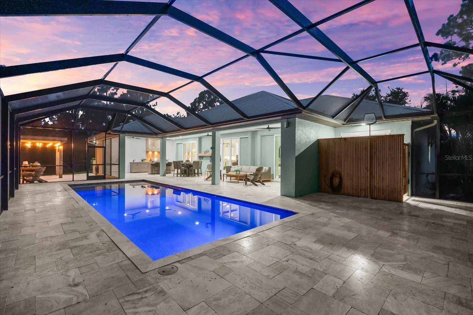 Welcome to 10808 Leafwing Drive, a private 3.64-acre estate in Sarasota’s exclusive gated community, The Forest at Hi Hat Ranch. Designed and built in 2021, this custom-crafted residence—known as The David—is a rare opportunity to experience modern luxury seamlessly blended with the tranquility of nature. Every element of this home was thoughtfully designed to deliver sophistication, privacy, and the finest in Florida living. The main residence spans more than 5,500 square feet in total, with 3,352 square feet of air-conditioned living space centered around an open, airy floorplan. A dramatic 23-by-34-foot great room serves as the heart of the home, with soaring ceilings, a fireplace, and expansive glass doors that frame peaceful views of Lake Wood and the surrounding conservation land. The chef’s kitchen is equally impressive, featuring custom wood cabinetry, stone counters, top-tier appliances, walk-in pantry, and generous workspace for both everyday living and large-scale entertaining. There are a total of 4 bedrooms - 1 is currently used as an office which has an adjacent bathroom. The primary suite was designed as a private retreat, complete with a spa-inspired bath featuring a soaking tub, oversized walk-in shower, dual vanities, and a spacious custom closet. Two additional guest suites with walk-in closets and en suite baths lend comfort and privacy. A versatile study with its own walk-in closet provides flexibility as a home office, library, or additional bedroom. Enhancing the property’s versatility, a detached casita offers an additional 600 square feet with a private bath and kitchenette—perfect for extended family, long-term guests, or multigenerational living. Outdoor living takes center stage in this estate, with a heated saltwater pool featuring a sun shelf, fiber optic lighting, and an integrated spa. The expansive screened lanai with summer kitchen, outdoor dining, and multiple lounge areas creates a seamless indoor-outdoor lifestyle. Mature landscaping, irrigation system, and private fencing further enhance the serene setting. Additional features include a four-car garage with carport parking, golf cart and RV accommodations, storm protection, whole-house water filtration and reverse osmosis systems, and energy-efficient design throughout. Beyond the property, residents of The Forest at Hi Hat Ranch enjoy the rare combination of seclusion and convenience. Just minutes from downtown Sarasota, world-class beaches, fine dining, golf, and cultural venues, this estate provides both privacy and access to everything that makes Sarasota one of Florida’s most desirable destinations. 10808 Leafwing Drive is more than a residence—it is an estate of distinction that offers timeless craftsmanship, luxurious amenities, and an unparalleled Florida lifestyle.