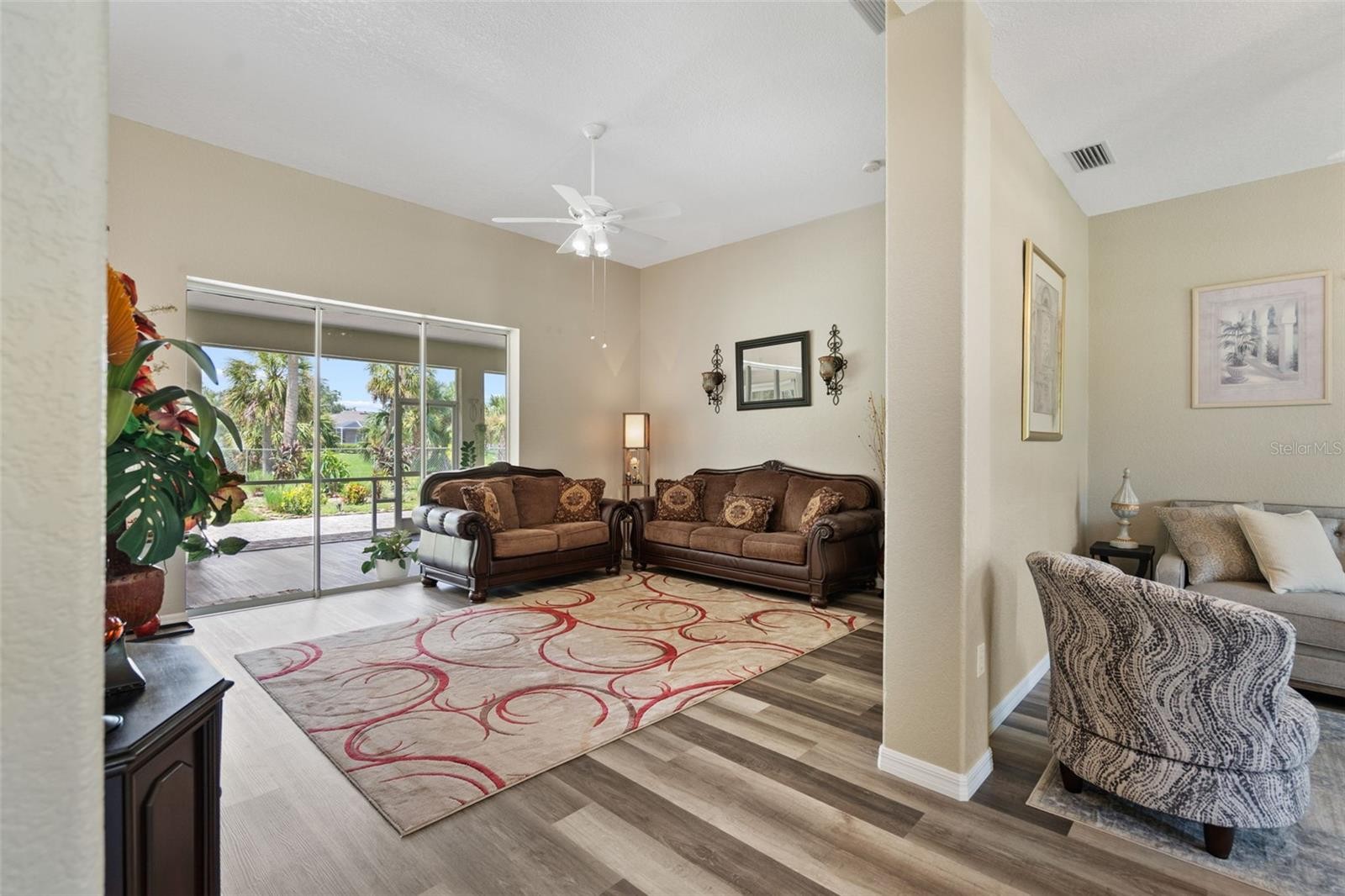 Experience waterfront living along the peaceful Coco Plum Waterway. This beautifully maintained home offers the perfect blend of comfort, functionality and Florida charm, inviting you to enjoy life at a slower pace with private water access right in your backyard. A personal dock provides the ideal setting for fishing, kayaking or simply unwinding while taking in tranquil canal views. Inside, the home welcomes you with an open, light-filled floor plan featuring high ceilings and an airy feel throughout. Recent upgrades include a new roof, hurricane impact windows, new flooring and fresh interior and exterior paint, providing both peace of mind and enhanced curb appeal. Step outside to the expansive screened lanai, the perfect place to enjoy morning coffee or evening sunsets overlooking the lush yard and calm waterway. Mature palms, fruit trees and a paved patio area create a welcoming outdoor environment ideal for gatherings and relaxation. A two-car garage and well-maintained driveway further enhance the home’s inviting presence. Conveniently located near beaches, shopping, dining, fishing, Warm Mineral Springs, CoolToday Park, Wellen Park, the North Port Aquatic Center, US-41 and I-75, this home offers the ideal balance of tranquility and accessibility. Schedule your private showing today and discover the waterfront lifestyle you’ve been waiting for.