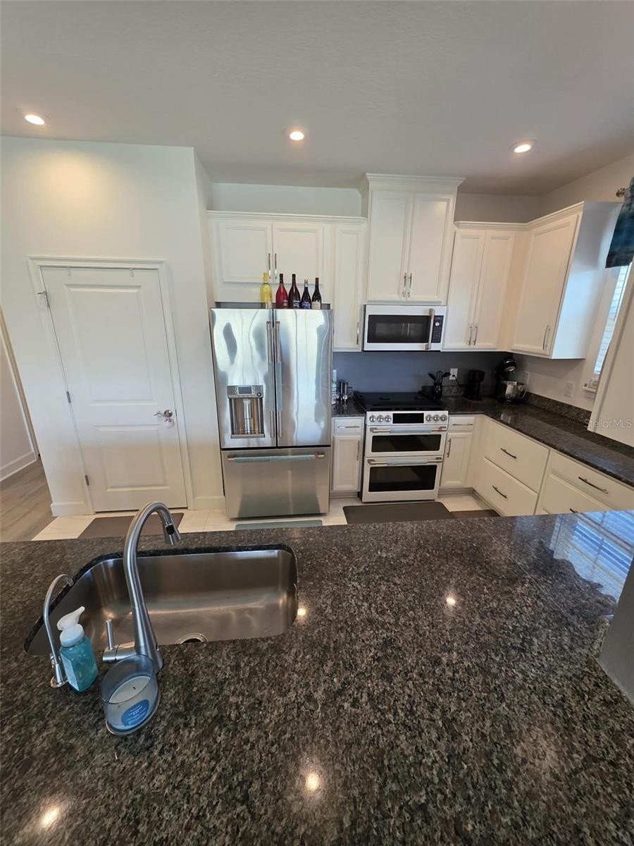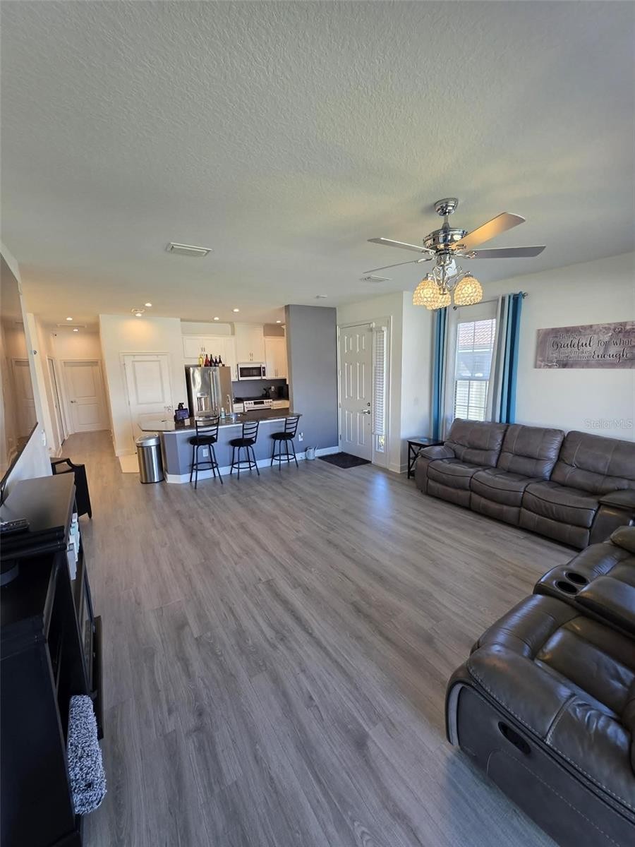 HURRICANE-PROOF BUILDING UPGRADES - NO FLOOD ZONE - LOW HOME INSURANCE - MOVE-IN READY! This meticulously maintained home is packed with high-end upgrades, smart technology, and thoughtful touches throughout. Located in a great neighborhood with HOA-covered amenities (including roof, exterior paint, yard work, and more), this home combines convenience, security, and style. Interior Features: Gourmet kitchen with double oven, 6 full-size burners, cast iron grill & griddle plates, and an oversized smart refrigerator/freezer with hot/cold water & ice capabilities Pull-out heavy-duty kitchen drawers for maximum storage, plus a pull-out trash cabinet Filtered waterspout in kitchen sink Updated microwave/convection oven Solid wood shelving in all closets and pantry—no wire shelves Spacious laundry room with built-in cabinets and countertop Remote-controlled ceiling fans in every room, including the lanai Smart, heavy-duty washer & dryer Bonus room with French doors—perfect for a home office or easily converted to a 3rd bedroom All showers have doors for a clean, modern look Comfort & Air Quality: Air purifying system built into the AC, plus UV light for added protection Whole-home water purification system Smart appliances throughout—many of which communicate with each other and with you Wooden shades throughout Exterior Upgrades: Sealed/coated driveway and garage floor Screen door and full all-around gutters Floored lanai, perfect for relaxing or entertaining Garage features: built-in side shelving, hidden overhead storage, bike holders, and a smart keypad garage door opener Safety & Security: Wired alarm system with sensors on every window and door Indoor & outdoor security cameras—no batteries to change, all professionally wired Panic alarm in second bedroom Connected fire alarm system Up-to-date hurricane protection features result in lower home insurance premiums This home is truly turn-key, offering peace of mind, luxury, and functionality in every detail. Don’t miss the opportunity to own a home that’s been upgraded with care and lived in with pride.