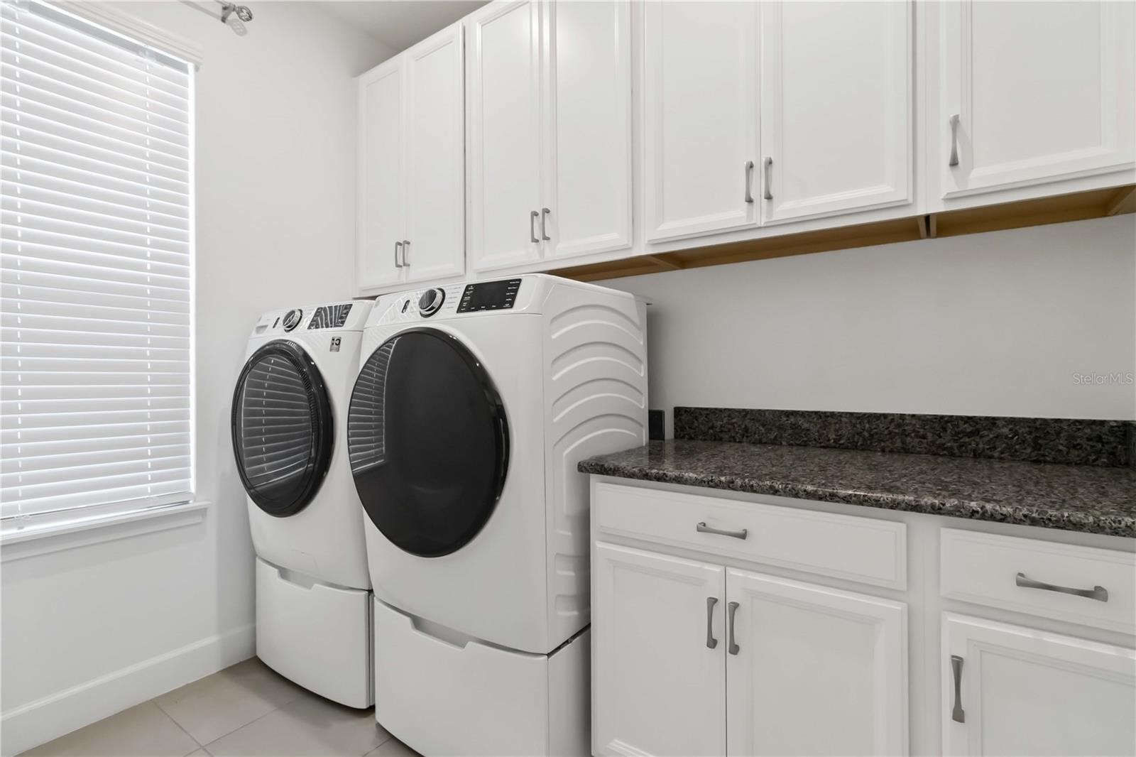 HURRICANE-HARDENED HOME | NO FLOOD ZONE | LOW INSURANCE | MOVE-IN READY. Meticulously maintained and loaded with high-end upgrades, smart technology, and thoughtful enhancements throughout. Located in a desirable community with HOA-covered amenities including roof, exterior paint, yard maintenance, and more offering low-maintenance ownership and exceptional value. The gourmet kitchen features double ovens, six full-size burners with cast-iron grill and griddle plates, oversized smart refrigerator/freezer with hot and cold water and ice, pull-out heavy-duty drawers, pull-out trash cabinet, filtered water spout, and updated microwave/convection oven. Solid wood shelving in all closets and pantry. Spacious laundry room with built-in cabinetry and countertop. Remote-controlled ceiling fans in every room including the lanai. Smart heavy-duty washer and dryer included. Bonus room with French doors ideal for office, flex space, or easily converted to a third bedroom. All showers feature glass doors for a clean modern finish. Whole-home air purification system integrated into the AC with UV light, plus whole-home water purification system. Smart appliances throughout and wooden shades. Exterior upgrades include sealed driveway and garage floor, full gutter system, screened entry door, and floored lanai. Garage offers built-in shelving, hidden overhead storage, bike holders, and smart keypad garage door opener. Safety features include professionally wired alarm system with window and door sensors, wired indoor and outdoor security cameras (no batteries), panic alarm in secondary bedroom, connected fire alarm system, and upgraded hurricane protection contributing to lower insurance premiums. Truly turnkey and ready for immediate occupancy.