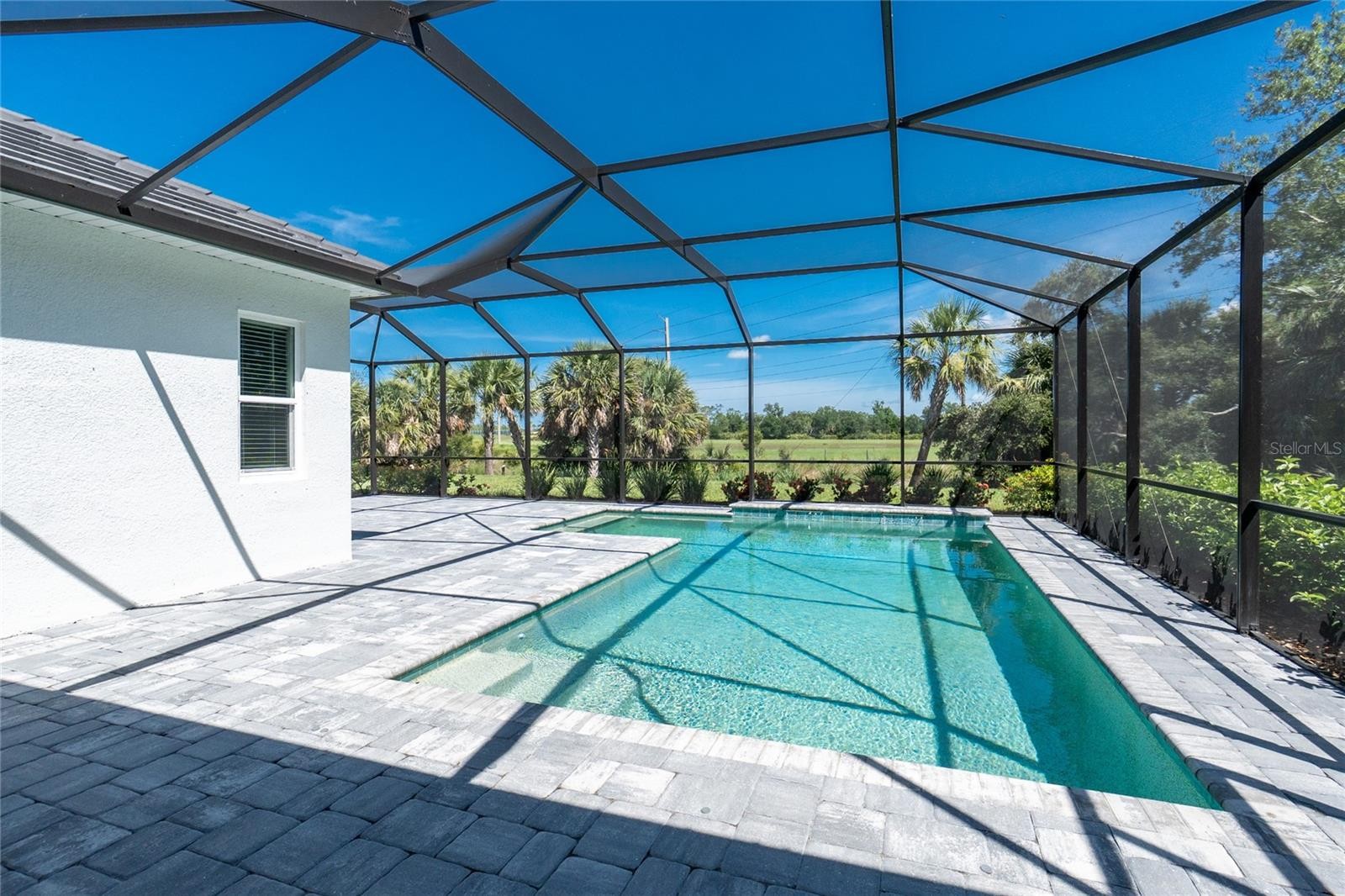 Experience Luxury Living at its finest with this immaculate 2023 Pool Home at Boca Royale Golf & Country Club! This stunning Endless Summer 3 design boasts 3 bedrooms, a flexible space, and a private pool, all nestled in the new section of this prestigious golfing community. The striking exterior features a multidimensional tile roof, paver driveway and walkway, stone accents, and elegant architectural details that create outstanding curb appeal. Inside, an open floor plan with tray ceilings highlights the gourmet kitchen, complete with quartz countertops, modern cabinetry, a walk-in pantry, and a custom wood vent hood over the gas cooktop. The kitchen flows seamlessly into the dining and living areas, perfect for entertaining. The primary suite is a true retreat, with a tray ceiling, two walk-in closets, and a luxurious en suite bathroom featuring a dual granite vanity, walk-in shower, and a window for natural light. Guest bedrooms share a stylish bathroom with a granite-topped vanity and walk-in shower. A versatile office/den with French doors can easily be transformed into a gym, hobby room, or extra guest space. Step outside through triple sliding glass doors and unwind in your own tropical oasis. The expansive paver lanai area surrounds the pool with a beautiful waterfall feature, ideal for relaxation. A convenient half bath, which also serves as a pool bath, and a laundry room with built-in cabinets and a sink add extra functionality. Did I mention this home is in an X flood zone and flood insurance is not required? This home also comes equipped with smart home technology to control your security system, A/C, and door locks remotely. As a resident of Boca Royale, you'll enjoy resort-style amenities, including lawn care, a heated/cooled community pool, tiki bar, spa, fitness center, and social club. Separate memberships are available for golf, tennis, and pickleball. The clubhouse is a hub for community activities, and with quick access to Venice, Englewood, and Wellen Park, you're just minutes from beaches, shopping, dining, and medical facilities. Schedule your tour today and make this dream home yours!