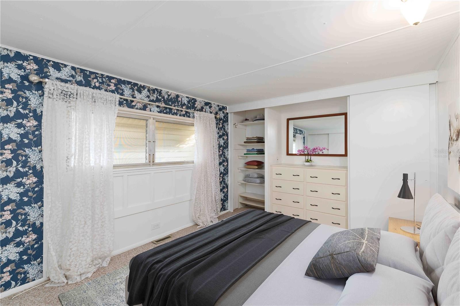 One or more photo(s) has been virtually staged. Welcome to Tidevue Estates, a sought-after 55+ land-owned community offering an active Florida lifestyle in a charming, well-maintained setting. This inviting corner-lot home is framed by mature Christmas palms and native landscaping, creating a welcoming first impression. The perfect space to relax, unwind, and enjoy the neighborhood atmosphere. New Roof in 2024 for peace of mind. Inside, the home features a bright, open living area highlighted by a solid wood shiplap accent wall and decorative wall sconces that add warmth and character. The cozy kitchen is well equipped with an oven range and durable laminate flooring, ideal for everyday living. The owner’s bedroom has been thoughtfully updated with beadboard walls, three closets, and a built-in dresser for ample storage. A spacious 16x16 Florida Room with solid wood beams, adding approximately 256 square feet of additional living space. The inside laundry room includes a wall A/C unit that also services the Florida Room. Residents of Tidevue Estates enjoy a low HOA of only $600 annually, free Wi-Fi at the community library, and an impressive array of amenities including a heated community pool, fitness center, pickleball, bocce ball, shuffleboard, and a full calendar of social activities. Just a short bike or golf cart ride away, Veteran’s Park offers peaceful nature views, picnic areas, and stunning sunsets. Conveniently located near I-75, Ellenton Premium Outlets, dining, and medical facilities, with easy access to Sarasota, UTC Mall, St. Armands Circle, Selby Botanical Gardens, the Ringling Museum, and the Gulf’s beautiful beaches. Come experience the Tidevue lifestyle and all it has to offer.