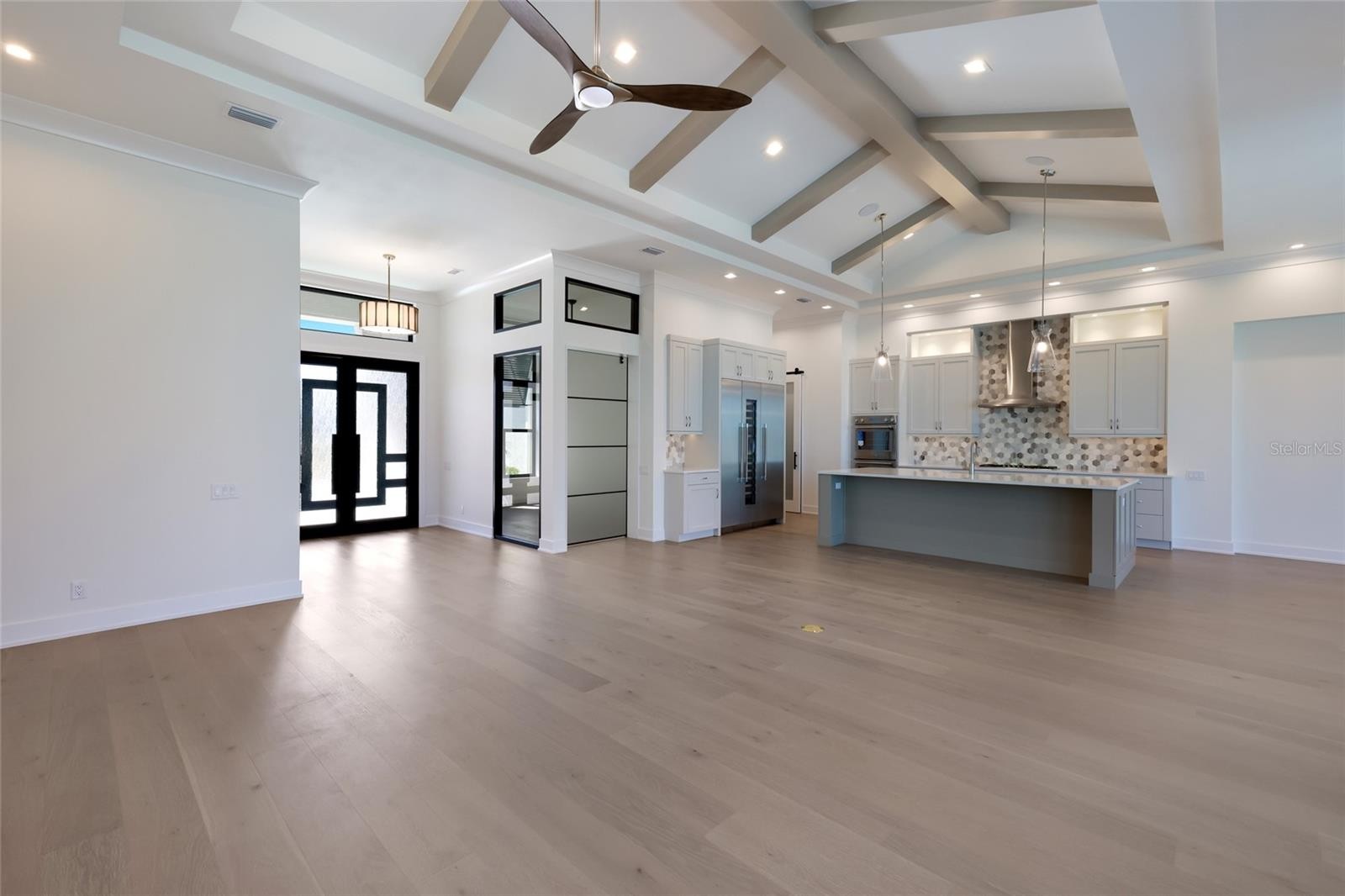 Brand new and move-in ready, this Arthur Rutenberg residence in Wild Blue at Lakewood Ranch showcases Signature-level craftsmanship across 3,222 square feet of thoughtfully designed living space. Built with hurricane-impact windows and doors for lasting peace of mind, the home features rich wood flooring, soaring ceilings, and refined detailing throughout. The open kitchen anchors this sophisticated great room design with top-tier appliances, an expansive island with seating, custom cabinetry, quartz countertops, and a generous walk-in pantry—ideal for both everyday living and entertaining. The floor plan offers three spacious en suite bedrooms, three full baths, a stylish powder bath, a dedicated office, and a versatile bonus room to suit your needs. Outdoor living is equally impressive with a private pool and spa complemented by a fully equipped outdoor kitchen for seamless indoor-outdoor enjoyment. Residents of Wild Blue will enjoy a waterfront clubhouse with restaurant and bar, tennis and pickleball courts, fitness center, golf simulator, and an active social calendar, all just minutes from Waterside Place, University Town Center, airports, and Sarasota’s renowned beaches, delivering exceptional quality, location, and lifestyle in one of Lakewood Ranch’s newest luxury enclaves. One year builder warranty starting date of closing.