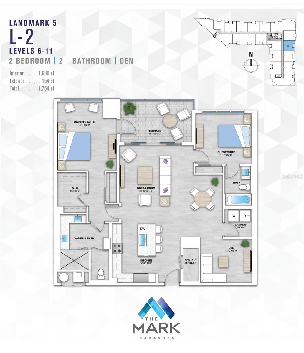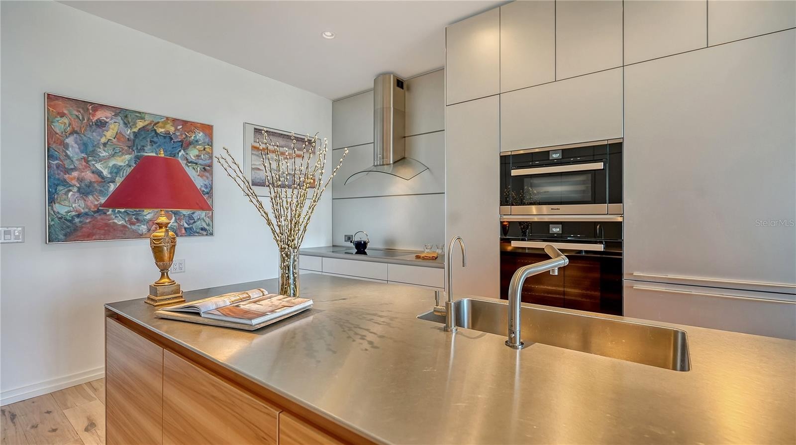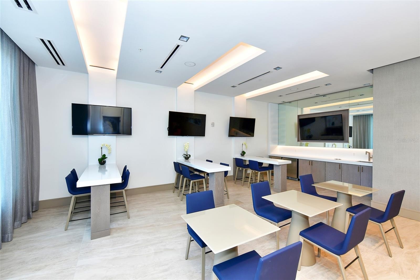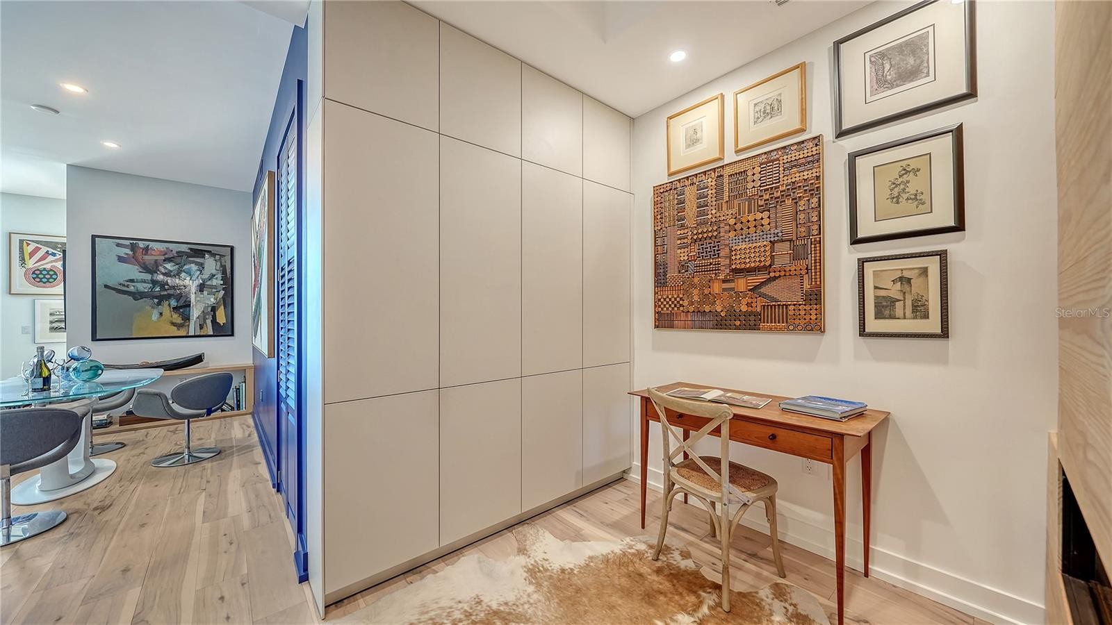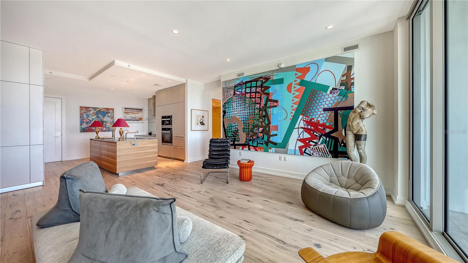 Recently enhanced with thoughtful upgrades and design refinements, this 11th-floor residence at The Mark Sarasota presents an elevated, move-in ready opportunity in the heart of downtown. A brand-new shower in the primary suite, refreshed finishes, and carefully curated improvements complement the home’s architectural integrity, further elevating its refined modern aesthetic. Perfectly positioned above the city, this exceptional condominium spans approximately 1,600 square feet and is defined by 10-foot ceilings, floor-to-ceiling windows, and a seamless connection to Sarasota’s skyline. East-facing exposure fills the residence with natural light, while expansive glass frames dynamic urban views from nearly every room. The open-concept layout flows effortlessly from the sleek entry into the living, dining, and kitchen areas. Gallery-style walls and sculptural architectural elements create a striking backdrop for art, while hickory hardwood flooring extends throughout, reinforcing the home’s cohesive and contemporary design. Carefully selected color accents and tailored detailing enhance the residence’s clean lines. At the center of the home is a custom European kitchen from Germany, designed with precision and minimalist sophistication. This distinctive culinary space features smooth cabinetry, a solid applewood island, half-inch stainless-steel countertops with an integrated sink, and professional-grade Miele appliances—including a convection steam oven, induction cooktop, and dishwasher—alongside a Sub-Zero refrigerator and reverse-osmosis water filtration system. The kitchen blends performance and artistry, anchoring the residence’s modern design. The adjoining living area incorporates custom built-ins for concealed media storage and display, while a sculptural bookshelf subtly defines the dining space—creating an inviting setting for intimate gatherings or evening entertaining. A thoughtfully designed inglenook adds warmth and dimension, anchored by a sleek Evonic fireplace, built-in shelving, and tailored cabinetry. The primary suite serves as a tranquil urban retreat, framed by expansive glass and skyline views. Custom millwork, integrated seating, and direct access to the private balcony enhance its sense of privacy. The spa-inspired primary bathroom has been recently updated and now features a brand-new shower, hardwood flooring, a handcrafted vanity, dimmable mirrors, and twin gold vessel sinks. A secondary spa-like bathroom continues the elevated design theme with refined finishes and meticulous detailing. A guest bedroom and den provide flexibility for visitors, a home office, or creative pursuits—each thoughtfully designed with custom storage solutions and designer lighting, completing this architecturally distinctive downtown residence. Residents of The Mark Sarasota enjoy premier amenities, including a heated saltwater infinity pool, spa, fire pit lounge, outdoor kitchen, club room with catering space and billiards, state-of-the-art fitness center, and 24-hour concierge service. This residence includes a premium covered parking space and a large climate-controlled storage unit conveniently located near the unit. Situated steps from Main Street, this address places you moments from Marina Jack, Bayfront Park, the Sarasota Opera House, Florida Studio Theater, waterfront dining, boutique shopping, and the city’s thriving arts scene.