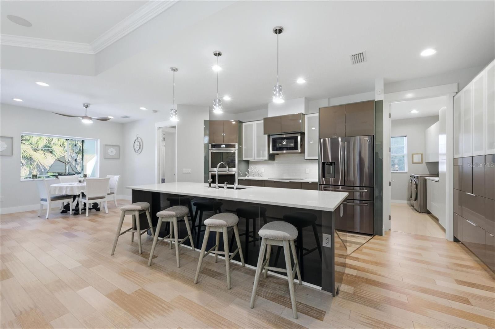 FURNISHED, TURNKEY LUXURY CUSTOM 3-BEDROOM + OFFICE HOME WITH 3-CAR GARAGE IN SOUTH VENICE — YOUR DREAM HOME AWAITS! MINUTES TO THE BEACH, WELLEN PARK & NEW COSTCO!PRIVATE WITH WATERFRONT! GREAT ELEVATION AND SURVEY IS AVAILABLE! Experience exceptional craftsmanship and elevated design in this stunning custom-built 2020 residence, constructed with state-of-the-art ICF (Insulated Concrete Form) technology—offering superior strength, energy efficiency, and long-term durability. Step inside to a grand interior featuring 14-foot double tray ceilings with crown molding in the main living areas, 10-foot ceilings in the bedrooms, and 8-foot designer lacquer-finish doors throughout. Impact windows and enhanced insulation provide a quiet, secure, and energy-efficient environment. The gourmet kitchen is a true showpiece, boasting premium quartzite countertops, sleek European-style cabinetry with under-cabinet lighting, double ovens, and an oversized island—perfect for entertaining. Expansive sliding glass doors flood the home with natural light and open seamlessly to an oversized covered and screened lanai, complete with a fully equipped outdoor kitchen—ideal for embracing Florida’s indoor-outdoor lifestyle. Elegant bamboo flooring flows throughout the main living areas, complemented by tile flooring in all bathrooms and closets. The thoughtfully designed split floor plan ensures maximum privacy, with the luxurious owner’s suite tucked away behind a pocket door. Both bathrooms give a spa-like experiences, featuring heated anti-fog mirrors and spacious rain showers. The owner’s suite serves as a private retreat with a freestanding soaking tub and stunning mosaic tile flooring. Additional upgrades include built-in indoor and outdoor speaker systems, a security camera system, reverse osmosis water filtration, and a like-new washer and dryer. The spacious 3-car garage is outfitted with epoxy flooring and smart garage doors. Outstanding investment opportunity with short-term rental potential of up to $10,000 a month, appealing to high-end clientele. Located in the highly desirable South Venice community with NO HOA and NO CDD, residents enjoy access to a private deeded beach via ferry, a boat ramp, and kayak/canoe launch. Nearby parks and nature preserves provide scenic trails and convenient access to the Intracoastal Waterway.