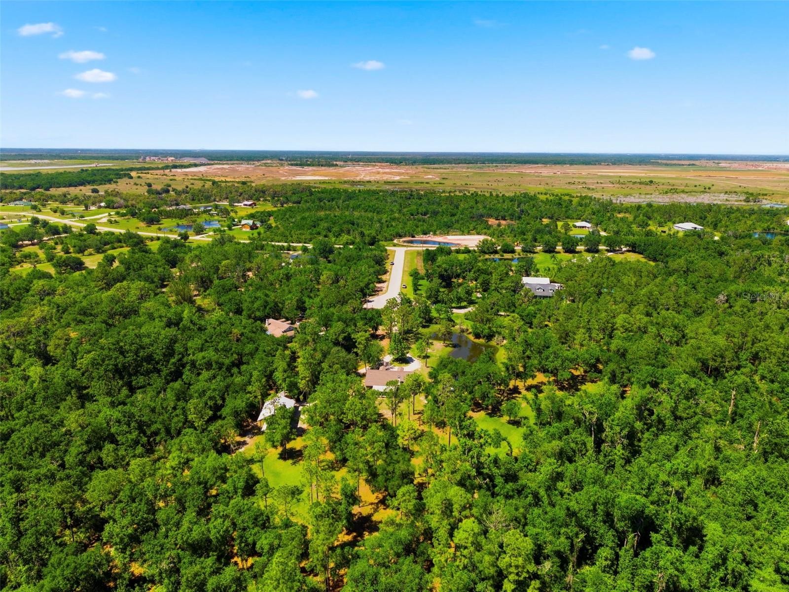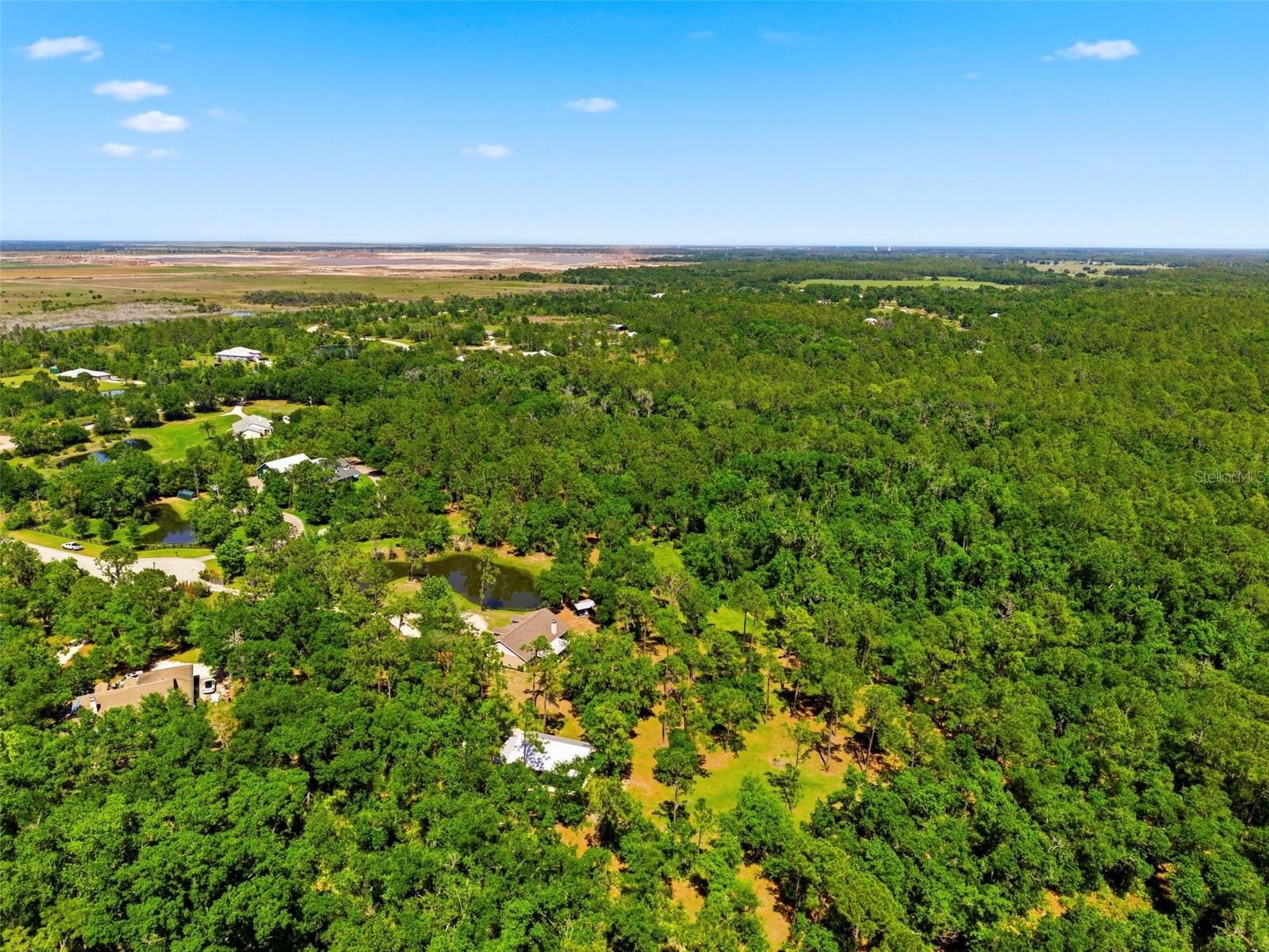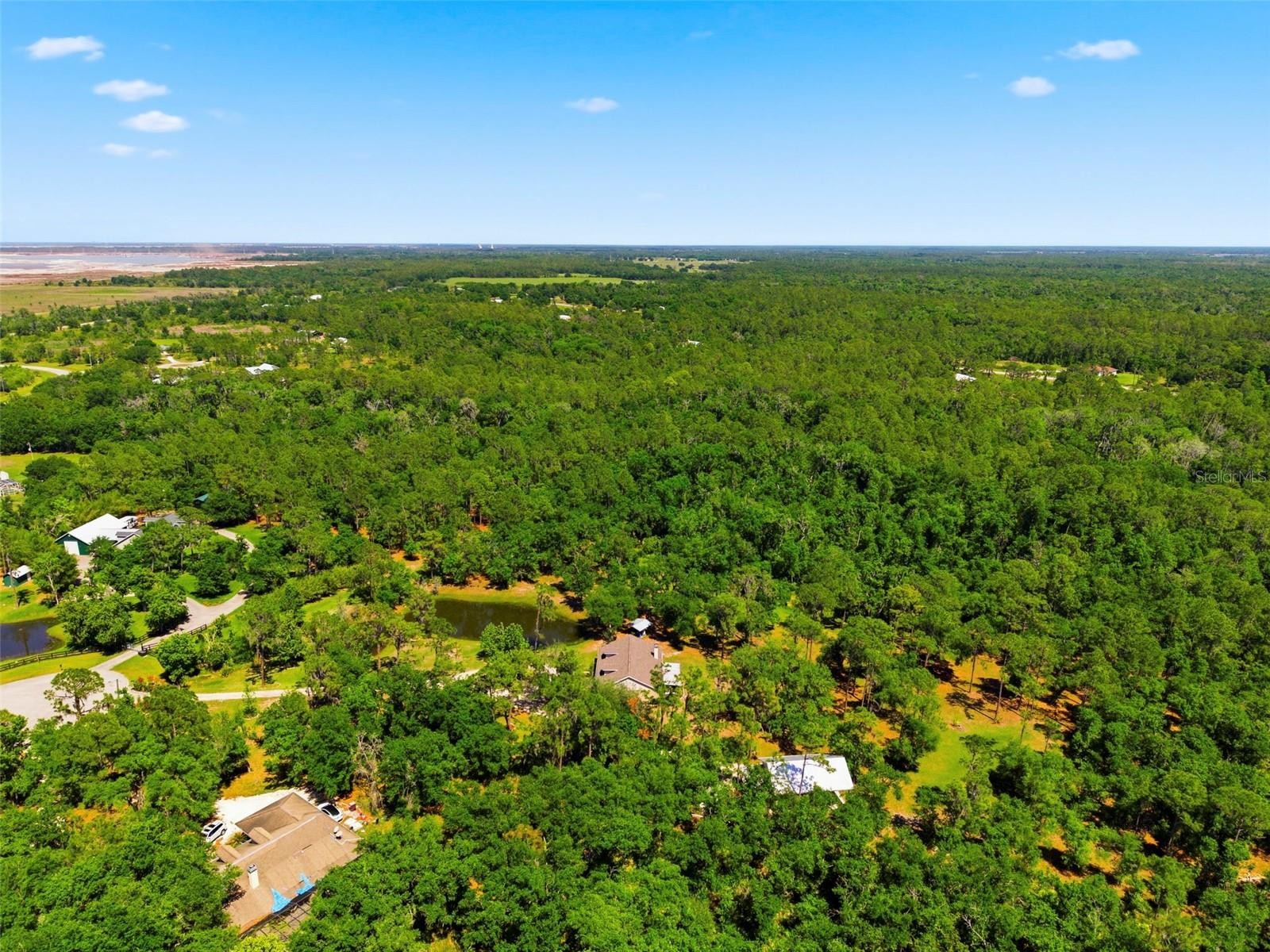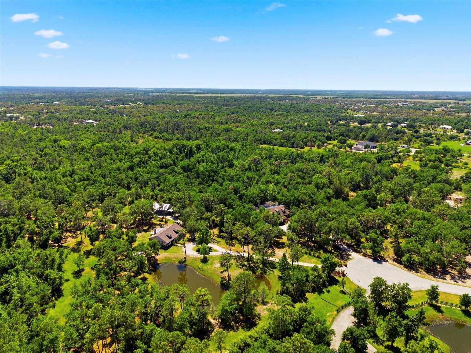 Set on a private, pie-shaped 7.95-acre lot, In Winding Creek, that stretches deep into the lush wooded forest, this partially fenced estate offers a rare combination of usable land, natural beauty, and thoughtful improvements. The grounds feature a private fishable pond, expansive cleared areas for recreation, and wooded sections that create privacy, including a charming enclosed treehouse with deck. The home is complemented by a detached two-story carport offering two oversized covered parking area and two heated and cooled rooms (one upstairs and one downstairs, not included in the published sq/ft), ideal for an air-conditioned workshop, hobby space, or guest overflow. Additional exterior highlights include a well-maintained and covered well system with pump, bladder tank, and filtration, a huge circular driveway, irrigation system, and beautifully manicured front and rear lawns with lush landscaping. Inside, the open floorplan features vaulted ceilings throughout the main living areas, a spacious living room with a wood-burning fireplace, and a kitchen with stainless steel appliances, breakfast bar seating, and a large dining area. The home offers three bedrooms and two fully updated bathrooms, along with an inside laundry room complete with washer, dryer, second refrigerator, and side entry access. Flooring includes hardwood and tile throughout the main living areas, bathrooms, and primary suite, with wood laminate in the secondary bedrooms. Enjoy outdoor living year-round from the 12x24 covered and screened rear patio with double door access from both the living room and primary bedroom. With a new roof in 2024 and a property that balances open space and wooded privacy, this is a truly unique opportunity to own nearly 8 acres with exceptional features and flexibility. Winding Creek is a private, nature-surrounded community featuring an equestrian center and expansive common areas ideal for walking, hiking, biking, and horseback riding, conveniently located approximately 20 minutes east of I-75 off SR 64.