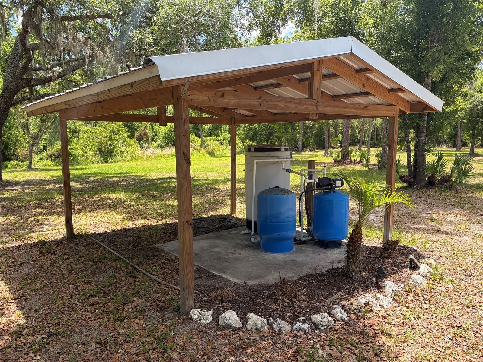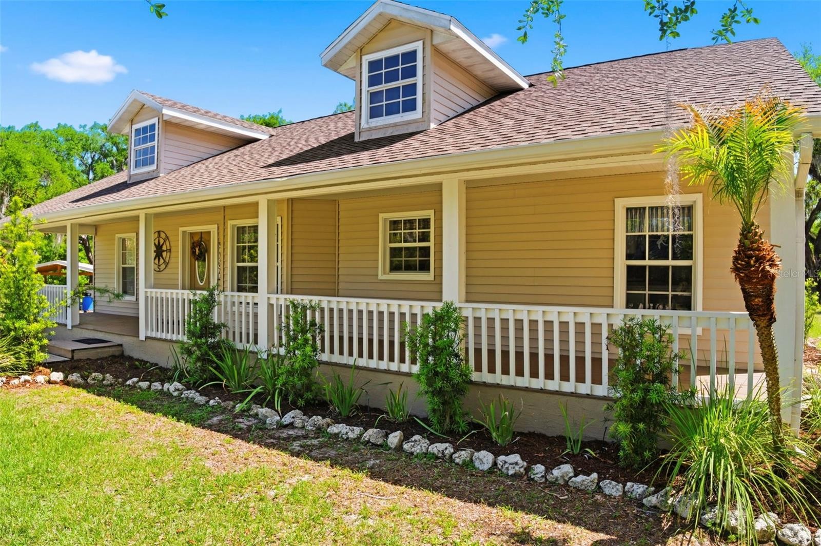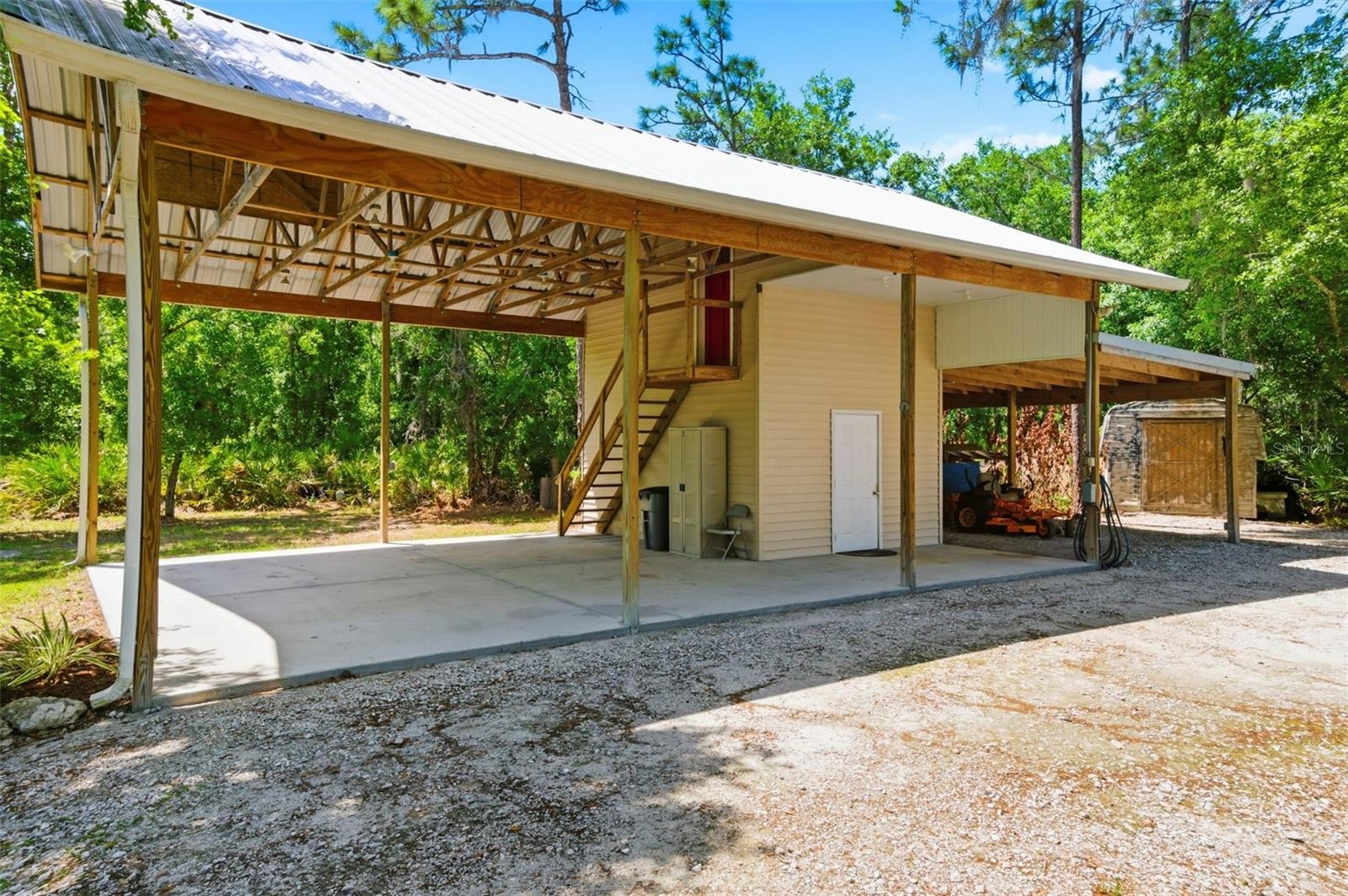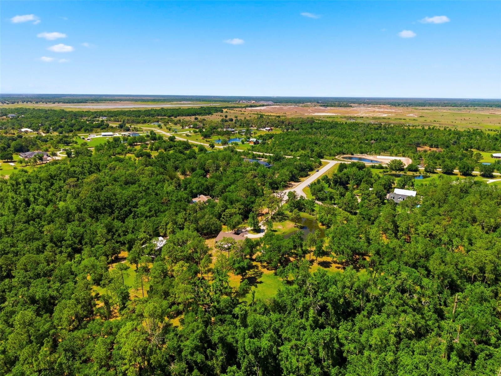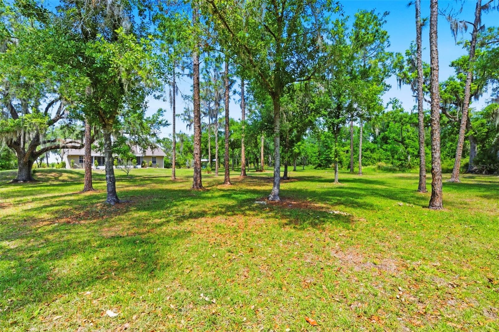 Set on a private, pie-shaped 7.95-acre lot, In Winding Creek, that stretches deep into the lush wooded forest, this partially fenced estate offers a rare combination of usable land, natural beauty, and thoughtful improvements. The grounds feature a private fishable pond, expansive cleared areas for recreation, and wooded sections that create privacy, including a charming enclosed treehouse with deck. The home is complemented by a detached two-story carport offering two oversized covered parking area and two heated and cooled rooms (one upstairs and one downstairs, not included in the published sq/ft), ideal for an air-conditioned workshop, hobby space, or guest overflow. Additional exterior highlights include a well-maintained and covered well system with pump, bladder tank, and filtration, a huge circular driveway, irrigation system, and beautifully manicured front and rear lawns with lush landscaping. Inside, the open floorplan features vaulted ceilings throughout the main living areas, a spacious living room with a wood-burning fireplace, and a kitchen with stainless steel appliances, breakfast bar seating, and a large dining area. The home offers three bedrooms and two fully updated bathrooms, along with an inside laundry room complete with washer, dryer, second refrigerator, and side entry access. Flooring includes hardwood and tile throughout the main living areas, bathrooms, and primary suite, with wood laminate in the secondary bedrooms. Enjoy outdoor living year-round from the 12x24 covered and screened rear patio with double door access from both the living room and primary bedroom. With a new roof in 2024 and a property that balances open space and wooded privacy, this is a truly unique opportunity to own nearly 8 acres with exceptional features and flexibility. Winding Creek is a private, nature-surrounded community featuring an equestrian center and expansive common areas ideal for walking, hiking, biking, and horseback riding, conveniently located approximately 20 minutes east of I-75 off SR 64.