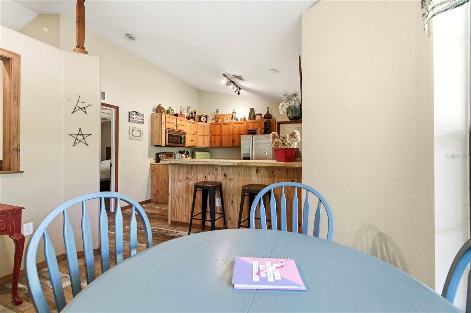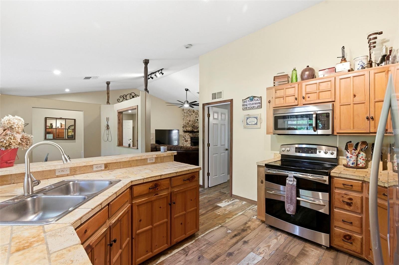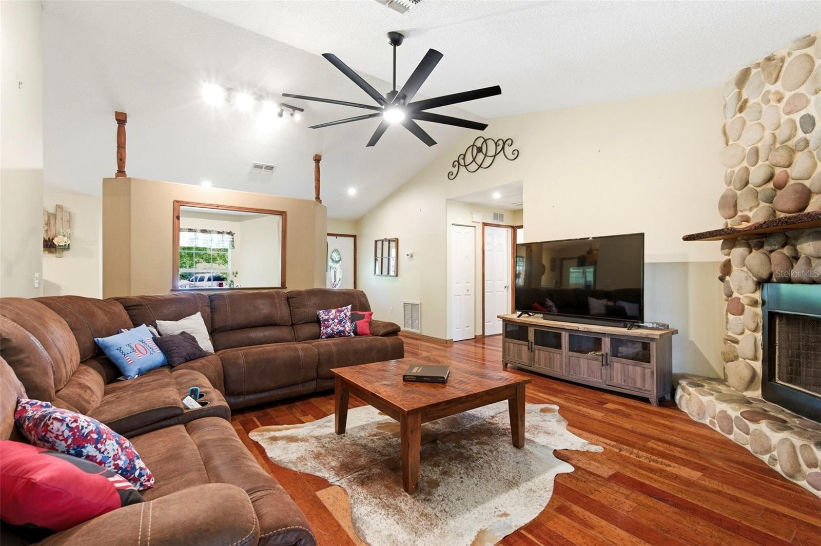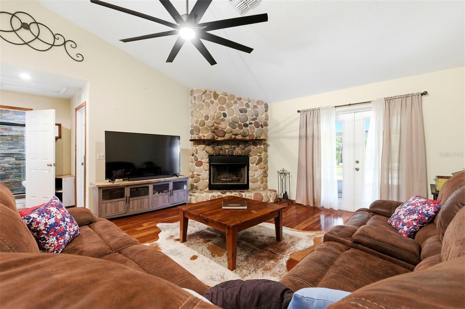 Set on a private, pie-shaped 7.95-acre lot, In Winding Creek, that stretches deep into the lush wooded forest, this partially fenced estate offers a rare combination of usable land, natural beauty, and thoughtful improvements. The grounds feature a private fishable pond, expansive cleared areas for recreation, and wooded sections that create privacy, including a charming enclosed treehouse with deck. The home is complemented by a detached two-story carport offering two oversized covered parking area and two heated and cooled rooms (one upstairs and one downstairs, not included in the published sq/ft), ideal for an air-conditioned workshop, hobby space, or guest overflow. Additional exterior highlights include a well-maintained and covered well system with pump, bladder tank, and filtration, a huge circular driveway, irrigation system, and beautifully manicured front and rear lawns with lush landscaping. Inside, the open floorplan features vaulted ceilings throughout the main living areas, a spacious living room with a wood-burning fireplace, and a kitchen with stainless steel appliances, breakfast bar seating, and a large dining area. The home offers three bedrooms and two fully updated bathrooms, along with an inside laundry room complete with washer, dryer, second refrigerator, and side entry access. Flooring includes hardwood and tile throughout the main living areas, bathrooms, and primary suite, with wood laminate in the secondary bedrooms. Enjoy outdoor living year-round from the 12x24 covered and screened rear patio with double door access from both the living room and primary bedroom. With a new roof in 2024 and a property that balances open space and wooded privacy, this is a truly unique opportunity to own nearly 8 acres with exceptional features and flexibility. Winding Creek is a private, nature-surrounded community featuring an equestrian center and expansive common areas ideal for walking, hiking, biking, and horseback riding, conveniently located approximately 20 minutes east of I-75 off SR 64.