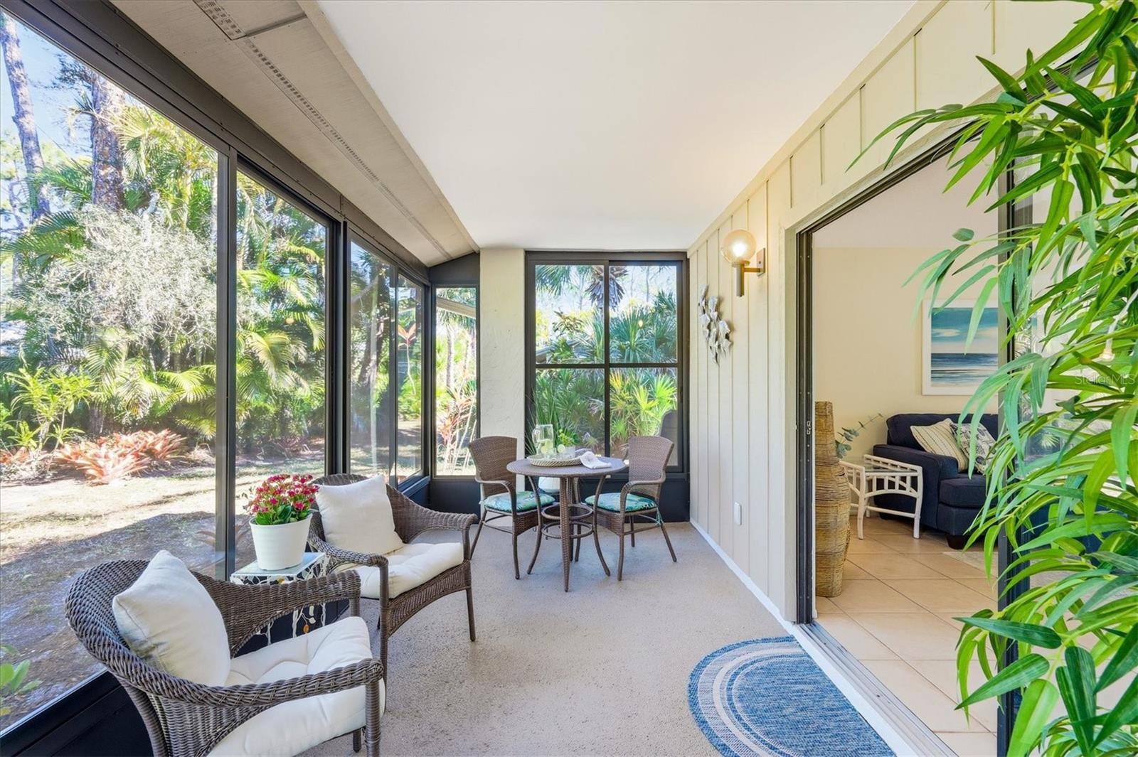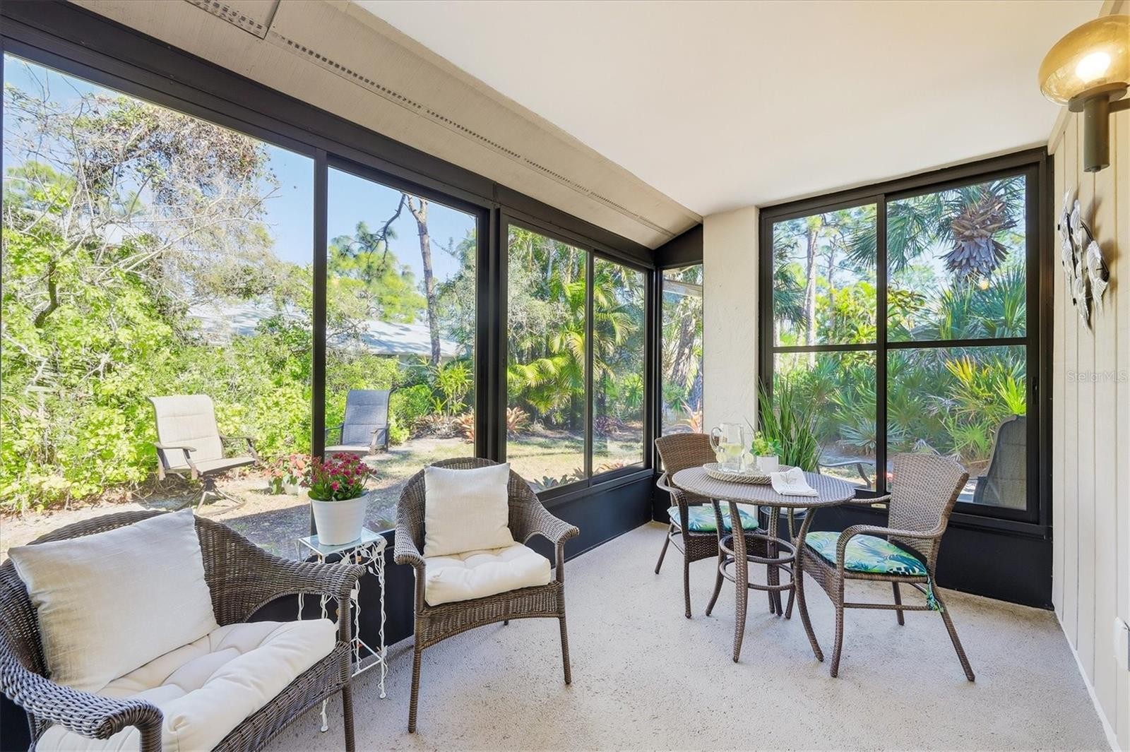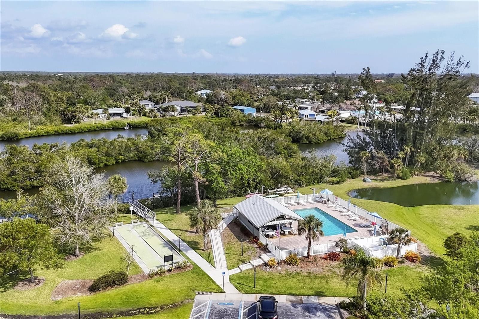 This TURNKEY, FURNISHED, 2-bedroom, 2-bath end-unit located in 55+ Gasparilla Condo Complex on peaceful Gottfried Creek offers boating and kayaking access to the Intracoastal Waterway at an affordable price. Boat slips with water and electric for vessels 20' or less, and kayak storage, are available at a first-come basis for an additional fee. Enjoy the heated pool, club house, shuffleboard, fire pit, and social gathering areas in this Englewood community. Although attached, with no unit above or below, the home feels private, with all views overlooking lush Florida landscaping and no traffic noise. The open layout connects the kitchen, dining, and living areas and extends into an enclosed, newly installed (2023) framed, screened, slide-by windows, all-weather lanai. UPDATES INCLUDE: roof (2020), A/C (2018), interior paint (2022), primary bathroom remodel (2024) with quartz countertops, walk-in shower, and porcelain tile; updated guest bath with quartz countertops and higher vanity; kitchen appliances (2018) including refrigerator with ice maker, range, microwave, and dishwasher; plus washer and dryer conveniently located in the kitchen. Ideal for walkers and bicyclists, this home is just 1.5 miles to downtown Olde Englewood shops, restaurants, library, Publix, Walgreens, and Chase Bank. The Elks, Eagles, and Moose Lodges are also nearby. Englewood Beach and Gulf-front dining are a short drive away. Well-suited for full-time living, seasonal use, or investment. Schedule your showing today.