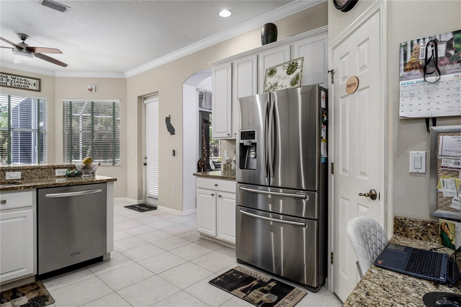 Welcome to River Woods with no CDD fees and LOW HOA! This well-maintained pool home offers 3 bedrooms, 2 baths, and a 3-car garage, with thoughtful features throughout. The solar-heated saltwater pool and private lanai create a quiet outdoor space overlooking a preserve. Inside, you’ll find plantation shutters, crown molding, tray ceilings, and a split floor plan for added privacy. The kitchen includes granite countertops, stainless steel appliances, raised-panel cabinetry, and a casual eat-in area. The spacious 28' x 14' primary suite offers flexibility for a sitting area or home office with sliding glass doors direct access to pool, along with a large walk-in closet. Laminate flooring runs through the main living areas, adding a clean, cohesive look. Additional highlights include central vacuum and built-in garage cabinetry and storm shutters that are mounted at front entrance and lanai area for storm protection. River Woods residents enjoy access to a community pool, tennis courts, park, and playground, all with low HOA fees. Conveniently located near shopping, dining, and everyday essentials, and just a short drive to the Gulf beaches.
