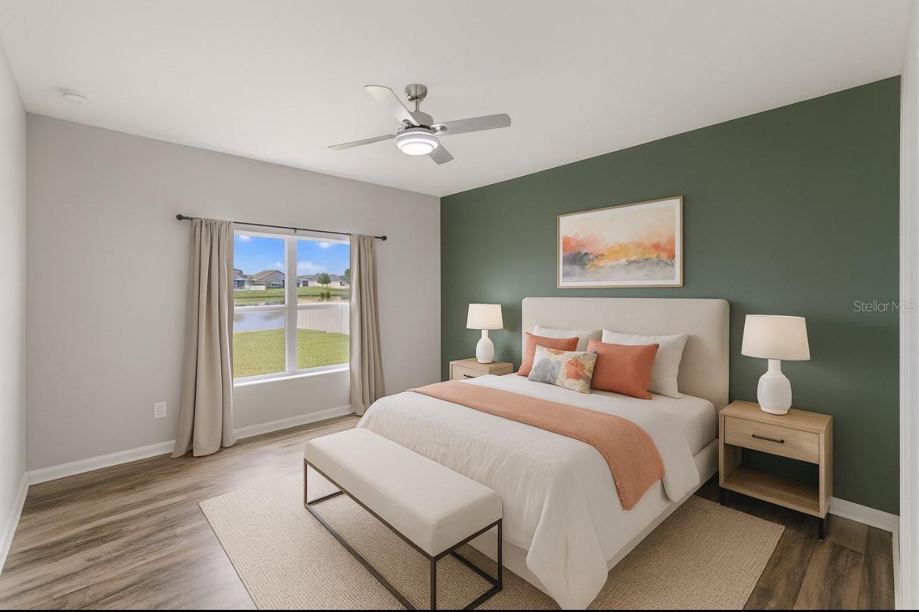 Step into this inviting 3-bedroom, 2-bath home in the gated Copperstone community, where style, comfort, and convenience meet. With a new roof just installed and thoughtful updates throughout, this property is ready for its next chapter. From the moment you walk through the front door, you’re greeted by an airy open layout that draws your eyes straight through the main living area to a wall of triple windows framing vibrant lake views. The natural light dances across the rich plank tile floors, creating a fresh and uplifting atmosphere that instantly feels like home. The kitchen takes center stage with its oversized island, quartz countertops, and stainless steel appliances—perfect for preparing meals while staying connected with family and friends. The owner’s suite (15x12) offers a comfortable retreat, featuring a walk-in closet and spa-inspired bath with a soaking tub, separate shower, and dual vanities. Two additional bedrooms with ceiling fans provide comfort and flexibility for guests, hobbies, or a home office. Step outside to the screened lanai, where you can relax and enjoy the ever-changing colors of the lake—whether it’s the soft hues of morning or the bold blues and greens of midday. It’s the perfect spot to recharge and soak in the Florida lifestyle. This expansive backyard is ready for your inground swimming pool oasis to be built! Living in Copperstone means more than just a house—it’s a community. Enjoy two pools, a fitness center, clubhouse, playgrounds, basketball courts, and walking paths with fishing spots. HOA dues cover cable, internet, and irrigation, keeping life simple and stress-free. The location is ideal—just minutes from the new Parrish High School, local shopping, and dining, with easy access to Sarasota, St. Pete, and Tampa. And in only 30 minutes you can be at some of the world’s most beautiful Gulf beaches. This move-in ready home combines modern updates, breathtaking views, and a welcoming neighborhood into one perfect package. Come experience Copperstone for yourself—where every day feels a little brighter. Listing information is deemed reliable but not guaranteed. Buyer and Buyer agent to verify all listing details. SOME PHOTOS HAVE BEEN VIRTUALLY STAGED.