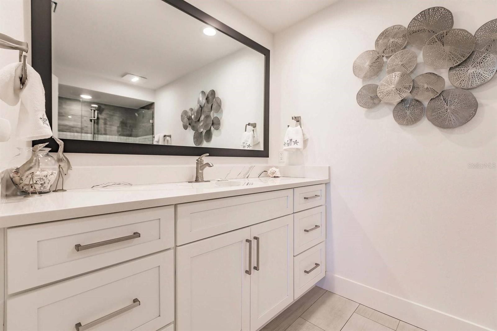 A 3 month stay is preferred but will accept a 2 month stay, possible 1 month. Call the office for details. Luxuriously remodeled 2 bedroom 2 full bath unit on the first floor in a gulf side high-rise building. The unit has updated wood tiles throughout, ceiling fans in each room, recessed and updated lighting. The kitchen is fully updated with stainless steel appliances, gorgeous counter tops, and new cabinets. Complete with an extra large island for preparing meals and a breakfast bar for 4. The dining area has comfortable seating for 6. Living room has a large flat screen smart TV and very comfortable furniture. Master bedroom has king sized bed, a smart TV, and lighted walk in closet. Master bath has a single sink, a walk in glass door shower, with a built in tiled bench, and a removable shower head. There is a space off the master bedroom with a desk and chair that can be used as a work, or office space. Guest bath is en-suite of guest bedroom, a single sink, and large walk in shower. The updated shower has a built in tiled bench and a removable shower head. Guest bedroom has 2 twins, a ceiling fan, and a TV. Enjoy incredible indoor outdoor living by opening the wall of sliding glass doors. Or keep them closed and allow for natural light to fill this gorgeous space. These doors give access to the concourse patio and seating for 6 available to relax. The patio has views of the gulf-side pond and garden. This unit has an assigned garage parking spot under the building. It is accessible via elevator and stairs.