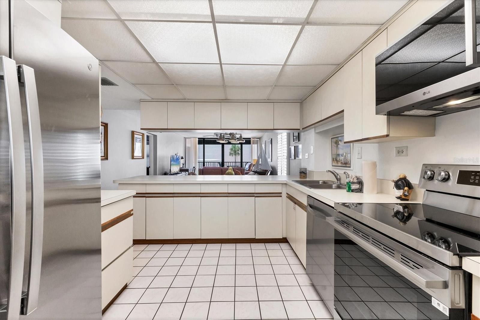 Prime location! Nestled in the much sought-after beachfront community of Peppertree Bay, this 6th floor unit offers a prime east and south-facing position with partial views of the Gulf and deeded beach access. Conveniently accessible by elevator from the covered garage, residents are protected from the elements as they enter this delightful home. This spacious 2-bedroom, 2-bathroom open-plan unit features a bright living room seamlessly connected to the dining area. The kitchen, with its practical layout, overlooks both the dining and living room areas, creating a cohesive and welcoming living space. The primary bedroom is both spacious and comfortable, featuring a large built-in closet and an en suite bathroom complete with a single vanity, spacious shower, and extra lighting for added convenience. The second bedroom is equally comfortable and spacious, bathed in natural light streaming through its window. Another feature well worth mentioning is the large private utility room, equipped with a full-size washer and dryer. The living room and primary bedroom both extend to an enclosed balcony, offering stunning views of Siesta Key from the 6th floor. Notable features and upgrades include LED lighting and ceiling fans installed throughout the unit in 2021, new flooring in the bedrooms and bathrooms in 2022, new windows in 2021, a roof replacement in 2020, and a new garbage disposal in 2023, all adding to the convenience and value of this, already fantastic property. Peppertree Bay is a desirable community offering a wealth of amenities, including two heated pools, a fishing pier, BBQ grills with picnic tables, tennis and pickleball courts, a fitness center, and two clubhouses where regular social events are held. For those seeking evening entertainment, Siesta Key Village is a short walk away, offering live music, shops, and restaurants. With easy access off the island to all that Sarasota has to show, this location is perfect for starting your Florida Dream. Whether you are looking for a full-time residence or a vacation home, you will not be disappointed with what this stunning unit in Peppertree Bay has to show.