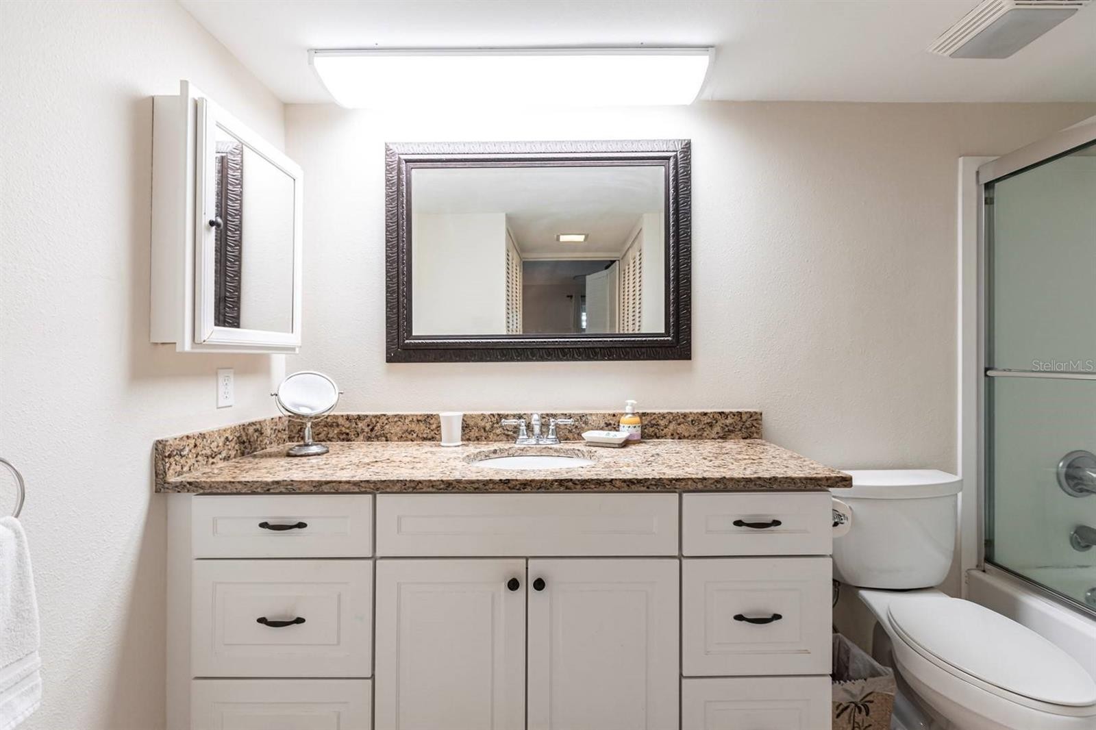 2 BR - 2 BA - 4 Person Max - Gulf side - Mid-Rise - Approx.150 yards from beach This property is a 30 night minimum. This 2-bedroom, 2 bath located on the gulf side is approx. 150 yards from the beach. This unit is on the 7th floor, accessible via elevator or stairs. Plenty of room for dining at the 6-service dining table. Couches, a ceiling fan, and TV in the living room for entertainment. The lanai works as an extended living space opened up with French doors. There is an additional dining table and relaxing seating available. The master bedroom features a king bed and a shower/tub combination with a glass sliding door. The guest bedroom features two twins and a walk-in glass shower with a grab bar. This unit offers an in unit washer and dryer.