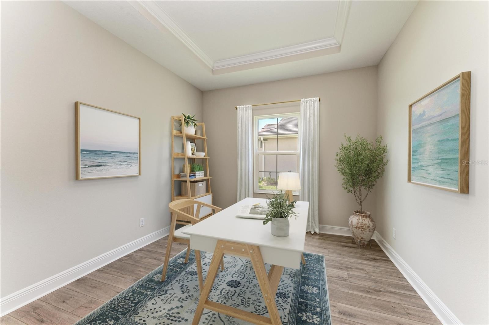 One or more photo(s) has been virtually staged. This Longboat I is Ready Now! Discover a coastal sanctuary where modern luxury meets serene natural beauty. The interior showcases a chef inspired kitchen with Sonoma Painted Linen cabinetry and elegant Frost Whte MSI 3CM Quartz countertops. Durable yet stylish Pride Plus Accent Riverside LVP flooring flows throughout the main living areas, providing a seamless and upscale feel. Spanning 2,529 square feet, this thoughtfully designed floorplan offers 3 bedrooms and 3 bathrooms in an open concept layout that captures the essence of Florida living. The versatile den provides the ideal space for a quiet home office or library. Retreat to the upgraded master suite which serves as a private oasis with premium finishes. Outdoor living is the centerpiece of this property, featuring a private pool and a covered lanai that offers breathtaking views of the surrounding wetlands. Complete with a spacious 3 car garage, this home perfectly balances functional storage with practical Florida living. Images shown are for illustrative purposes only and may differ from actual home. Completion date subject to change.